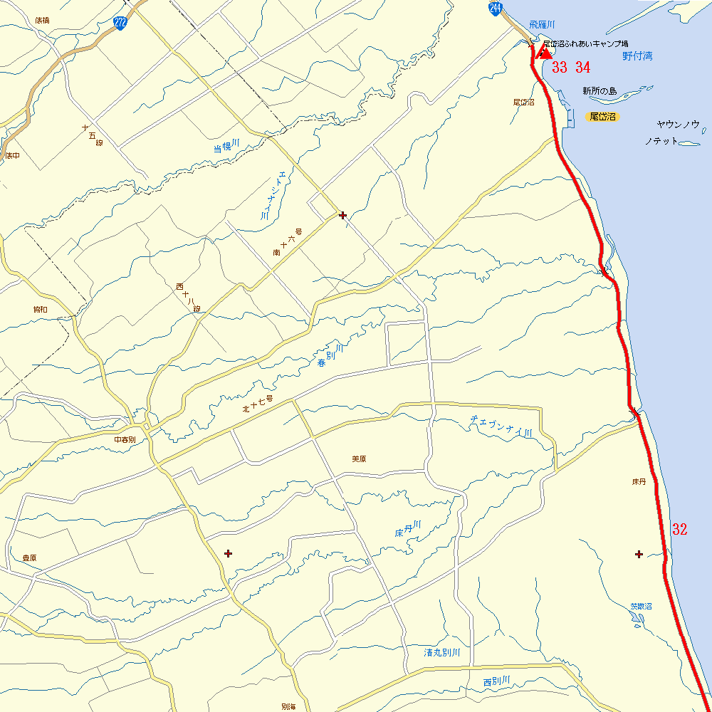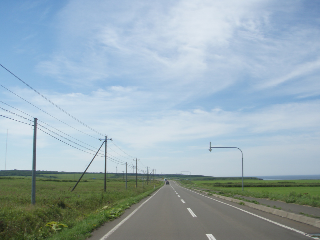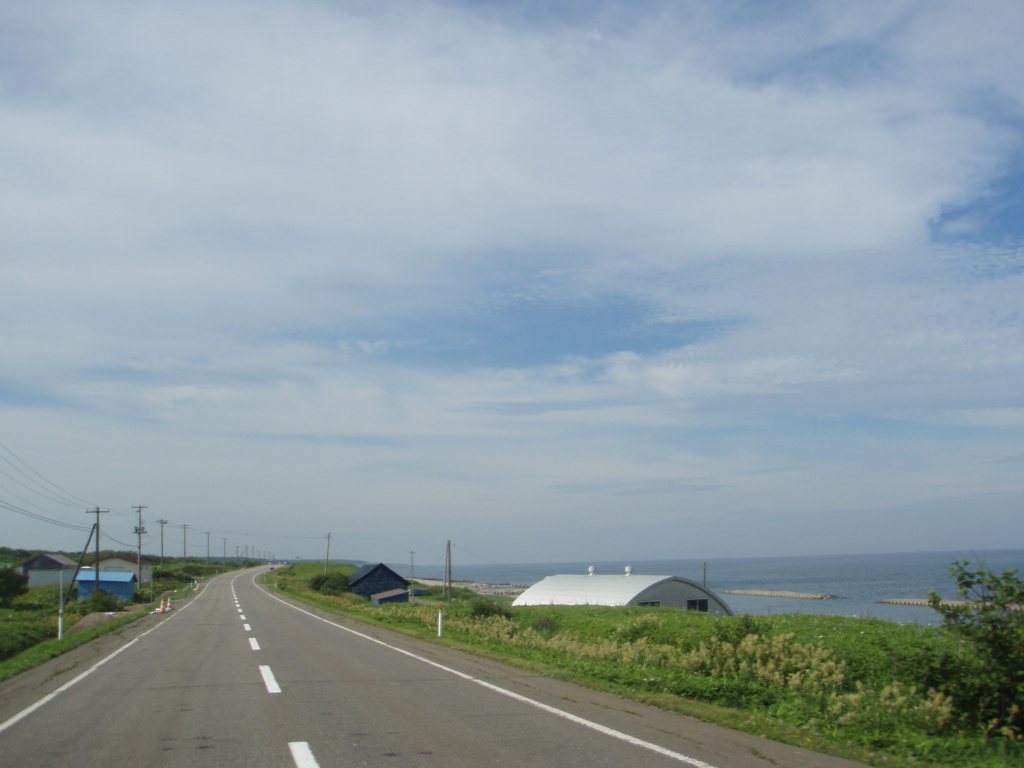![]() オホーツク海に沿って尾岱沼を目指す。 |
