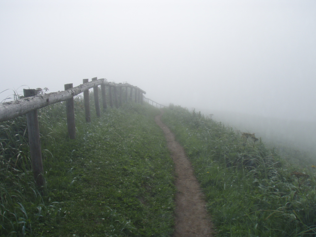 ![]() 霧多布岬はやはり霧。この細い道を行く。 |