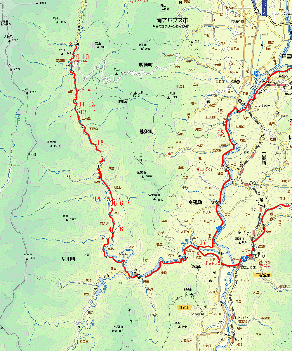 ![]() 南アルプス公園線は、奈良田の先広河内で進入禁止 |