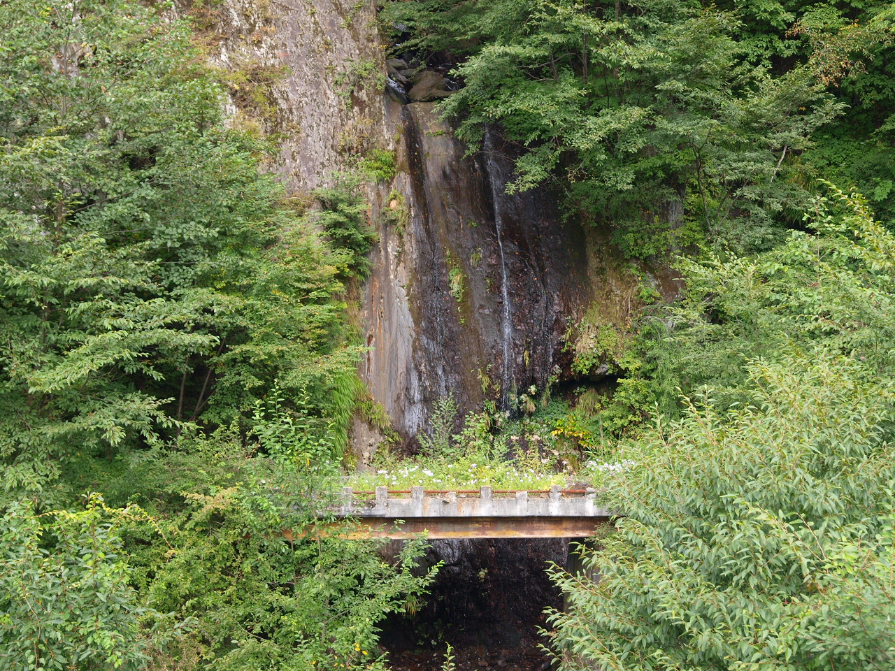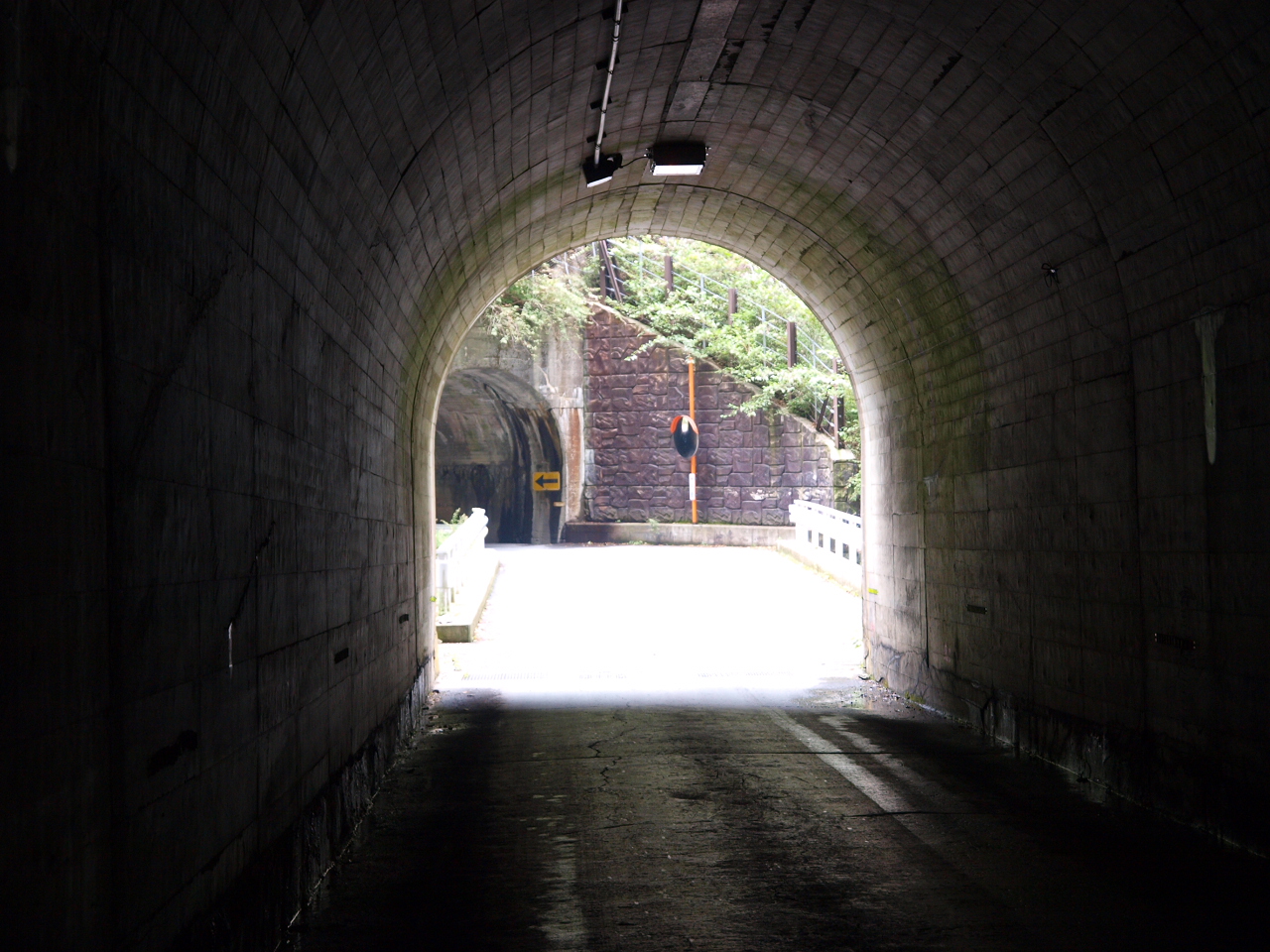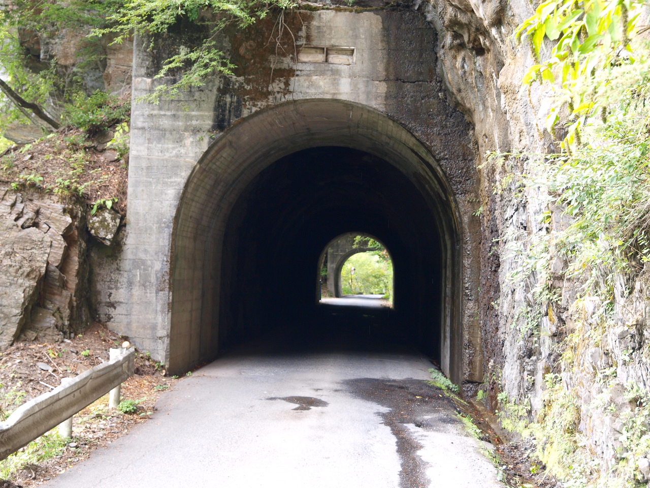 ![]() 夜叉神トンネルを出たところ。向こうが小さく見える。 |