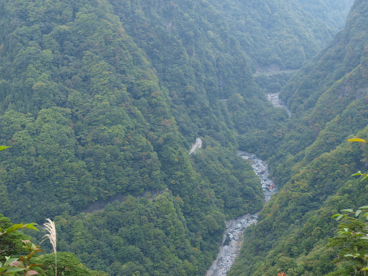 | したの早川までの高さ900m これだけ真下に道を見るのもすごい。 |