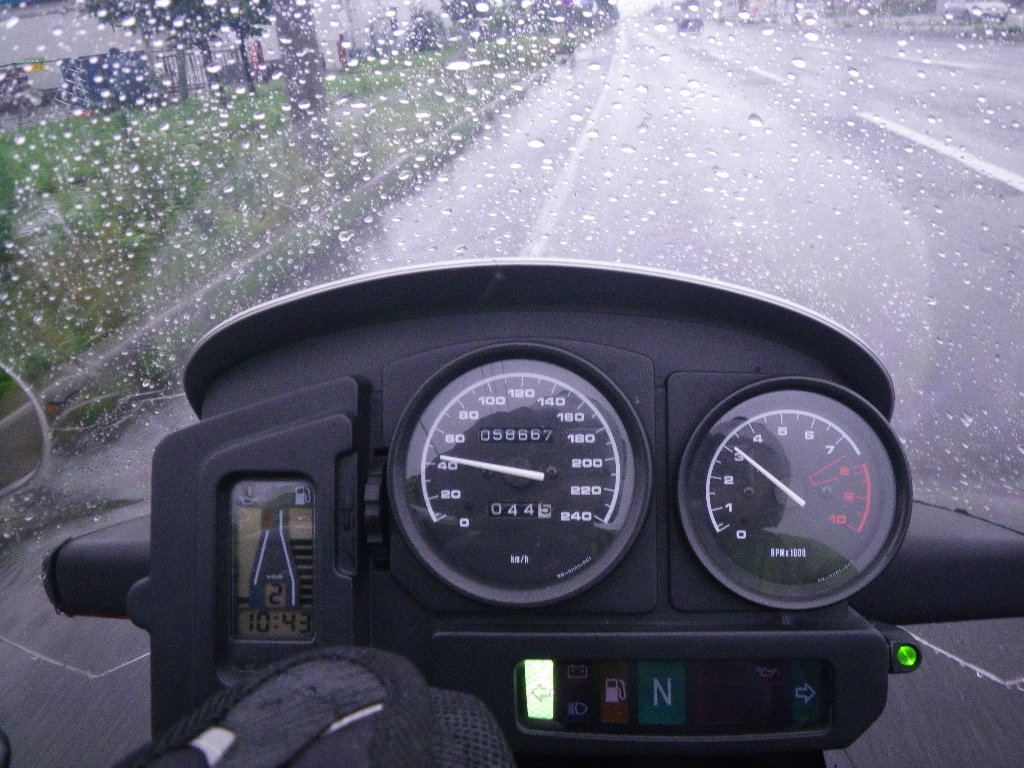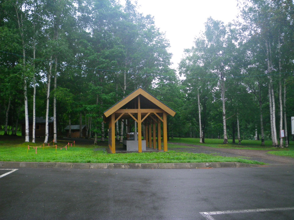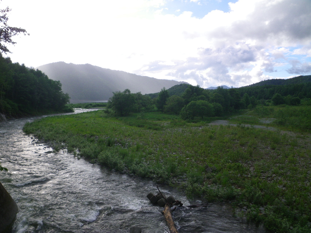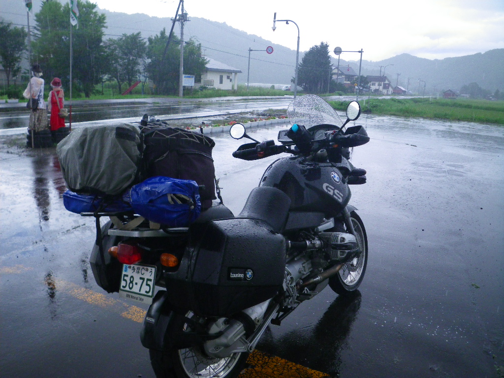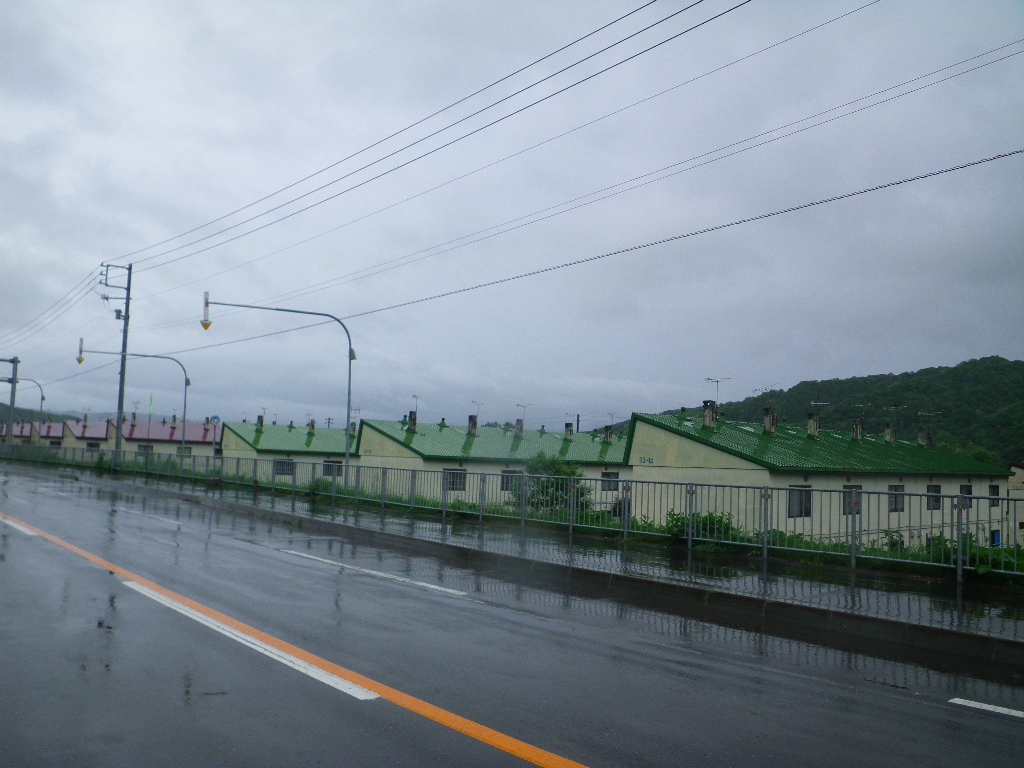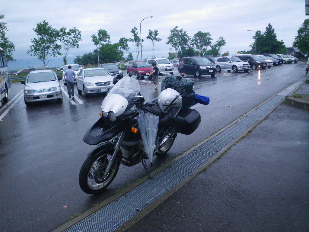 | 千歳へ着いたときから雨、苫小牧の山九へ着いたものの明日の天気を考えながらルートの再検索。今日中に稚内辺りまで走る予定だったが明日・明後日の天気にあわせ予定と逆周りに今日は山中の岩尾内キャンプ場に向かうことに。 |