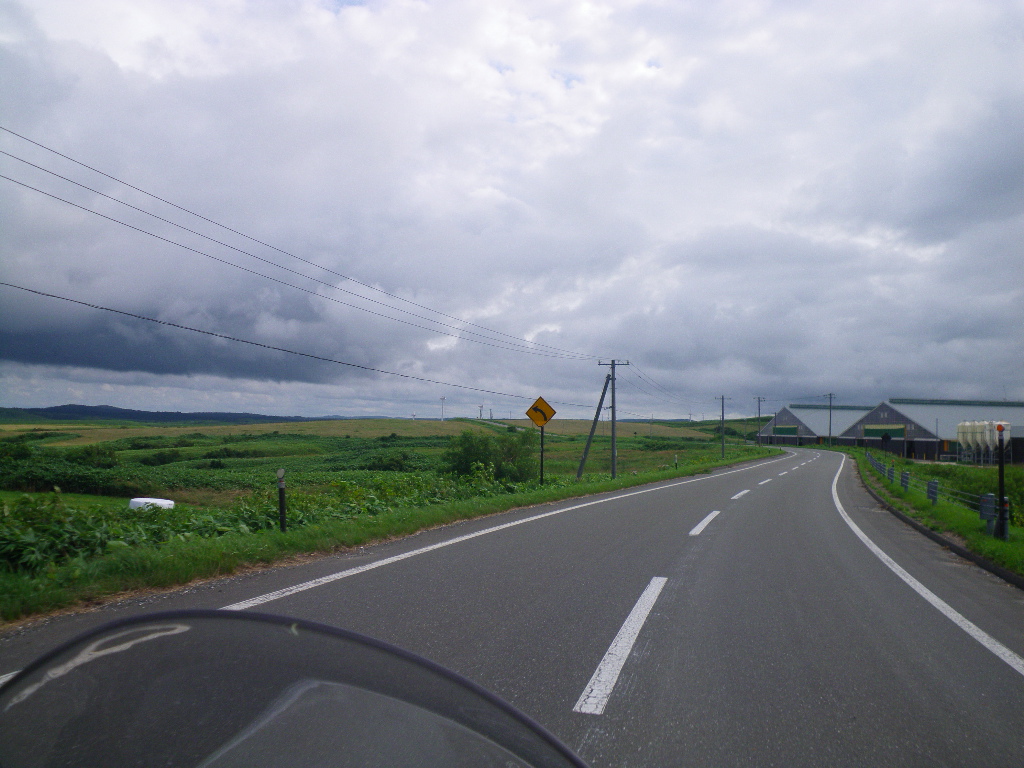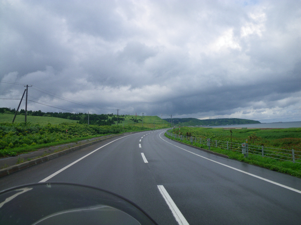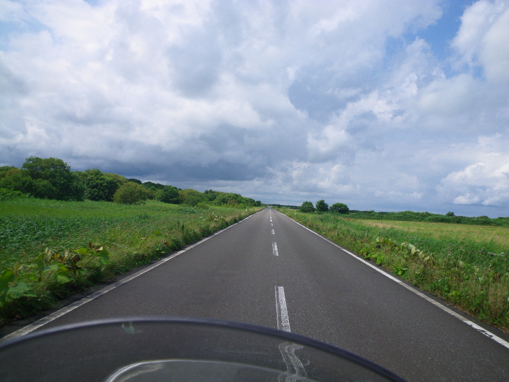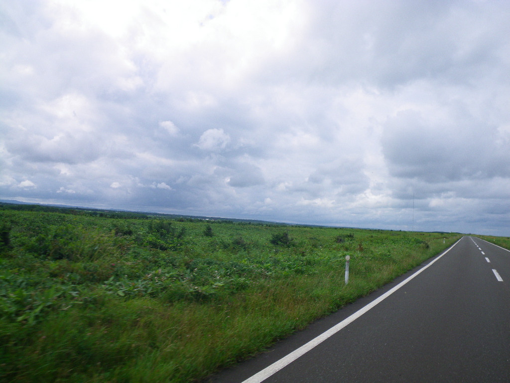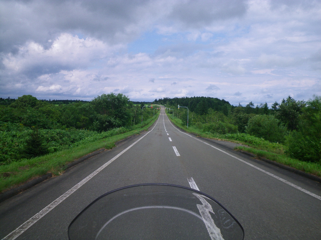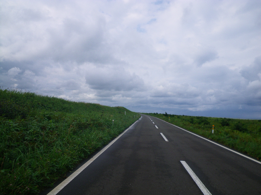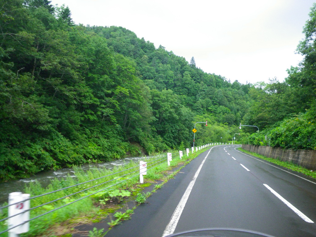 ![]() 内陸部を北に走る。早すぎると雨雲に追いつくので速すぎないペースで対向車の来ない道を下川に向かう。 |
