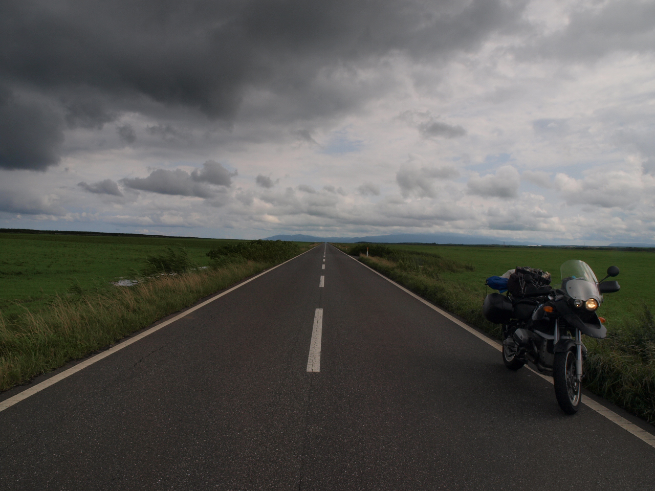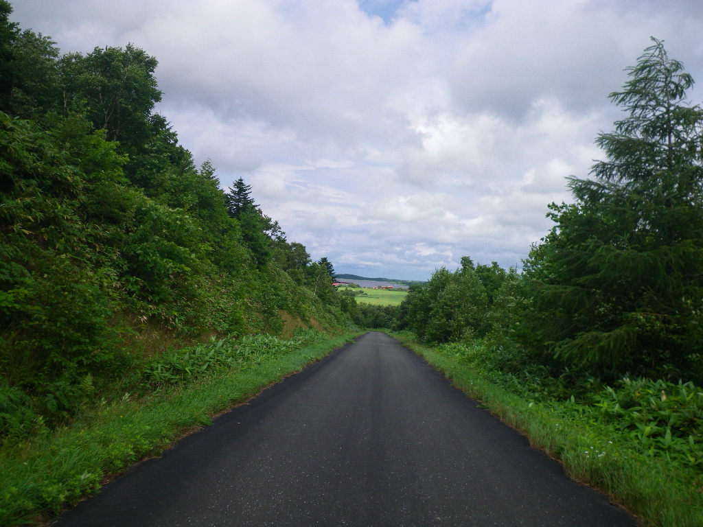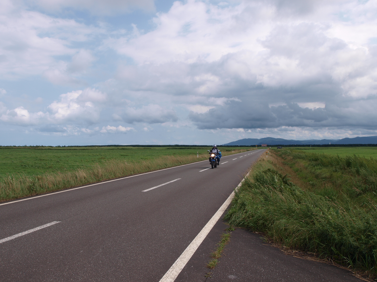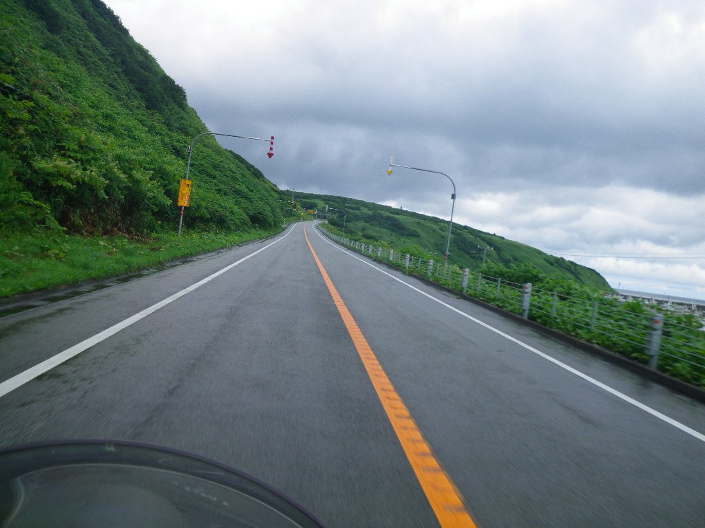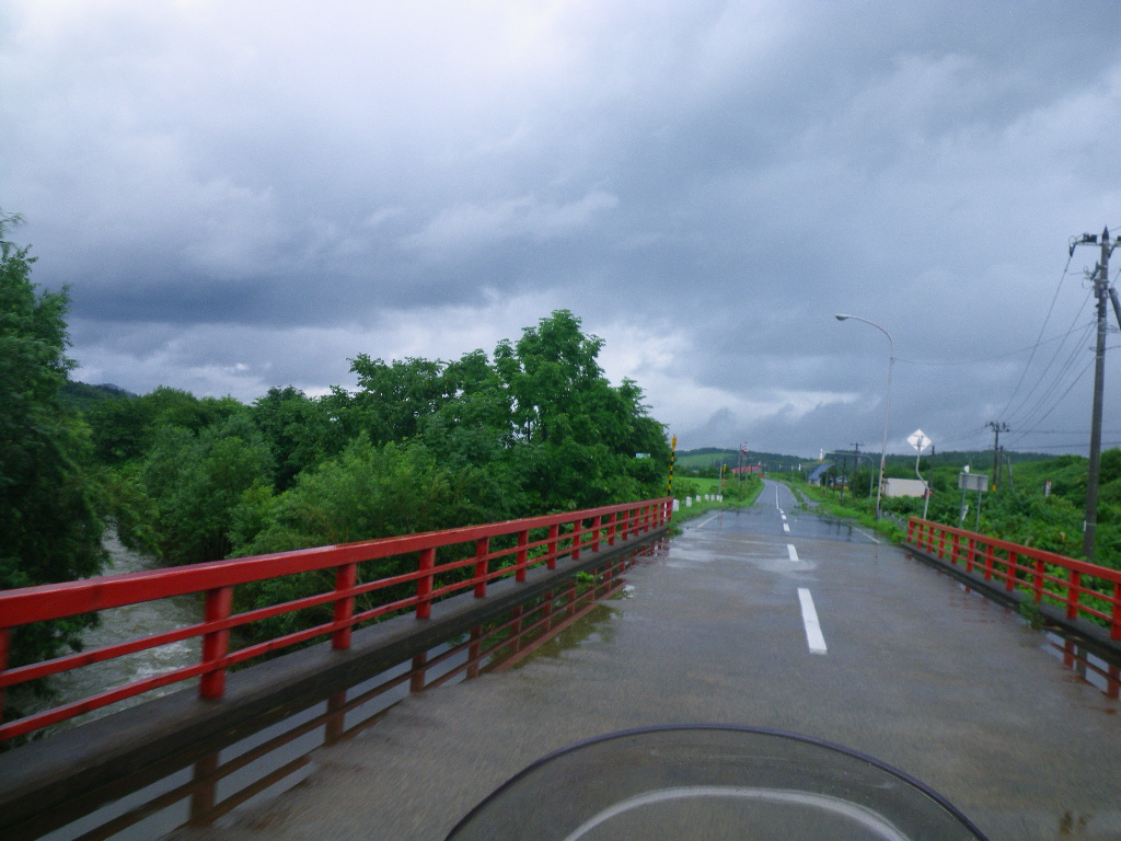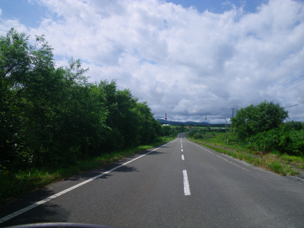 ![]() 内陸部を北に走る。早すぎると雨雲に追いつくので速すぎないペースで対向車の来ない道を下川に向かう。 |