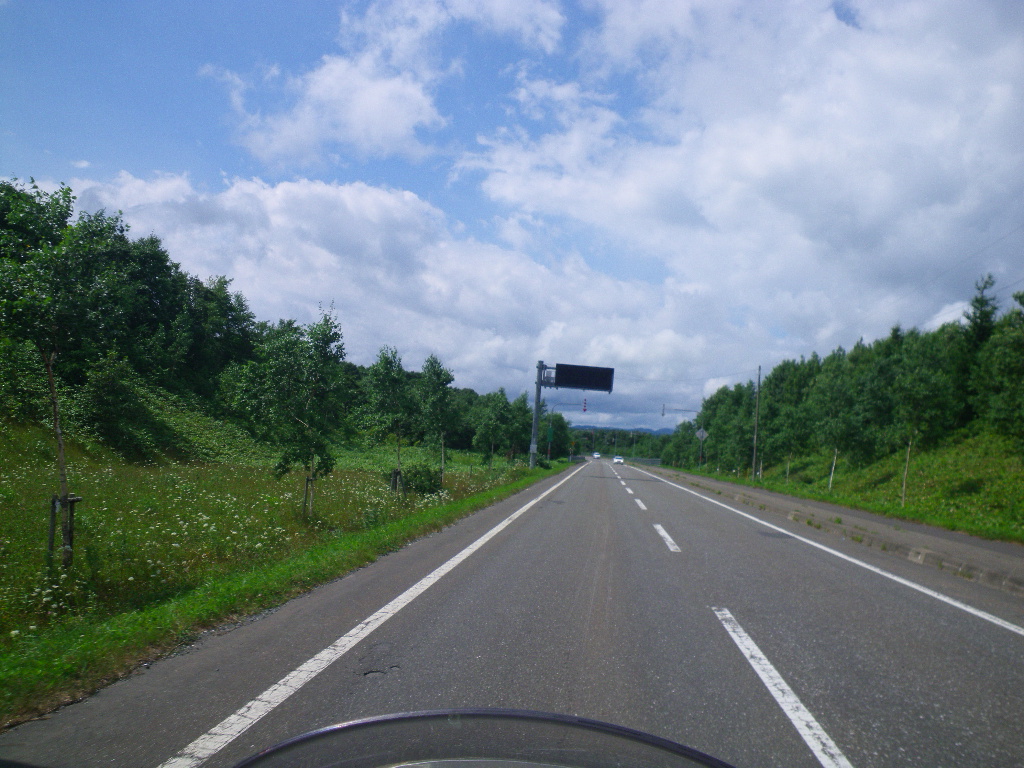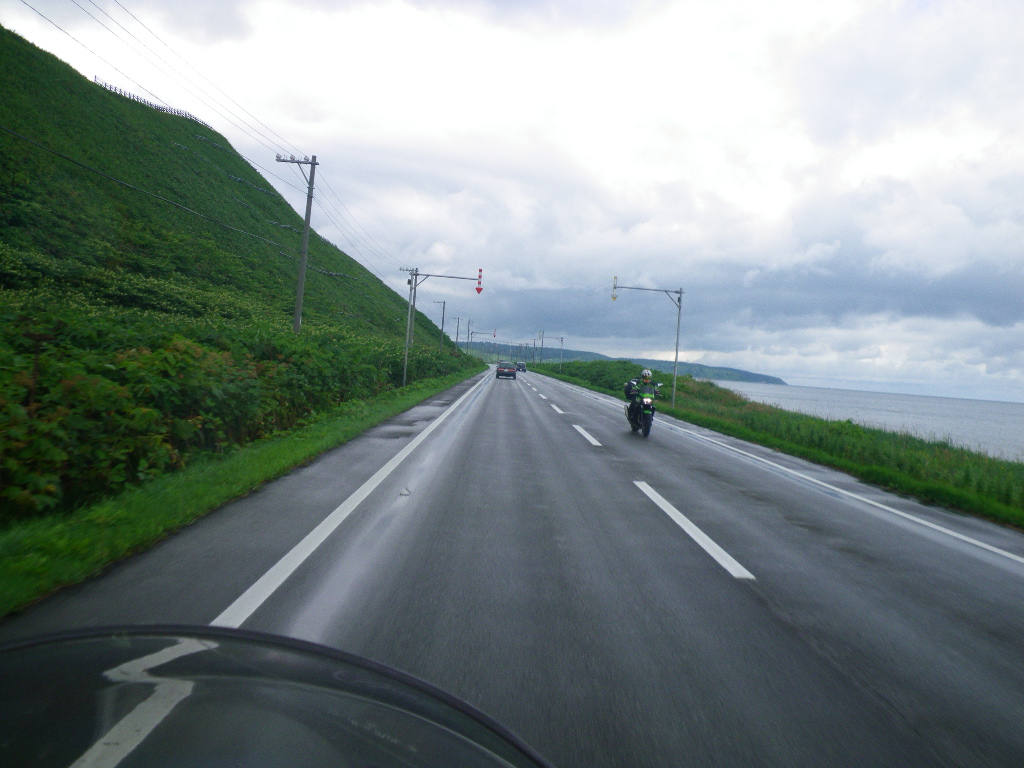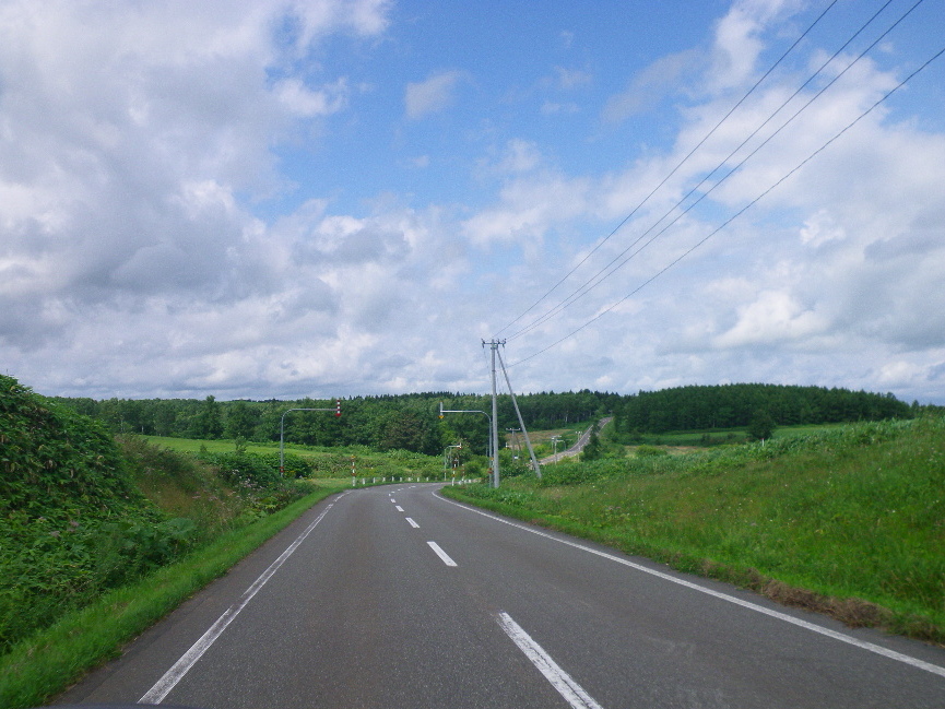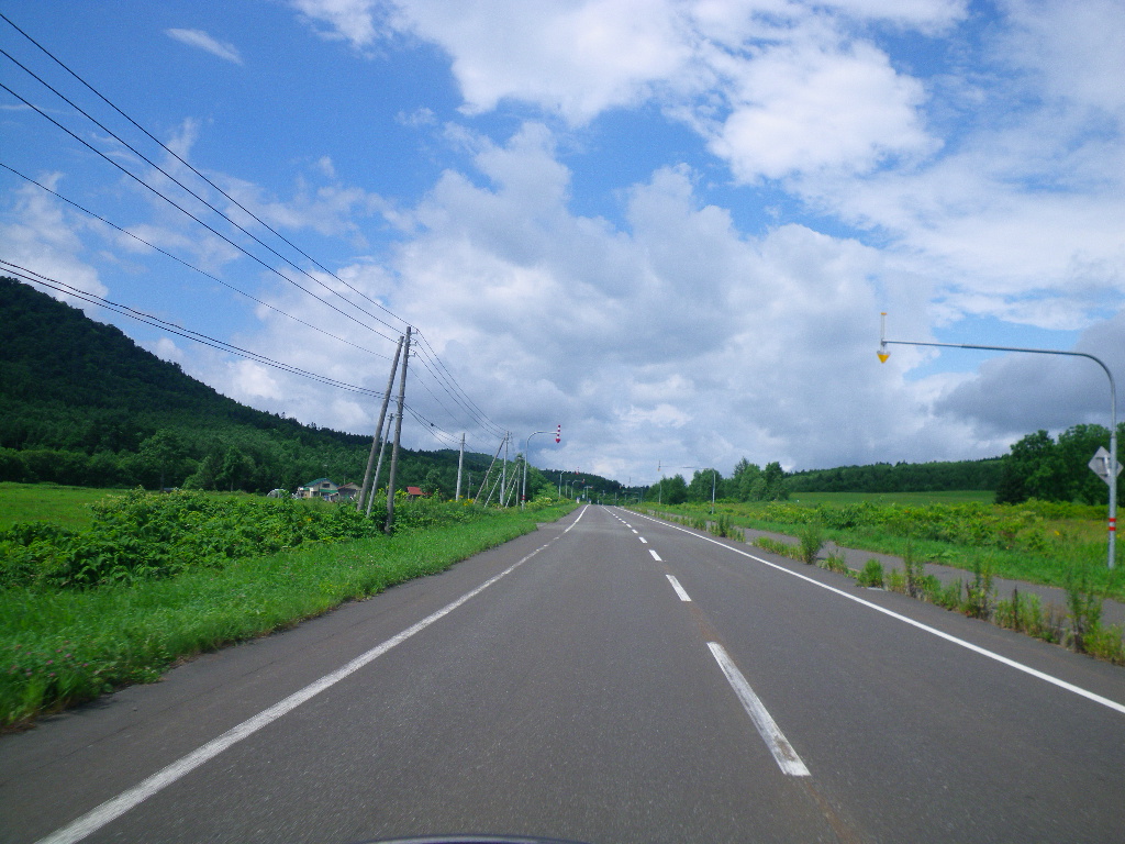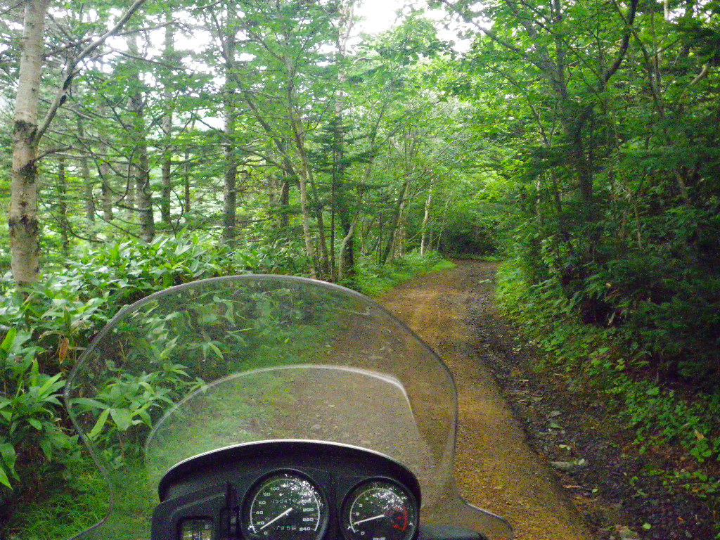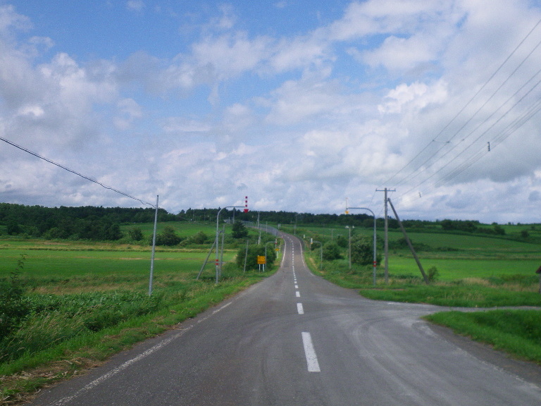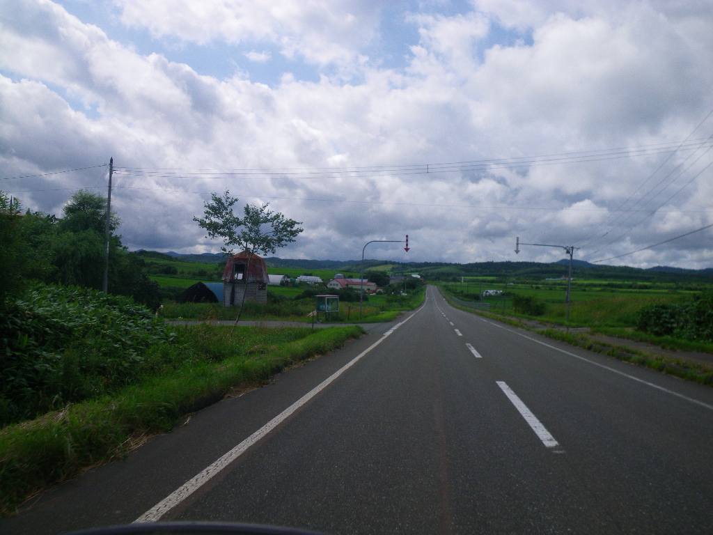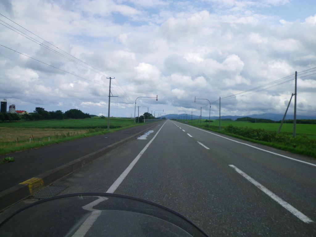 ![]() 内陸部を北に走る。早すぎると雨雲に追いつくので速すぎないペースで対向車の来ない道を下川に向かう。 |