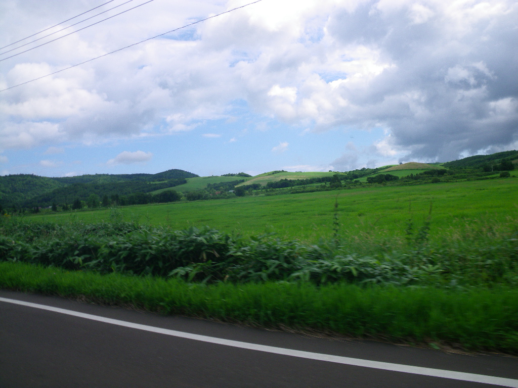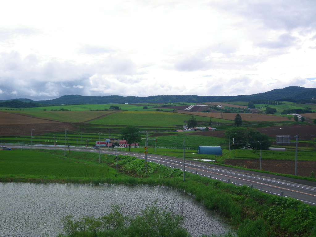 ![]() 昼を食べている間に雨も上がったようだ、道道4号線で旭川に向かう。新城峠ではミニ美瑛のようにパッチワークの丘が見れた。 |