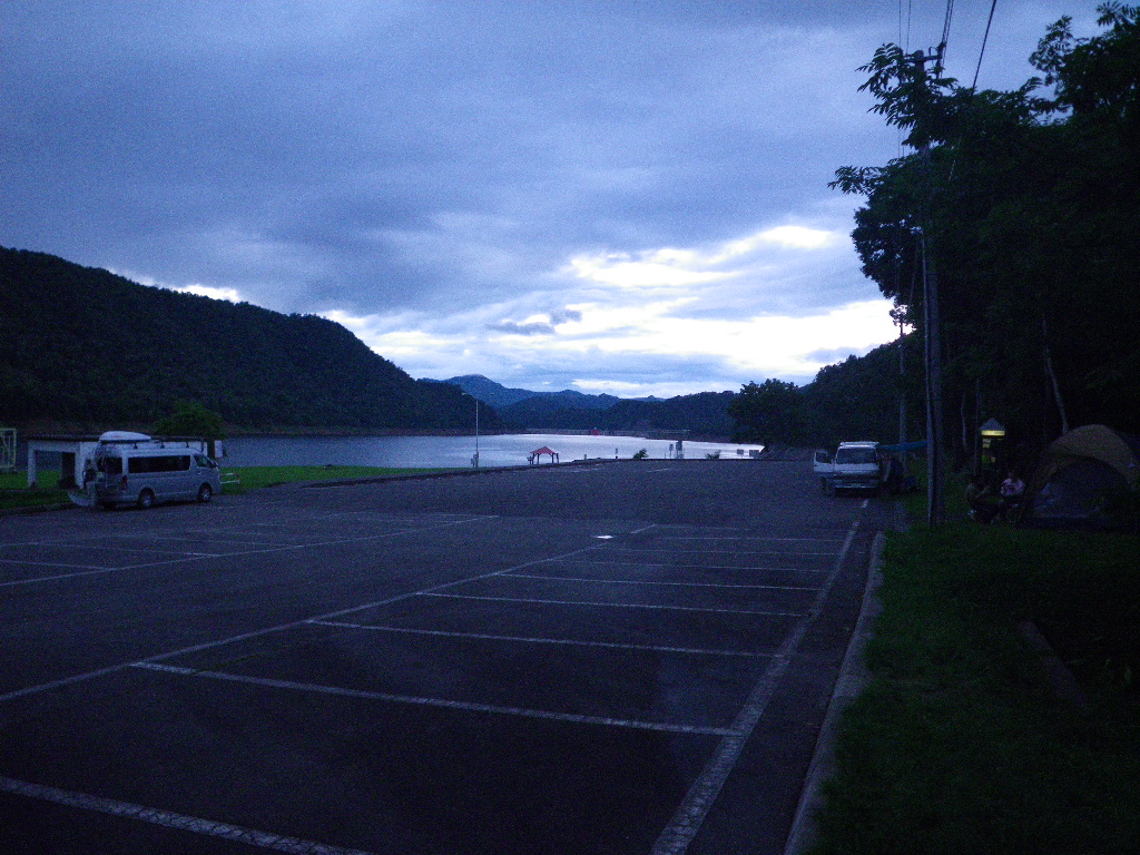 どんどん山奥になる。岩尾内湖が見えてきたのだがナビの表示が悪くキャンプ場が見つからずうろうろする。![]() 湖畔の公園のとこかなと思いつつ半島のとこだったと地図を思い出しもう少し先へ行くことに。 キャンプ場が見つかってよかったこんなとこで野営はおそろしい。しかしキャンプ場にも熊が出たのでテント禁止の表示が。 |