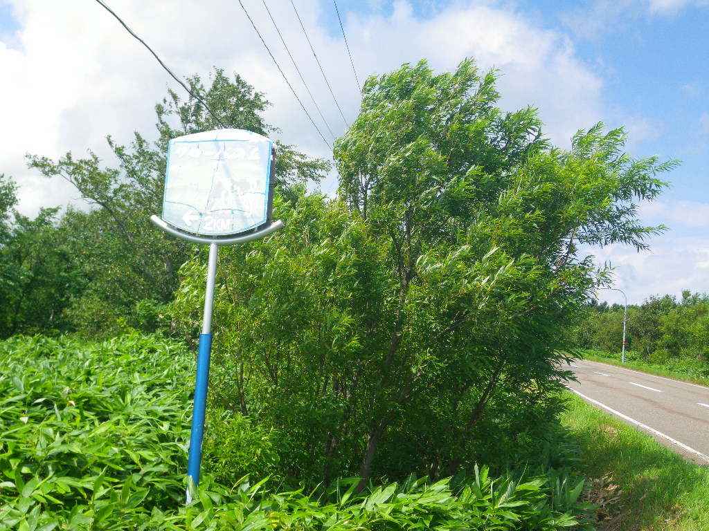 | 浜頓別で国道手前を左に入りクローバーの丘を探す。小さな色あせた看板によく見るとクローバーの丘と書いてあるのだがよく気をつけないと判らないのでは。 |