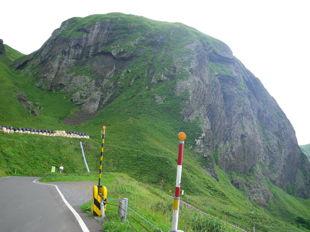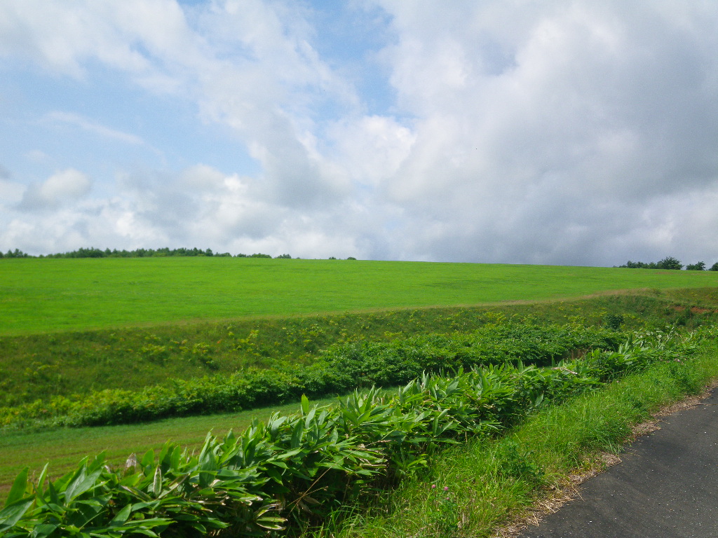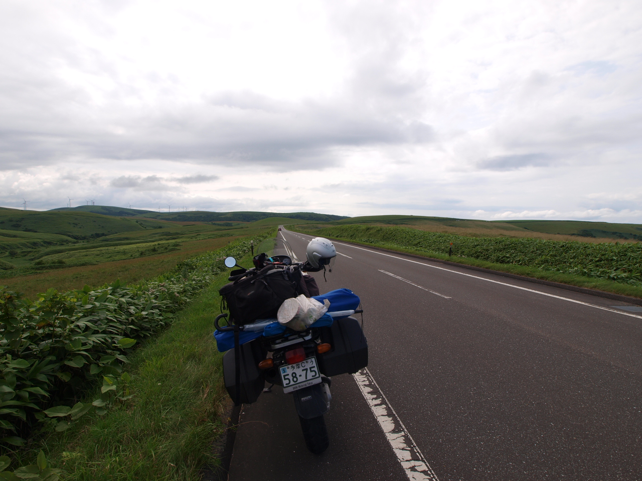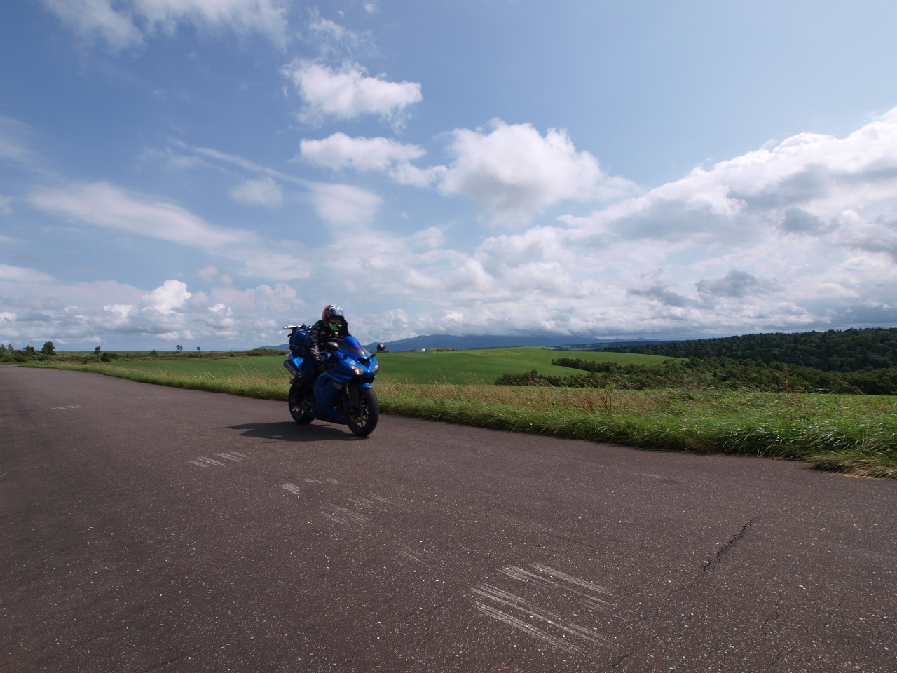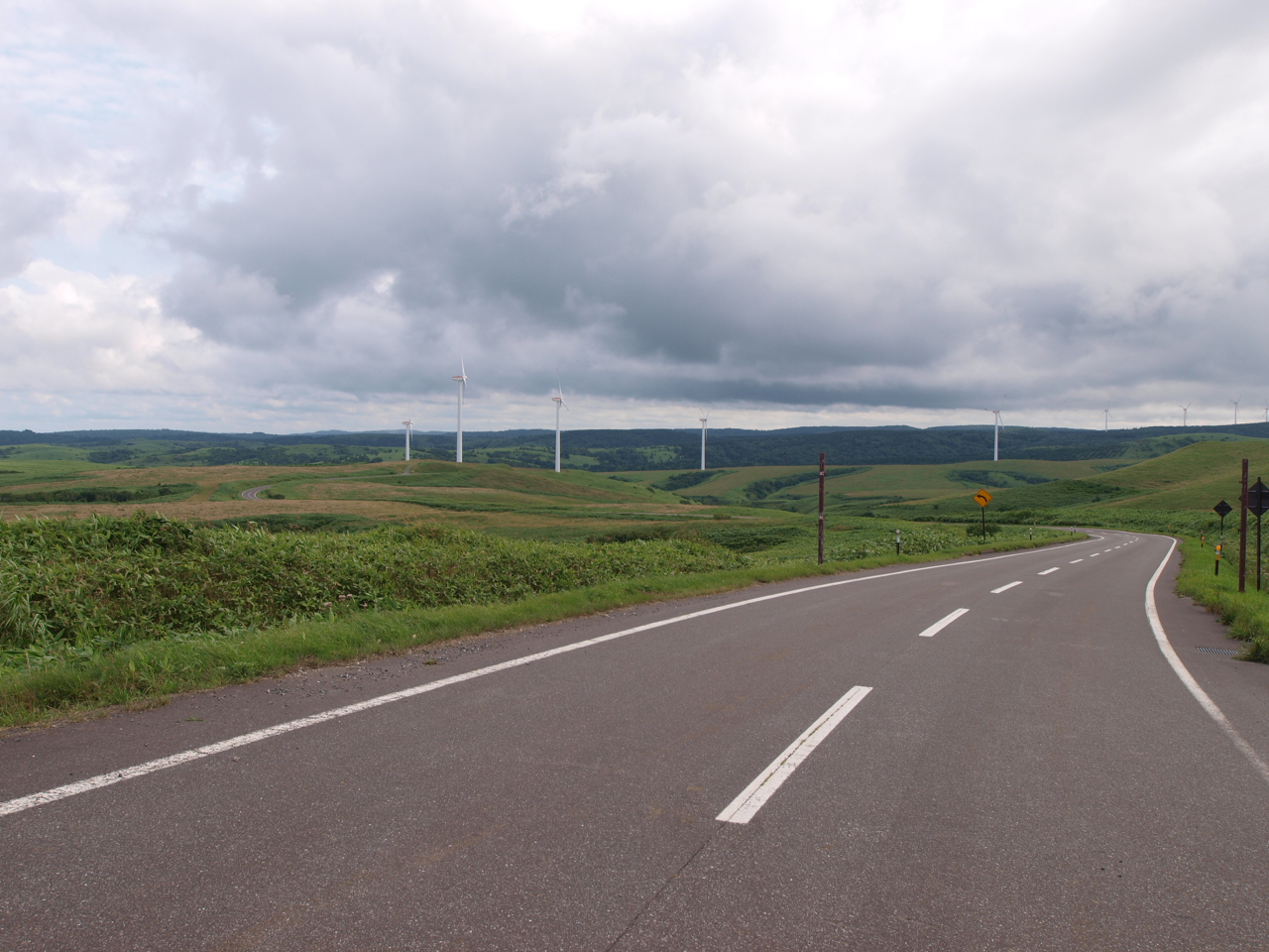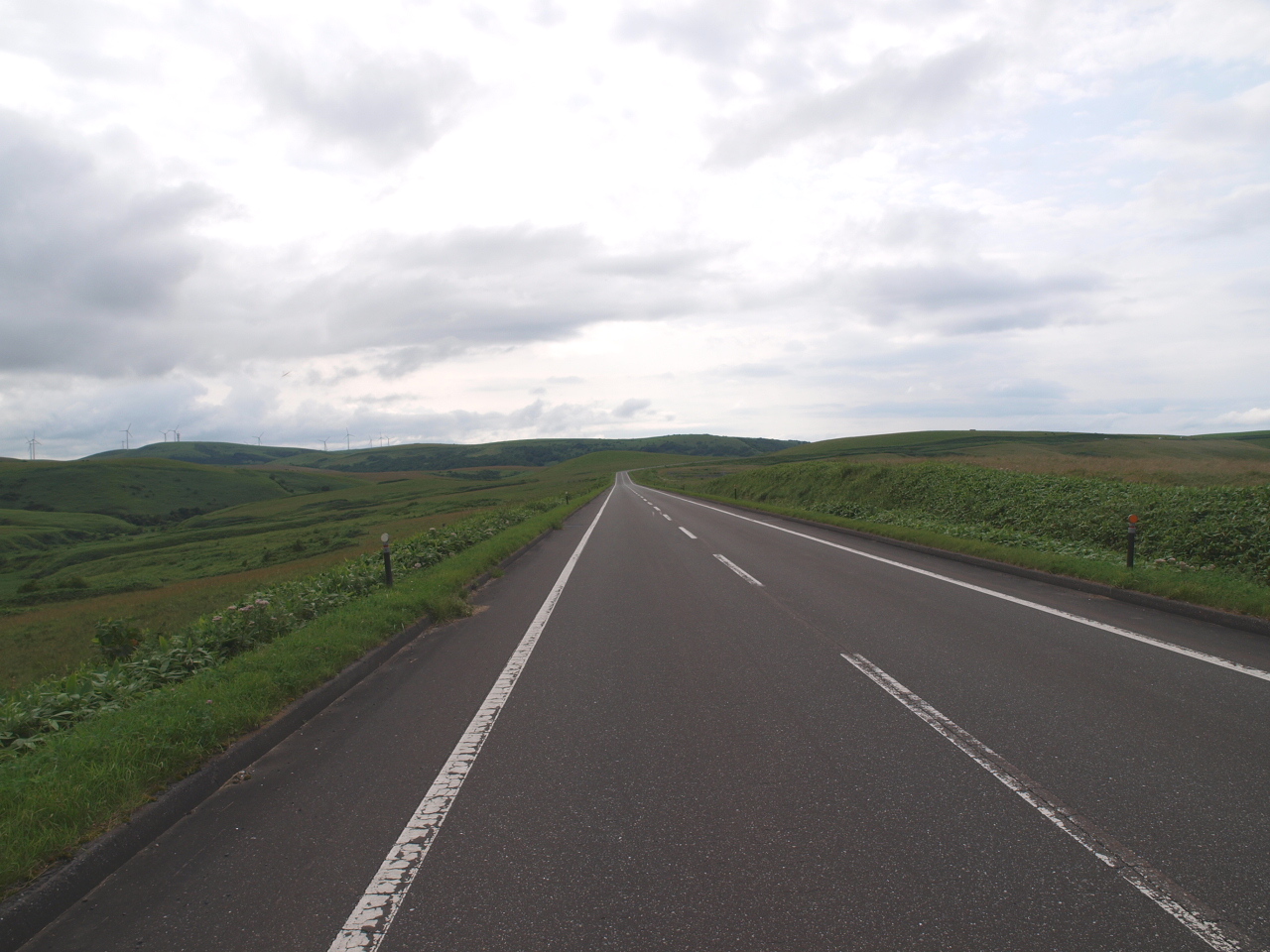 | 宗谷国道は、ほとんどが変化の無い道だがここ宗谷丘陵の辺りだけ変化にとんだうねりのある道となっている。浜頓別からサロマ湖辺りまでは本当に変化が無く飽きる。今回はそれを避けて山中を走ったのだ。 |