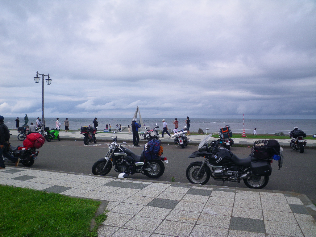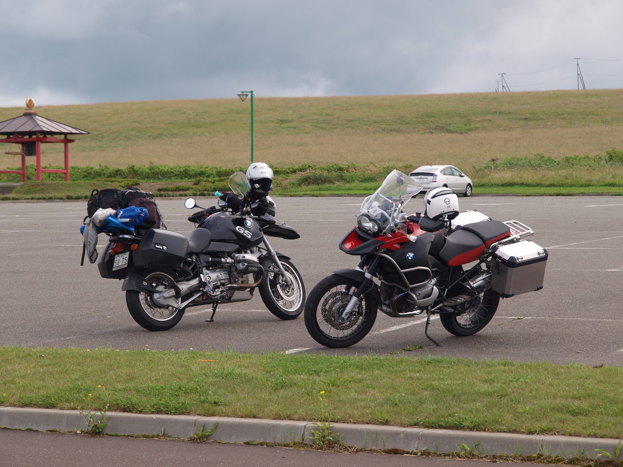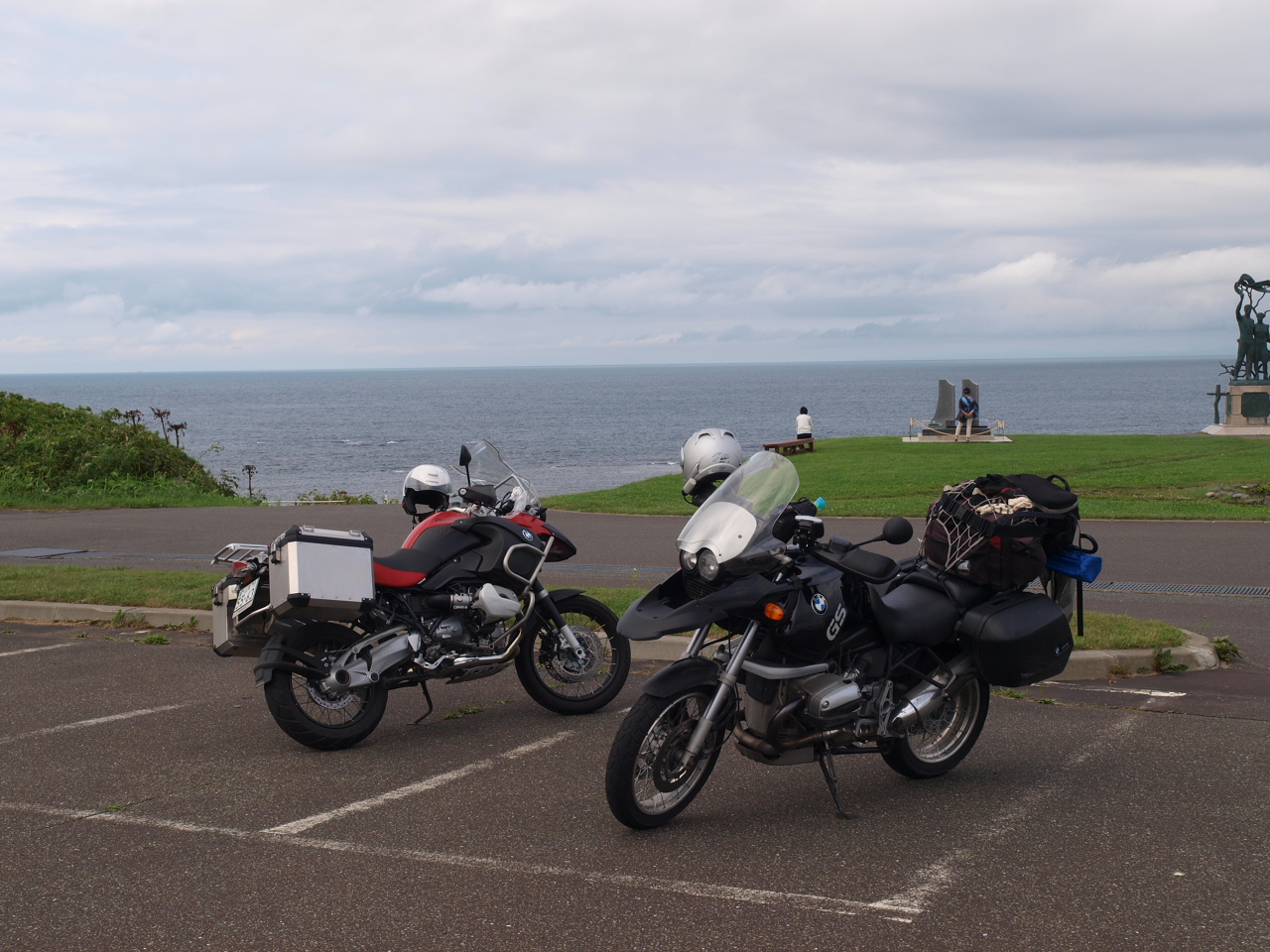 宗谷丘陵の風力発電を見ながら端まで来ると宗谷岬だ。どこにいたのかと思うほどのバイクと人。![]() ![]() 宗谷岬の山側には宗谷岬灯台、ここから宗谷丘陵に上がる。ちょうど1200GSのアドベンチャーと一緒になる。停め方がCMみたい。 |