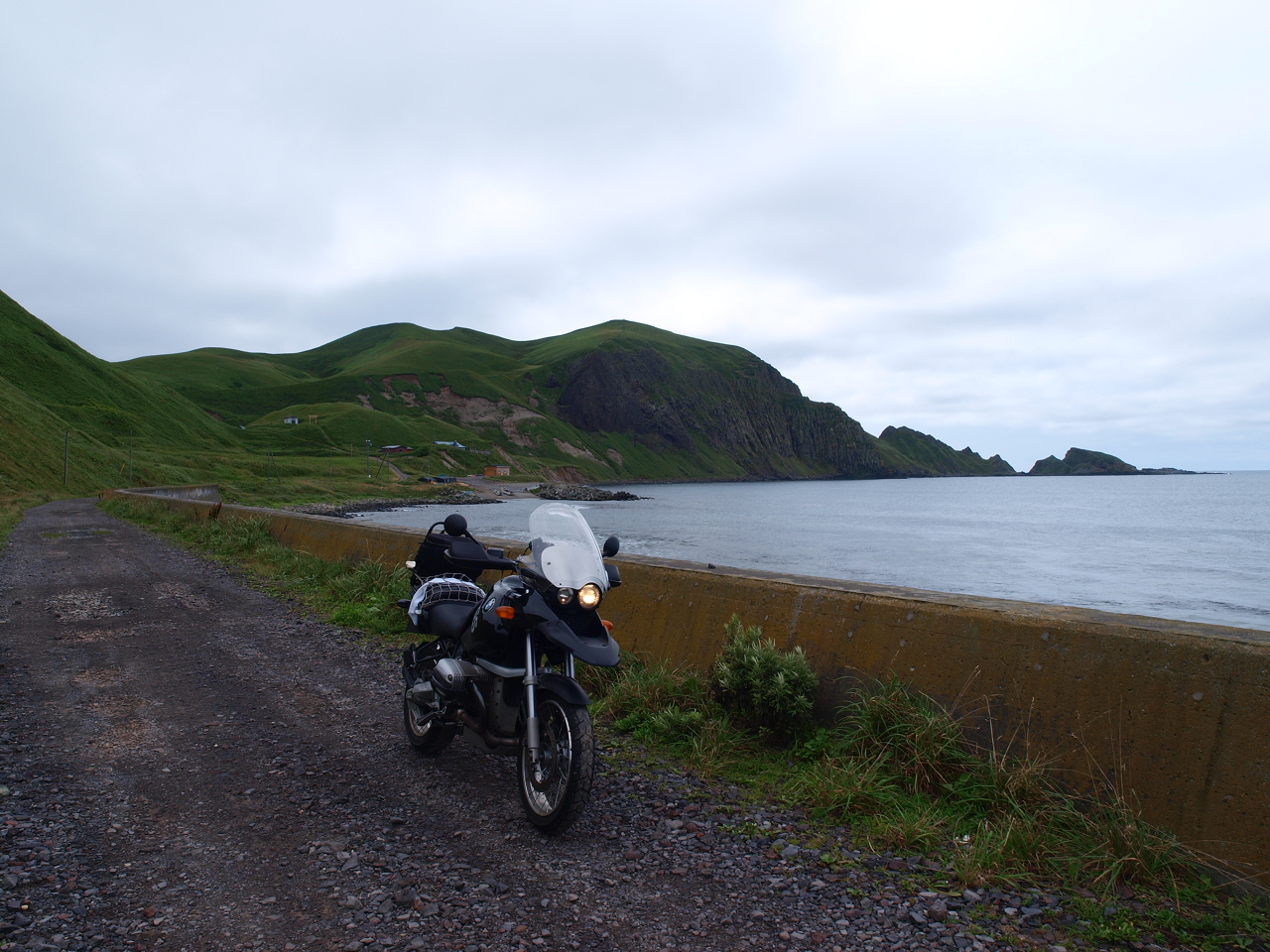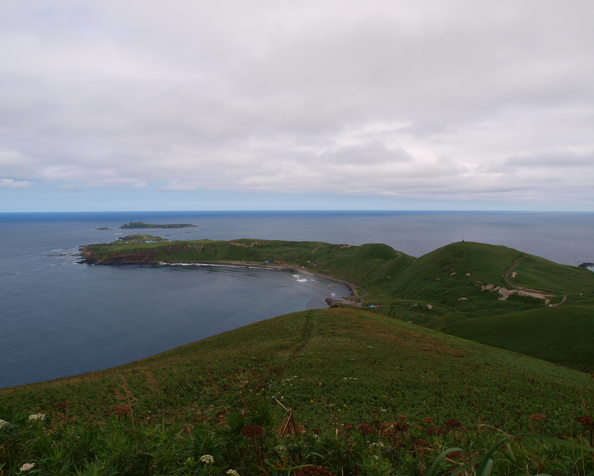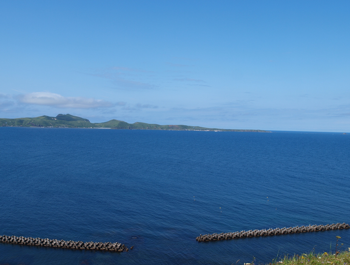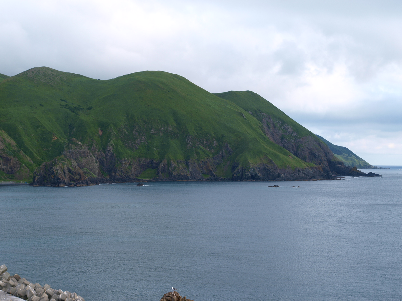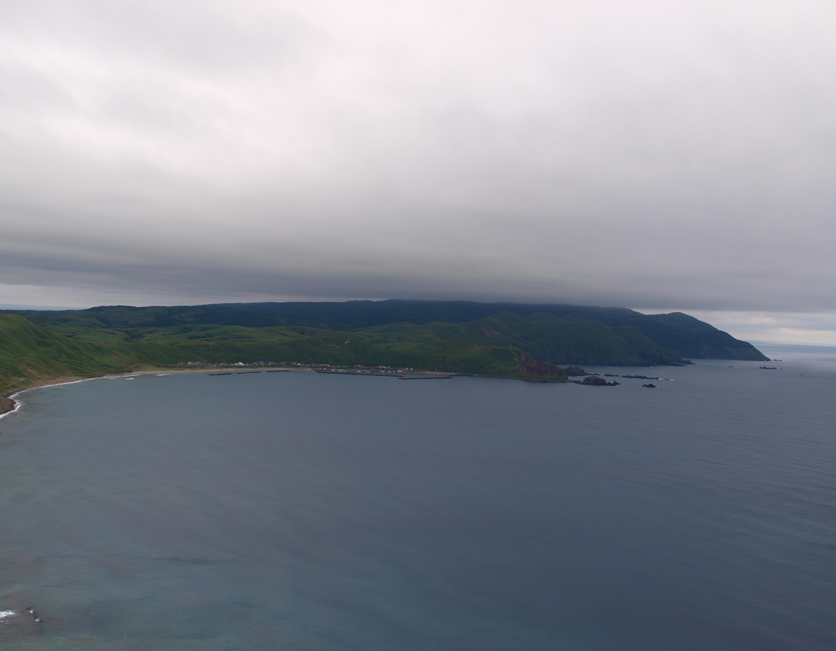 | 早起きしてさっさと撤収込んでいるキャンプ場をあとにフェリー乗り場へ向かう。曇りがちだが見通しがよくサハリンまで見通せた。 |