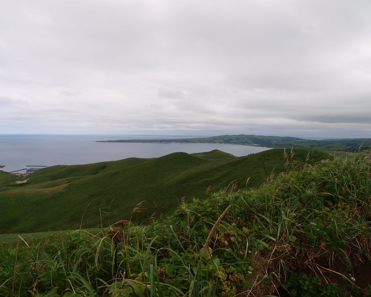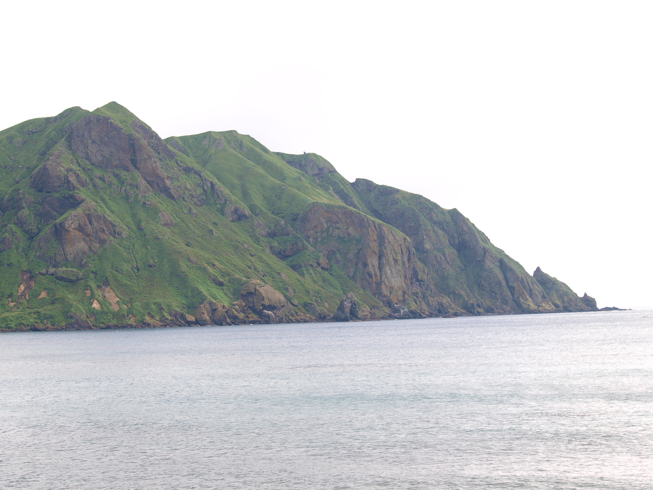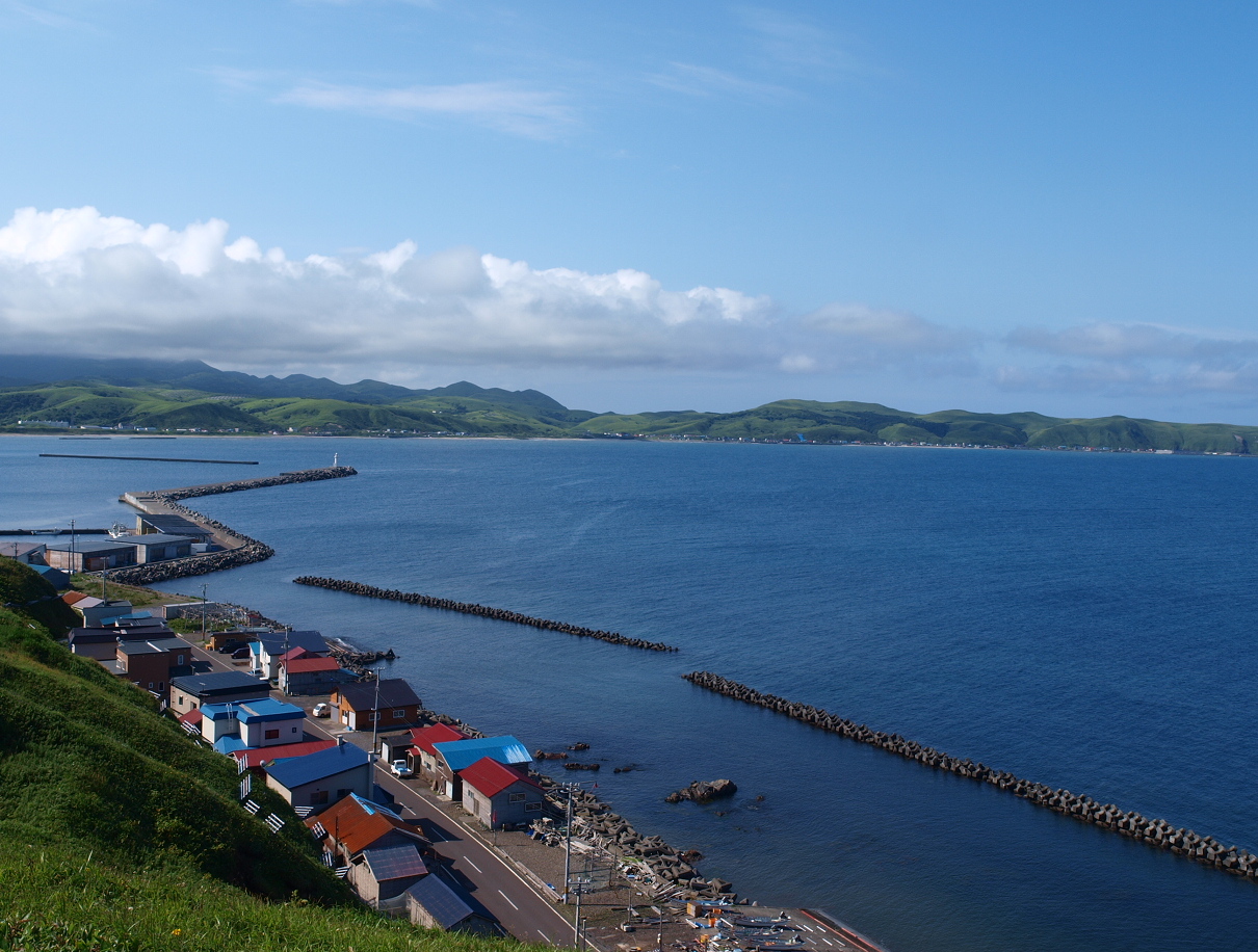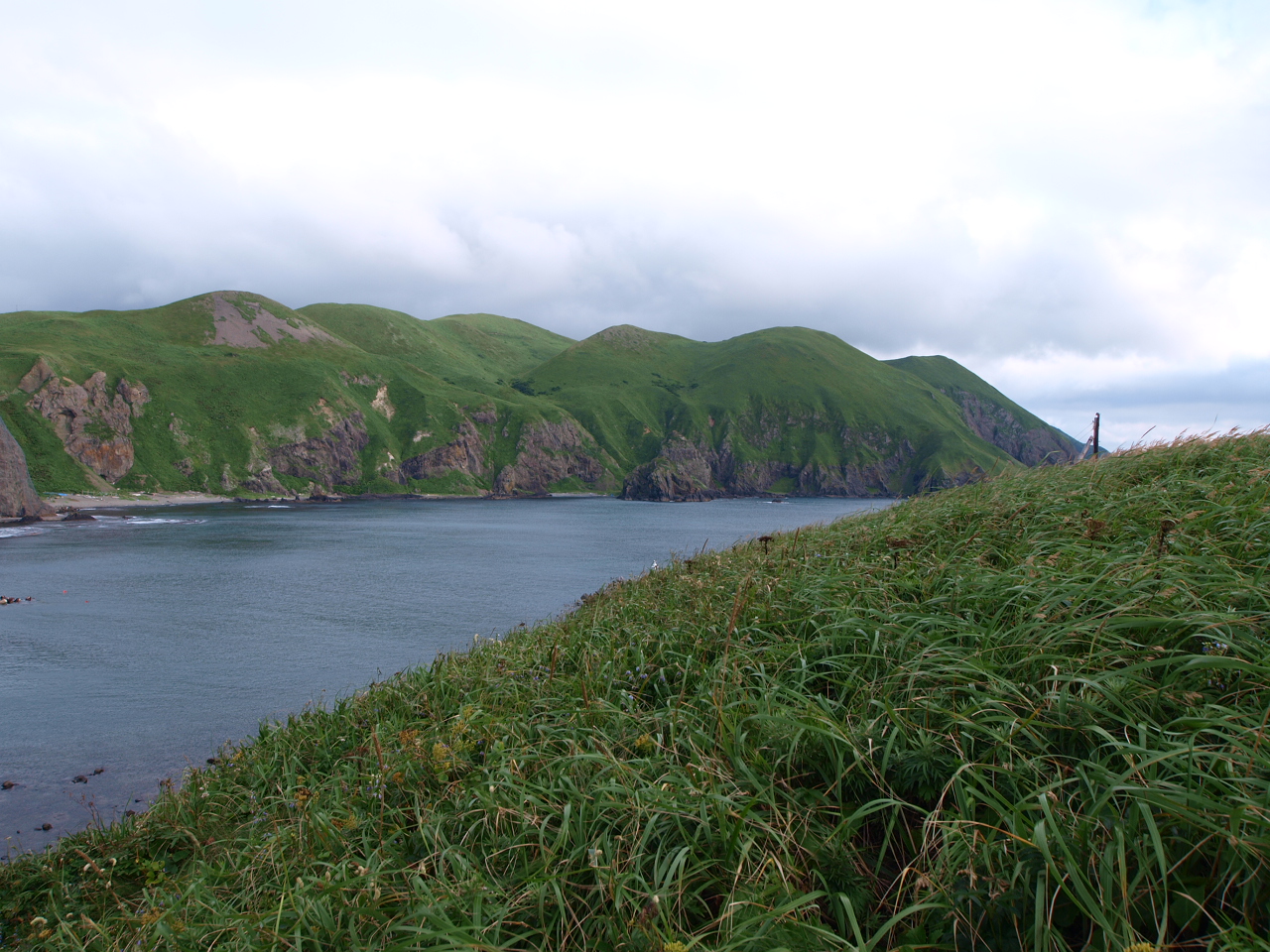 | 早起きしてさっさと撤収込んでいるキャンプ場をあとにフェリー乗り場へ向かう。曇りがちだが見通しがよくサハリンまで見通せた。 |