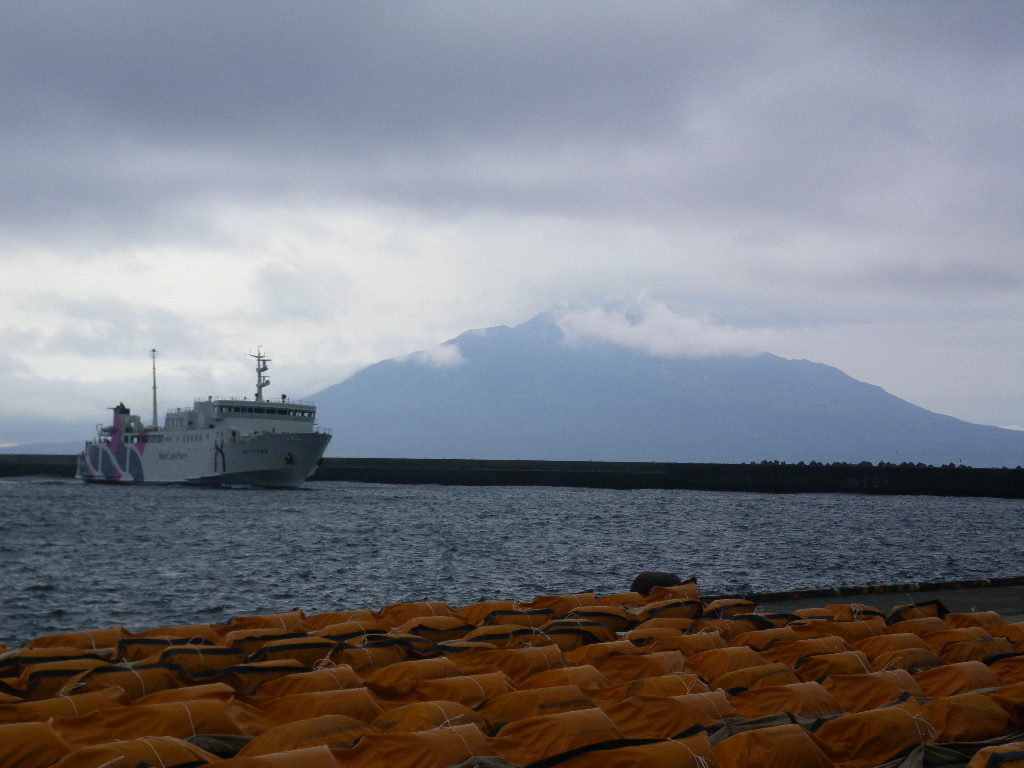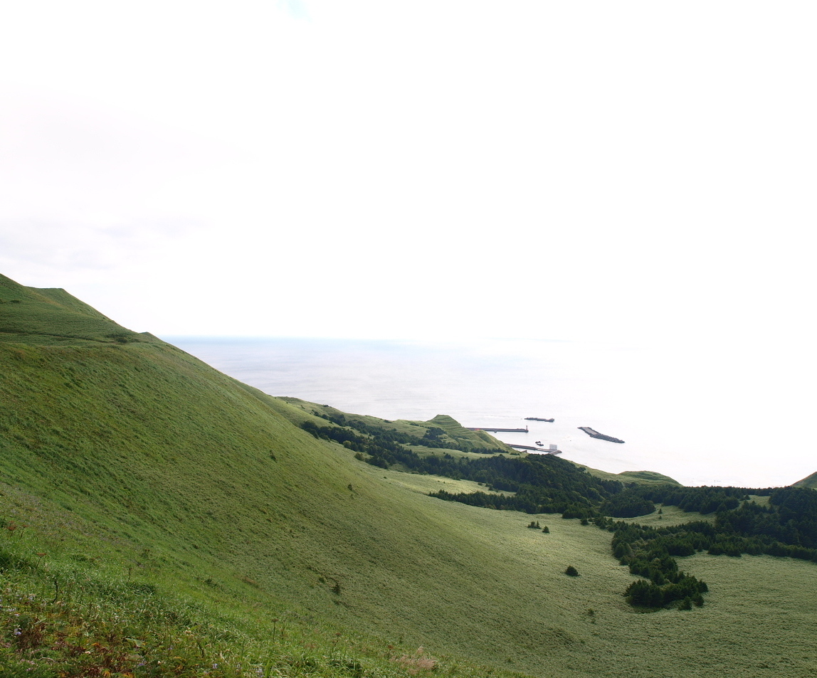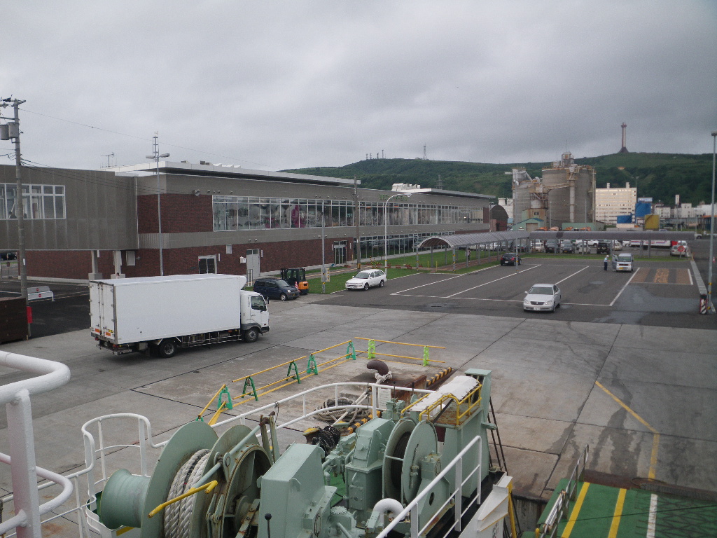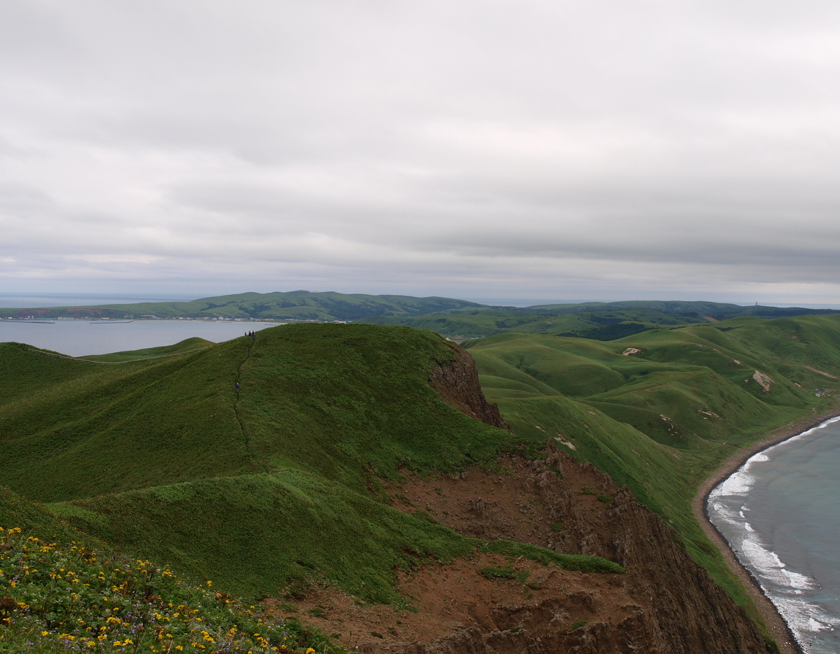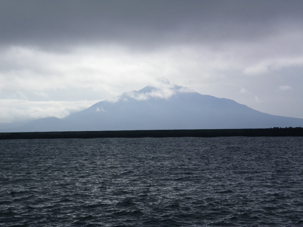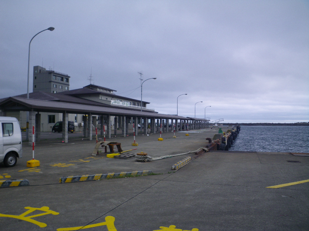 | 早起きしてさっさと撤収込んでいるキャンプ場をあとにフェリー乗り場へ向かう。曇りがちだが見通しがよくサハリンまで見通せた。 |