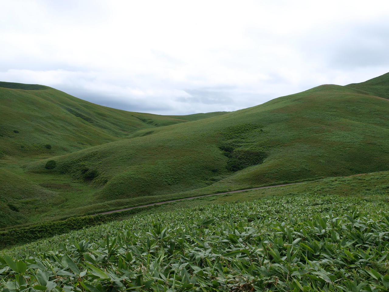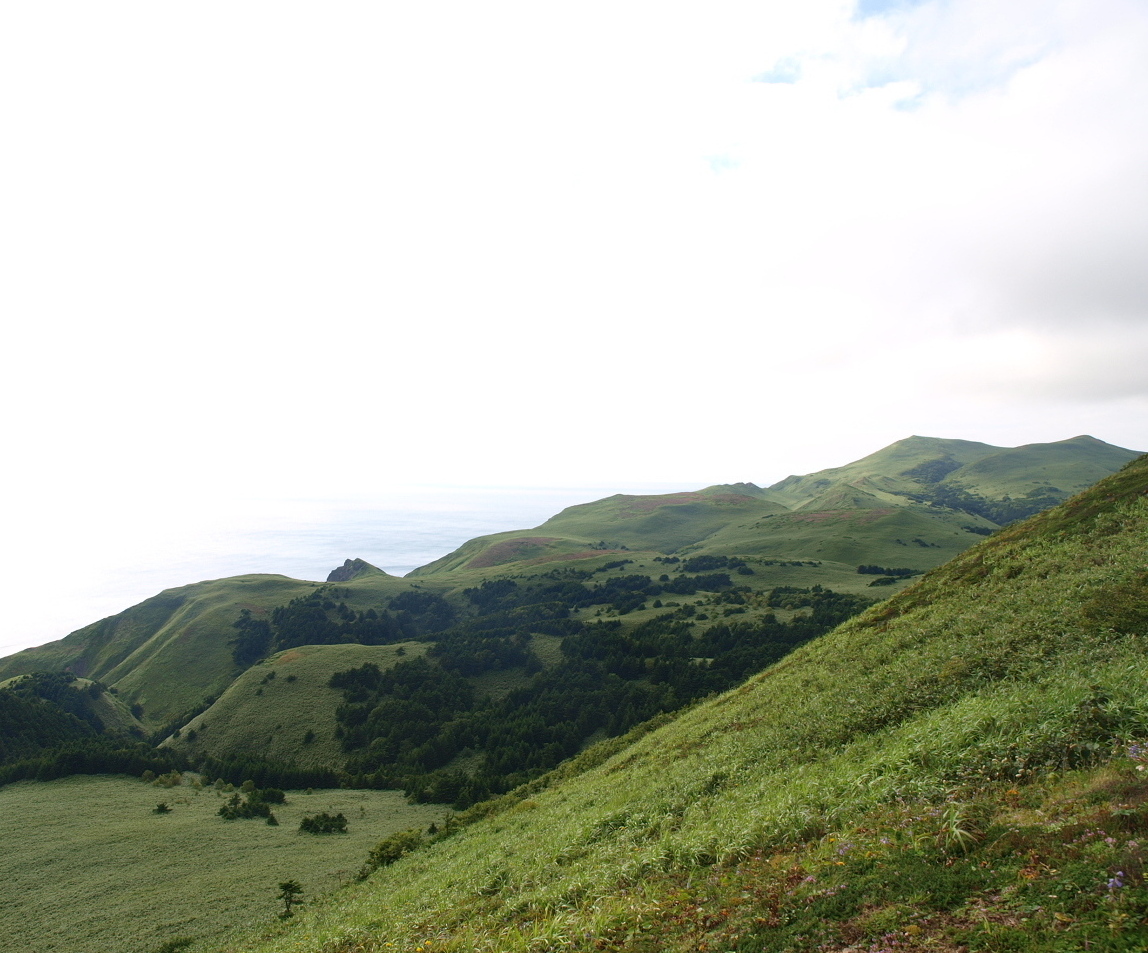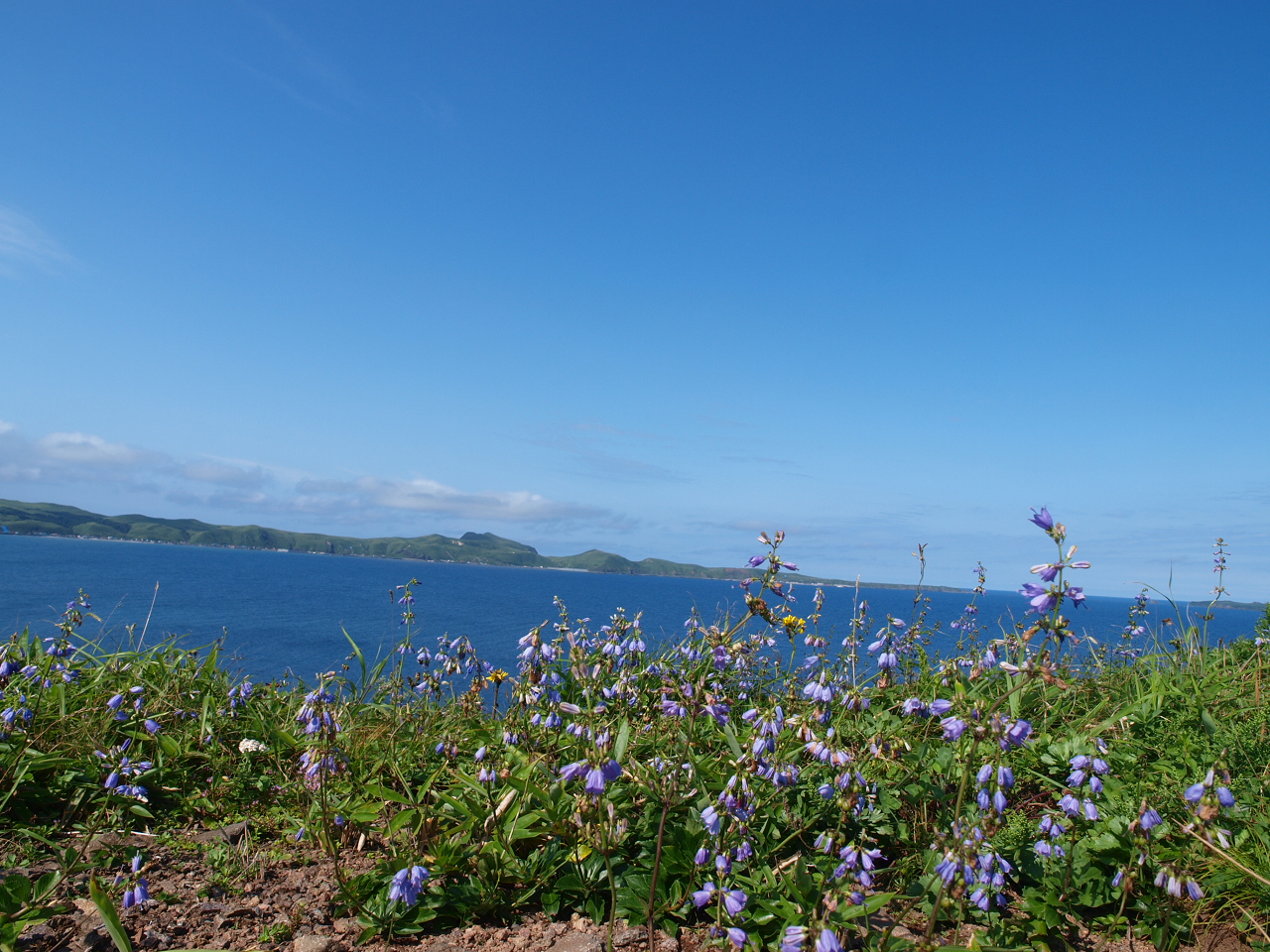 | 海抜0mから高山植物が生えるといわれている礼文島。熊笹と高山植物がやさしい景色を作っている。 |