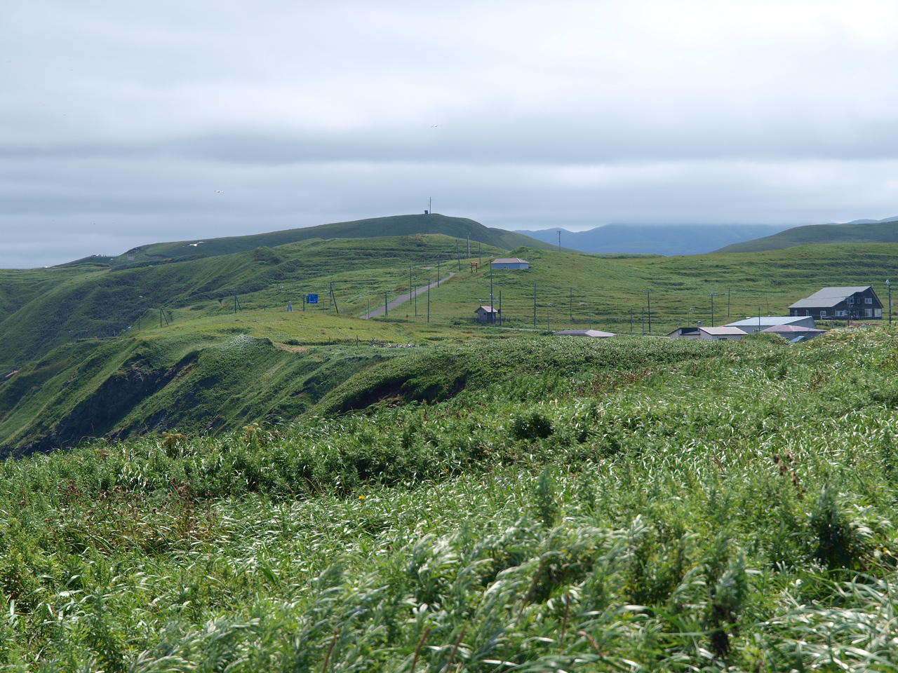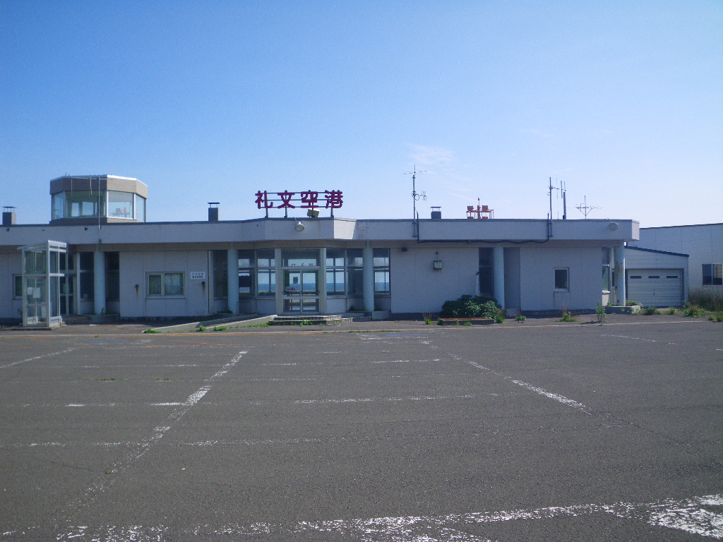 | 金田ノ岬の上にある礼文空港に向かう、定期便は無く廃港の危機にさらされているようだ。 |