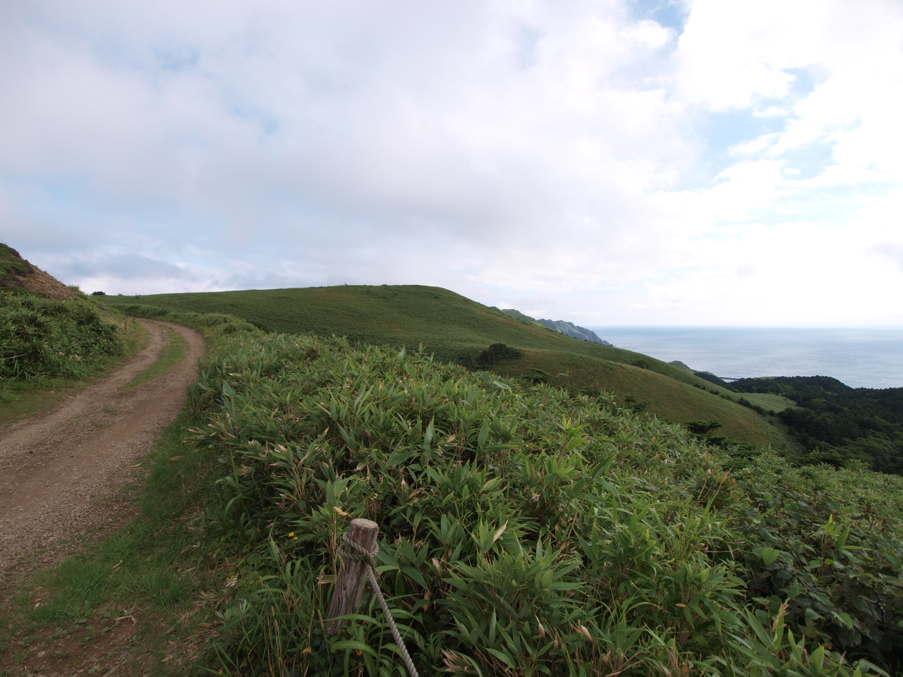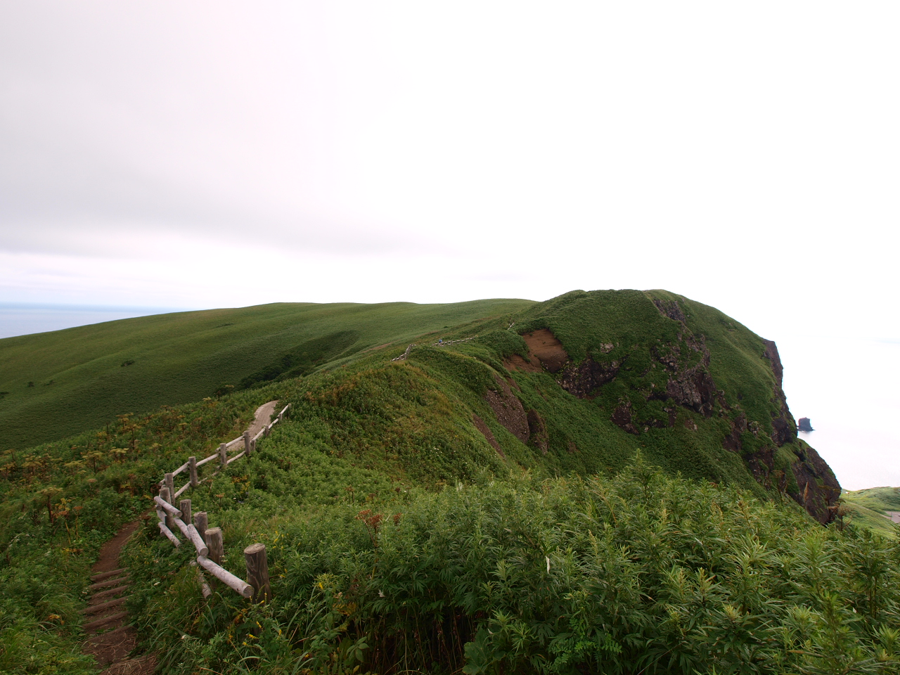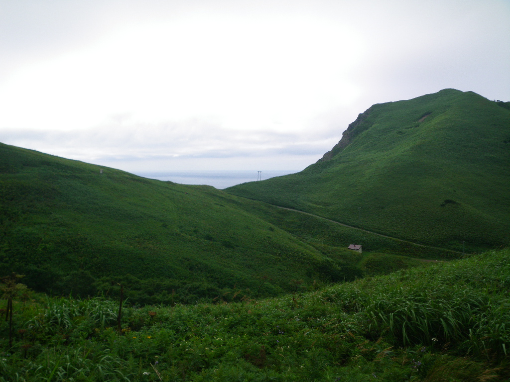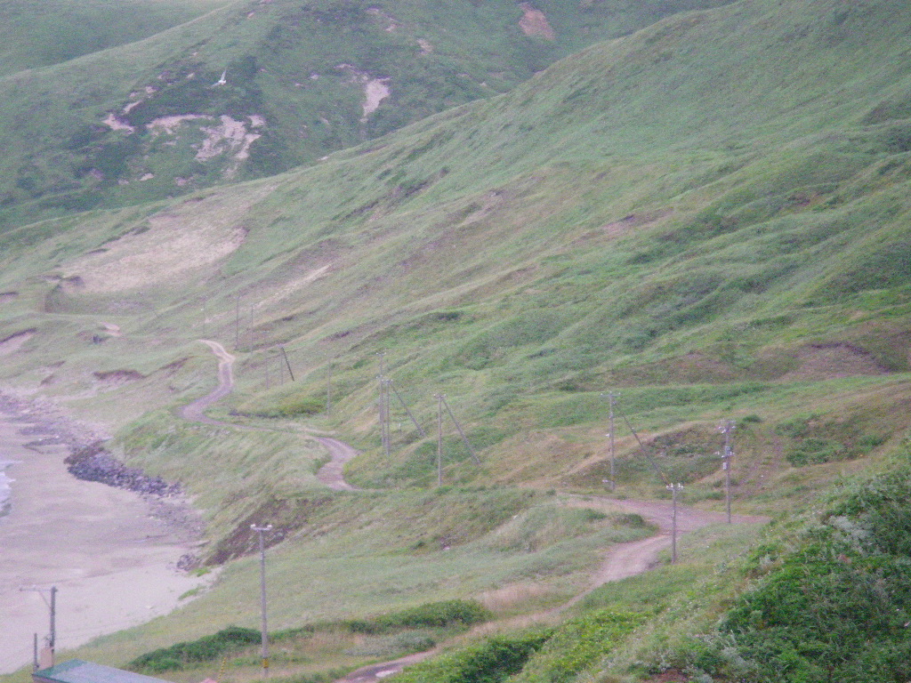 上に見えるのが元地灯台 桃岩展望台から1時間ぐらいでいけそうなのだが残念ながら時間切れ。 ![]() 元地をあとにして礼文の目的の一つ礼文林道に向かう。ガレ場が少なければいいのにと願う。 |