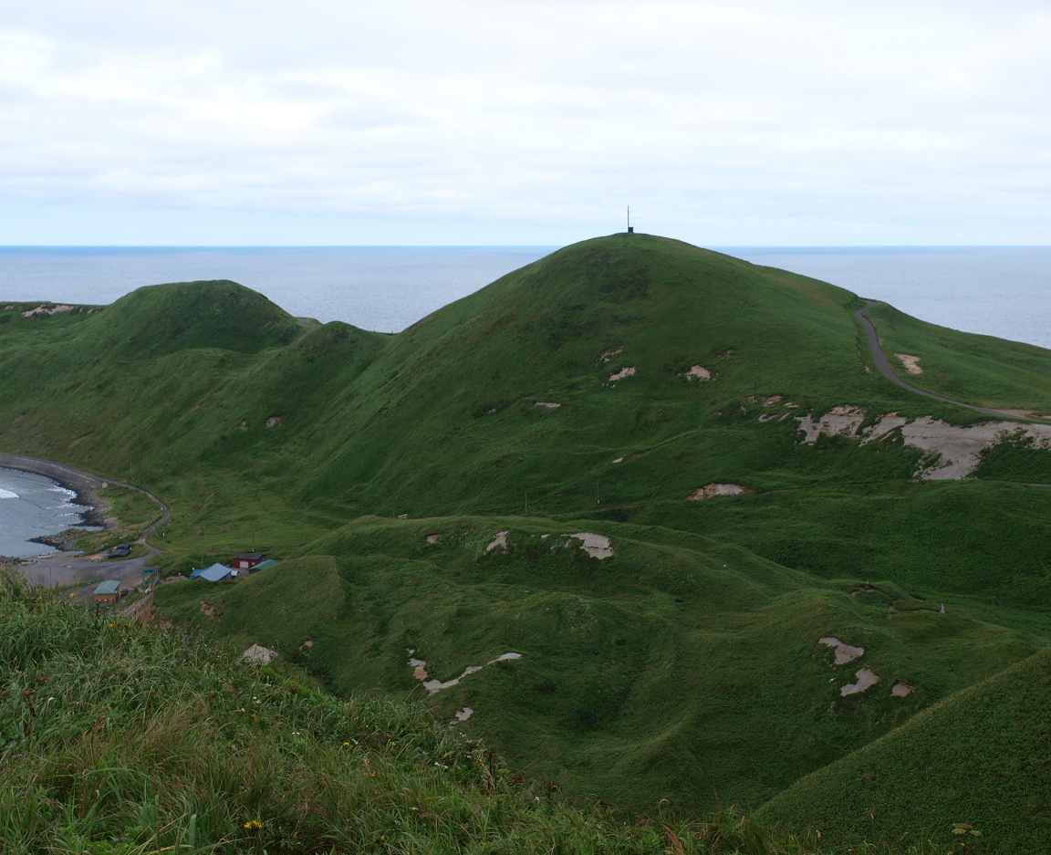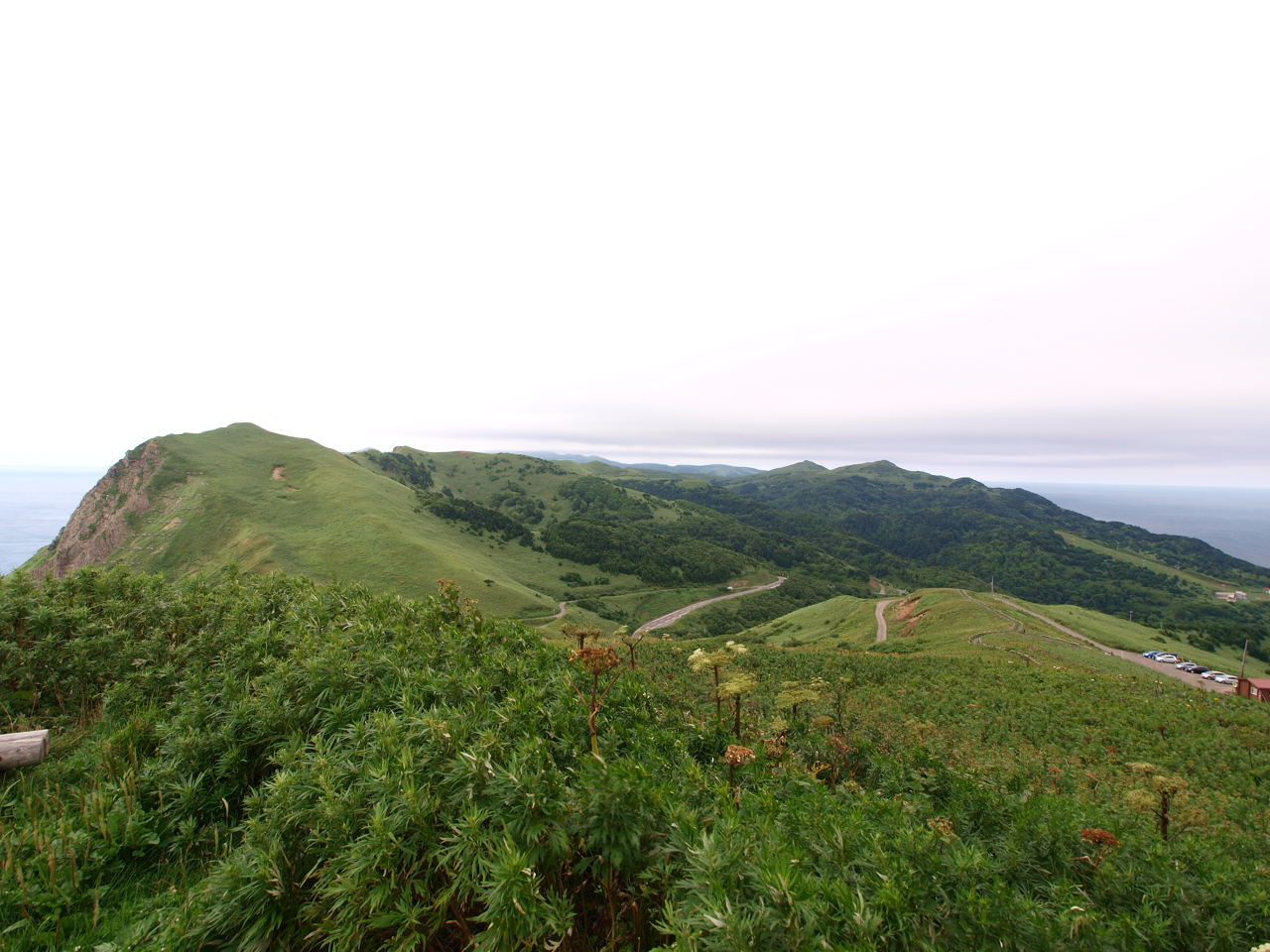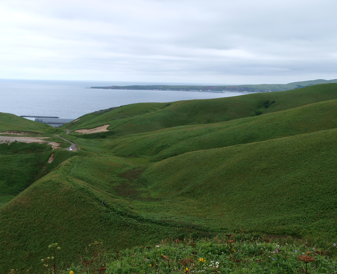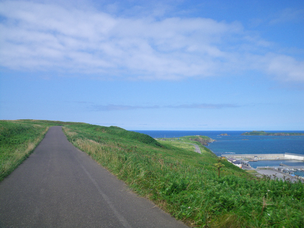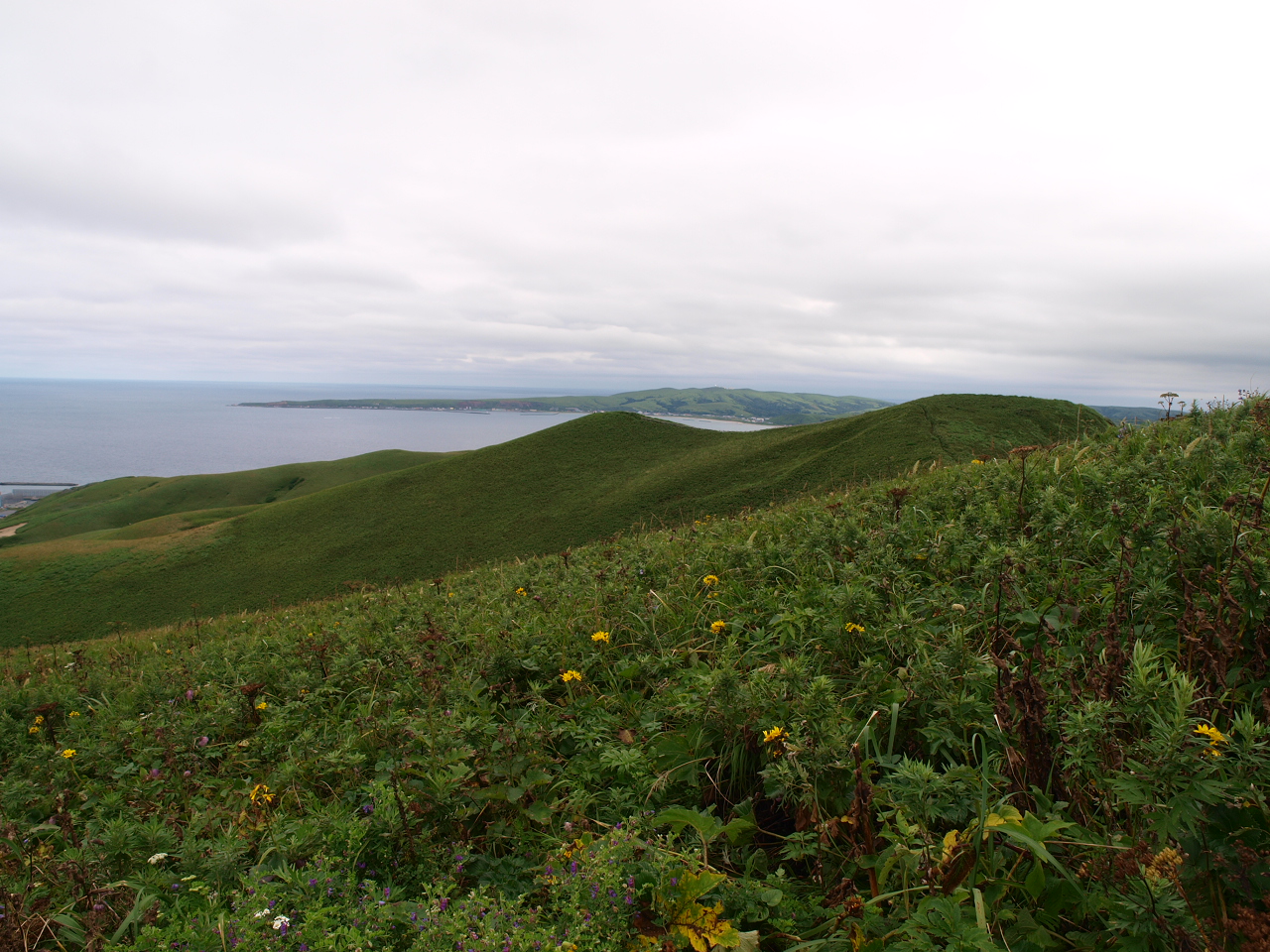 | 閉鎖されている礼文空港に登る道からストコン岬方面を見る。 |