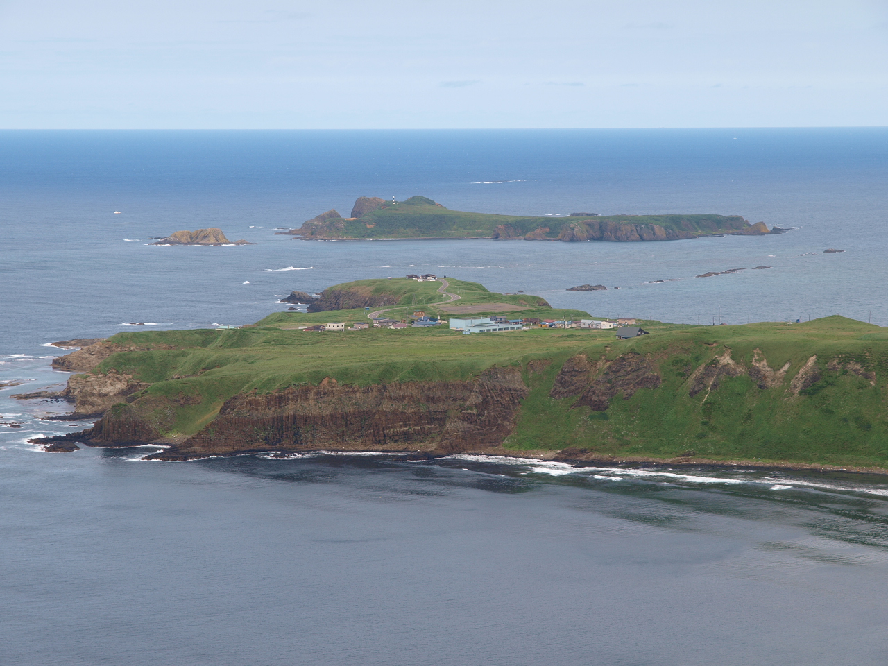 | 日本最北端のトド島灯台が見えるストコン岬。 |
