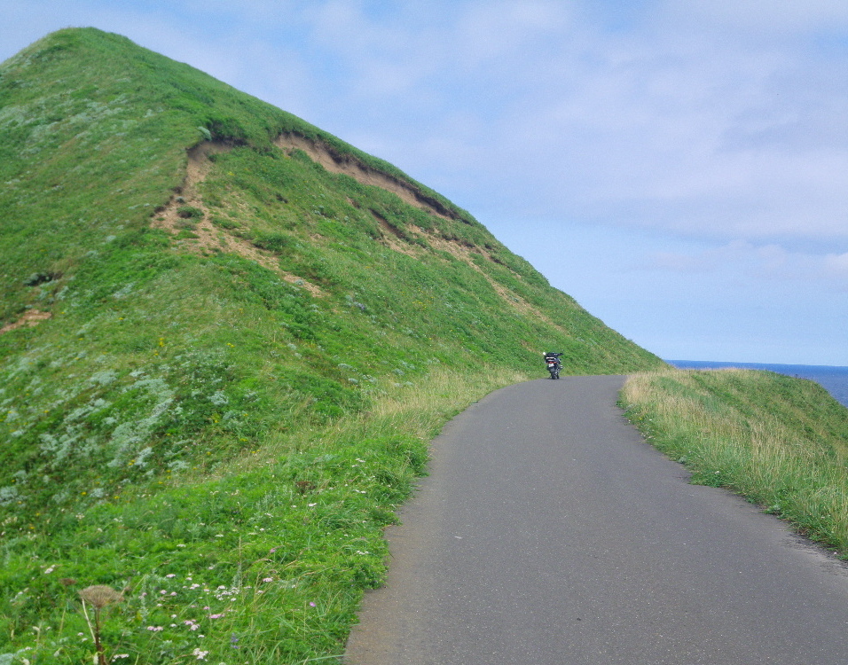 ゴロタ岬から下りバイクに戻る。 ここからストコン岬の間も道は狭いが綺麗な景色が続く。 ![]() 道の両側に海を見ることもできたりする。歩いて楽しんでいる人がいるがやはりその方が正解なのかもしれない。原チャリで走るのが一番向いてるのかもしれない。 |
