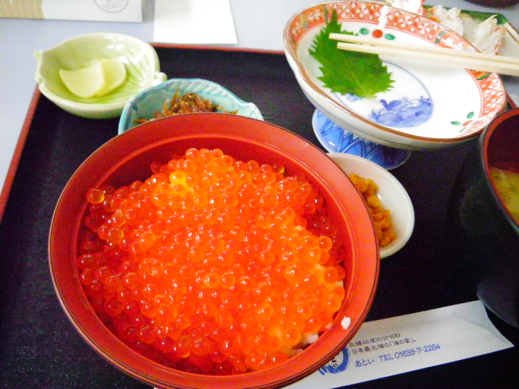 船泊漁協の直売店のあとい![]() 夜も来るつもりで毛がにの3食丼セットとうに丼は、やめておきいくら丼にする。出てきたいくらを見てびっくり、なんていう量だ米が見えないほど、うにの突き出しやタラバの足も出してくれて大満足。 夕食はここに決まり”夜は何時までですか”の質問に”3時までです”の回答。しまった毛がにの三色丼にするのだったとガックし。 今回はこのまま蟹を食べることなく終わりそうな予感が。 |