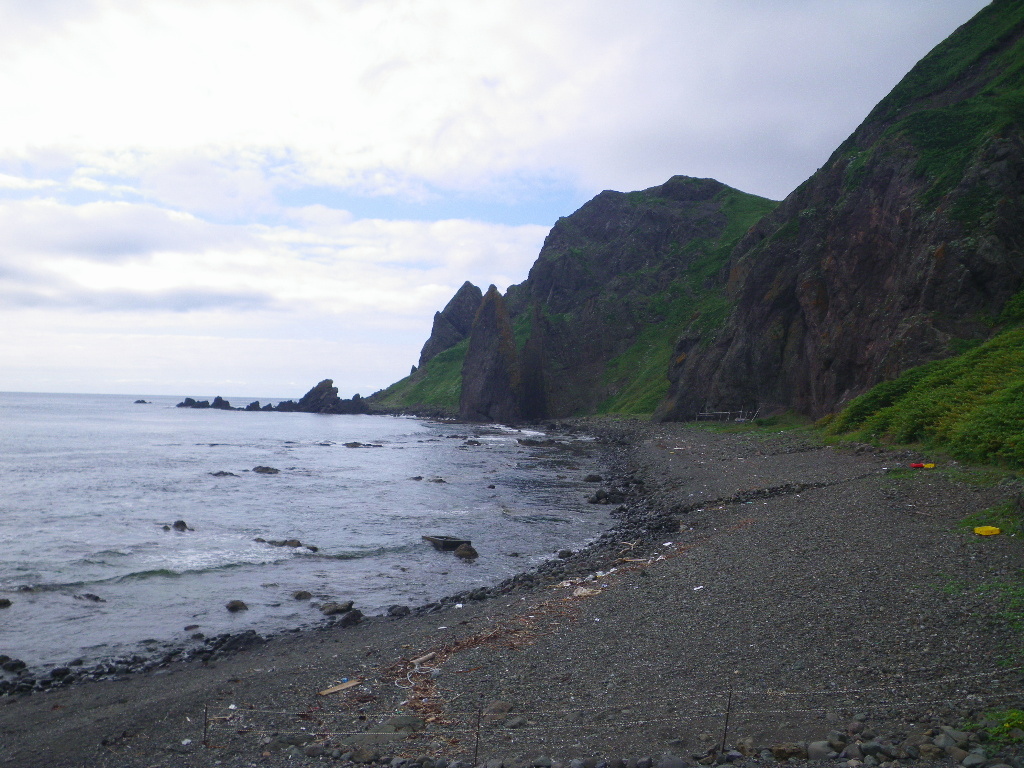 久種湖畔キャンプ場に設営を終え昨日湿ったものを干しキャンプ場で食料の調達先と風呂を教えてもらい食品店を廻りながら、まずはストコン岬へ向かうことにする。![]() ストコン岬へ向かうのも海沿いから山腹の道を選び、道中鮑古丹をへ入る。 |