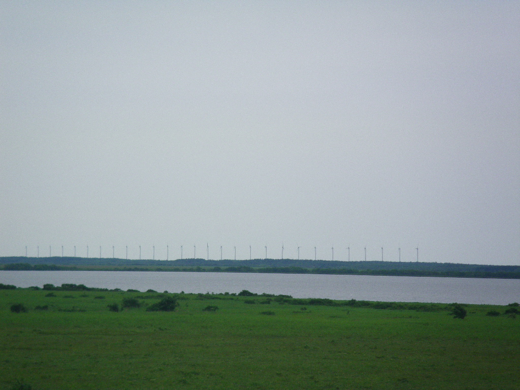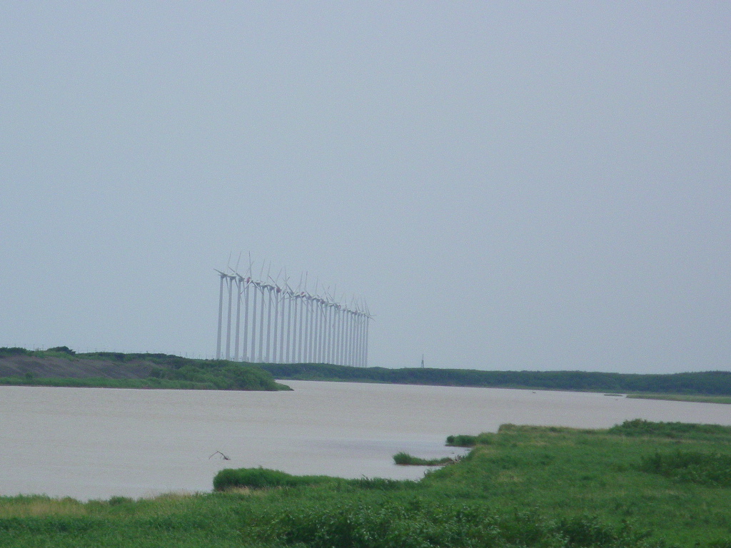 豊富で昼飯、時間に焦りながらパンケ沼に向かう。原野の中の農道? パンケ沼の展望台より見えるオントルイカ原野も広すぎて値打ちが無い サロベツビジターセンターの展望台より長沼 サロベツ原野よりオントルイカ風力発電所 手塩河口大橋から見る発電所 一直線に並んでいるのがめずらしい。 |