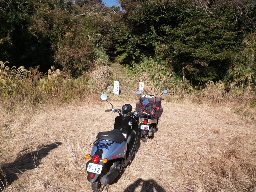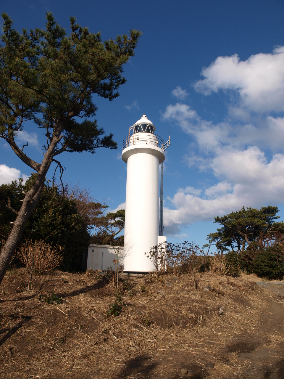 早速大島灯台に向かう。ほとんど人も通らないような怪しげな道を進むと灯台下に、草を掻き分け灯台に到着。