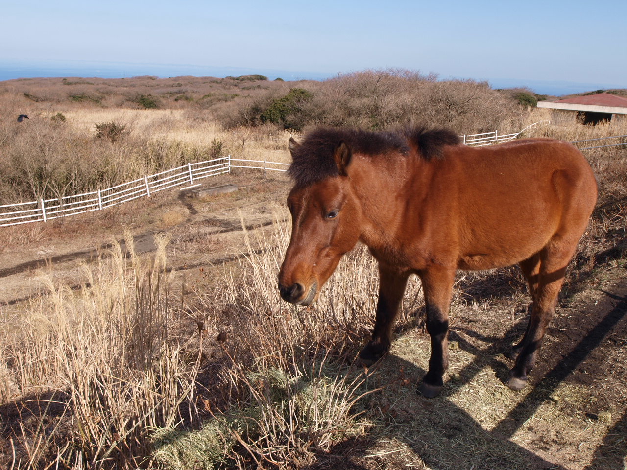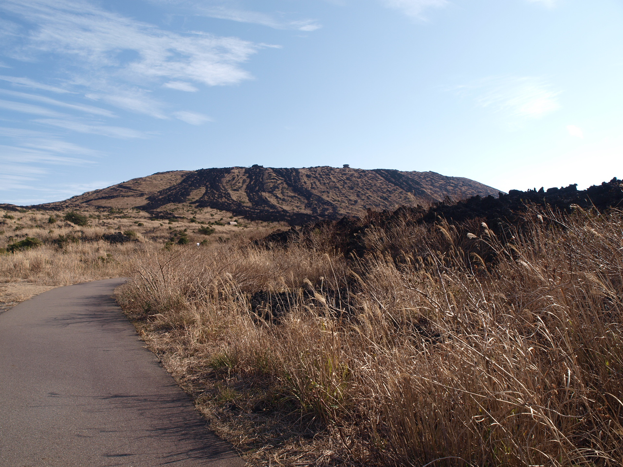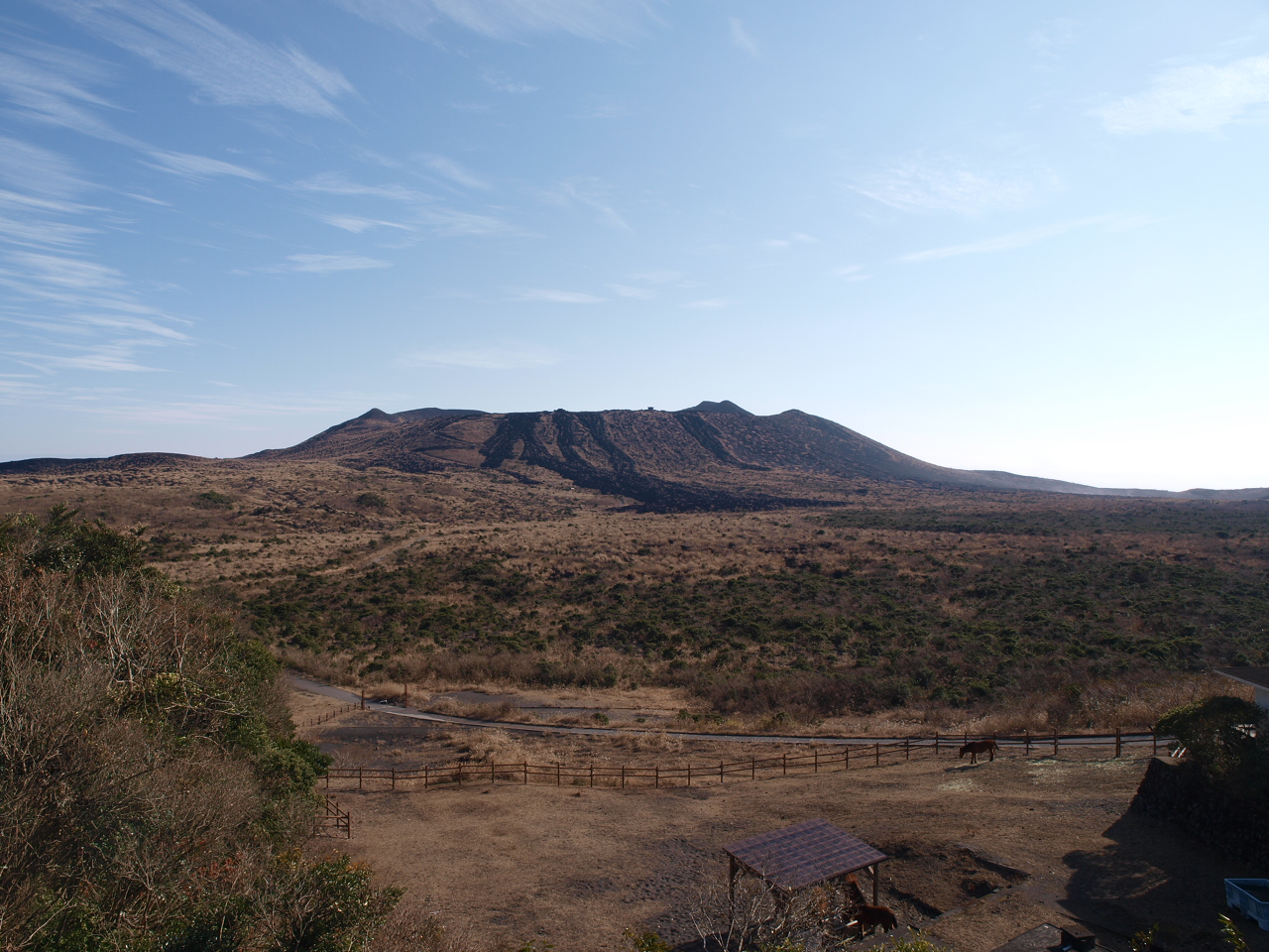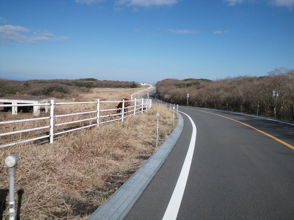 三原山山頂口からはすばらしい道で付近には馬が放牧されている。季節良ければすばらしい景色でしょうがこれだけ誰もいないのはこの季節だけでしょうが。