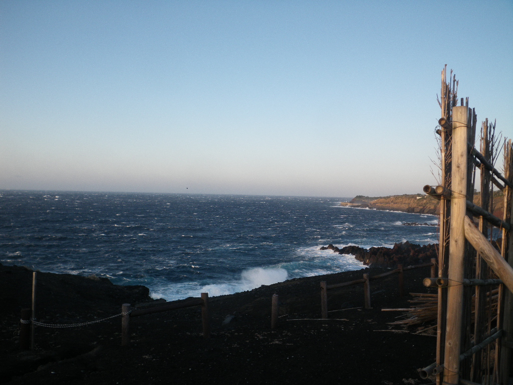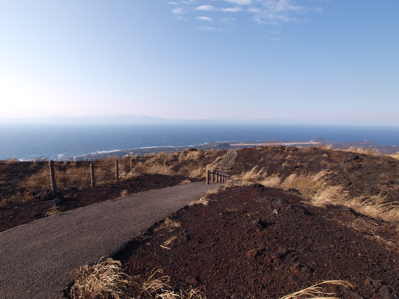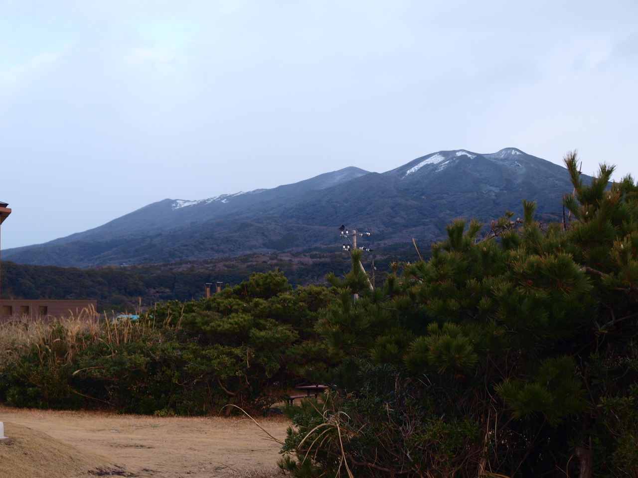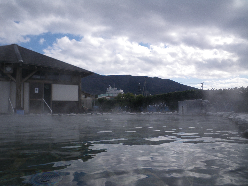 冬のためかほとんど貸しきり状態の三原山温泉、露天風呂から三原山が良く見え間にさえぎるものがないだけにいい気分だ。