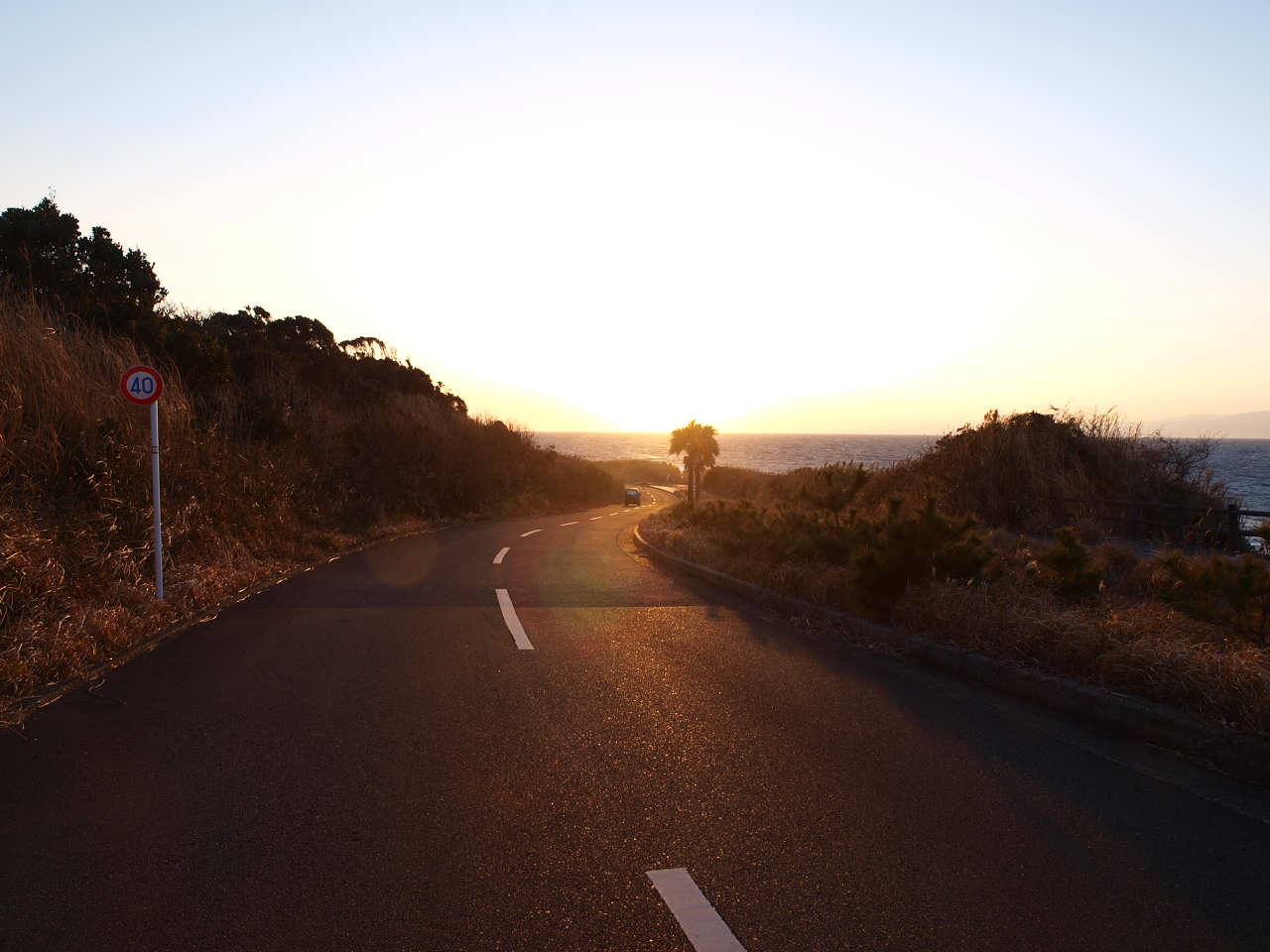 ヤマト運輸に荷物を引きった帰りはサンセットパームラインで温泉へ名前の通り夕陽が美しい道だ。