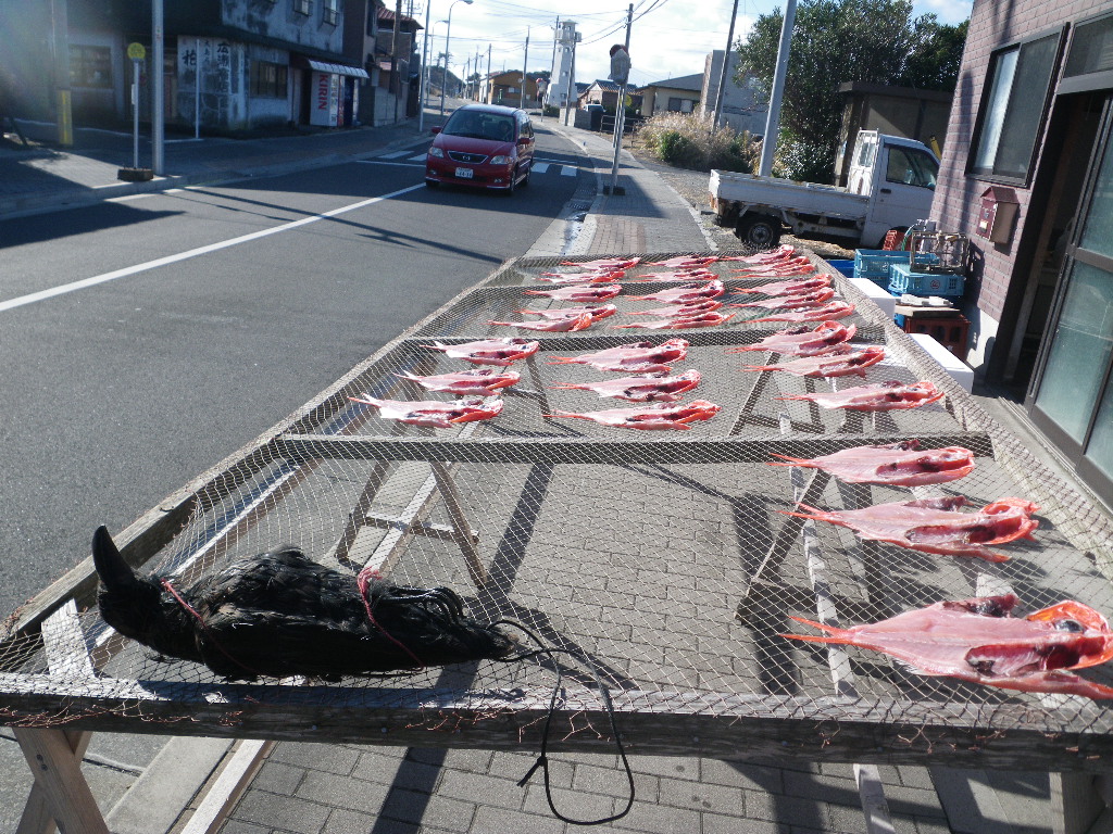 野増の食料品店では、金目の開きを造っていたがカラスの干物も・・・カラスを寄せ付けないためのダミーらしいがあまりにもそっくりなのでびっくり。
