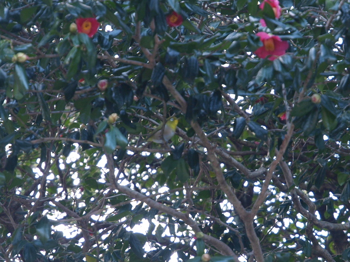 岡田港から大島公園へ、島で保護されている目白がいた。
