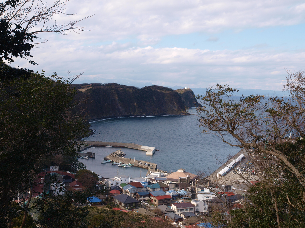 竜王崎灯台の周りには戦争中の遺構が残っている。こんなところからB29を砲撃しても当たらないだろうなあ当然避けて通るしと思うのだが。波浮港は噴火口の跡らしい。