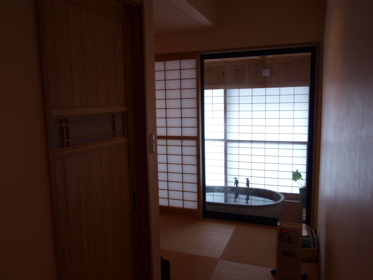 | 今回は、部屋に温泉がついているとっても広い部屋、こんな広さは不必要だが温泉つきの部屋がここしかないので仕方がない。 |