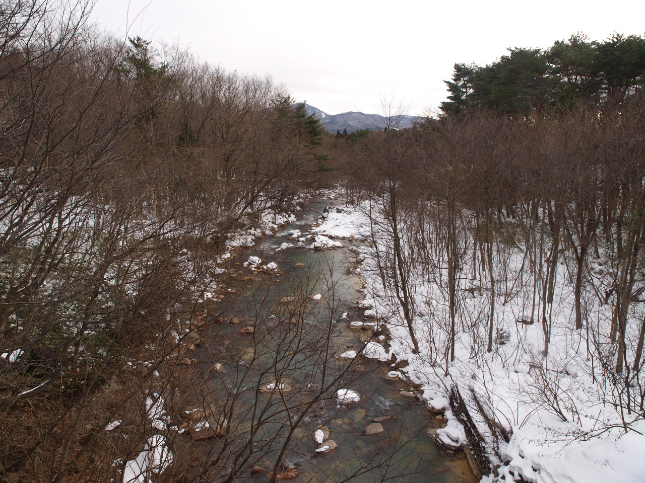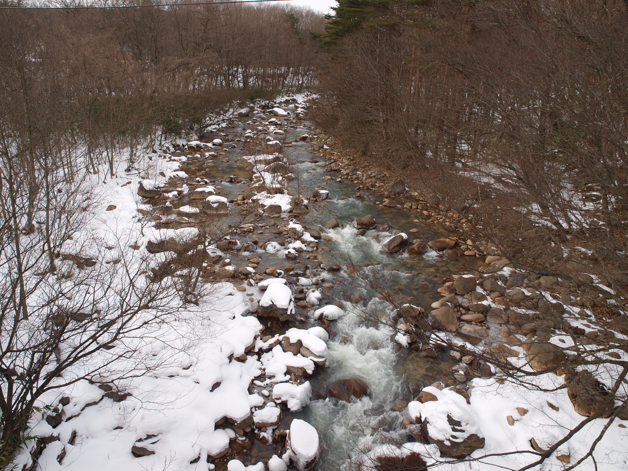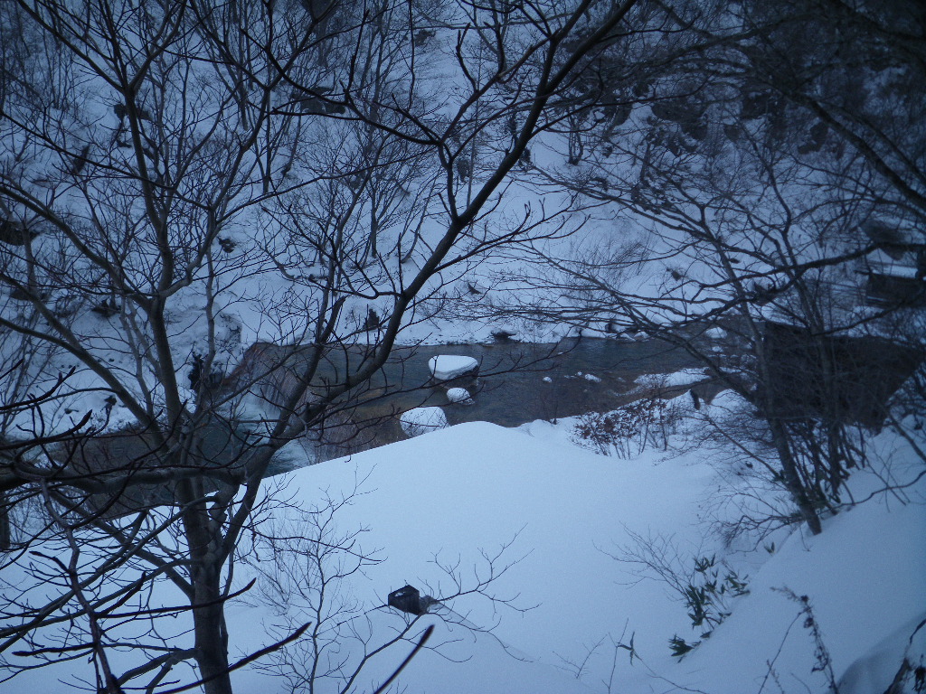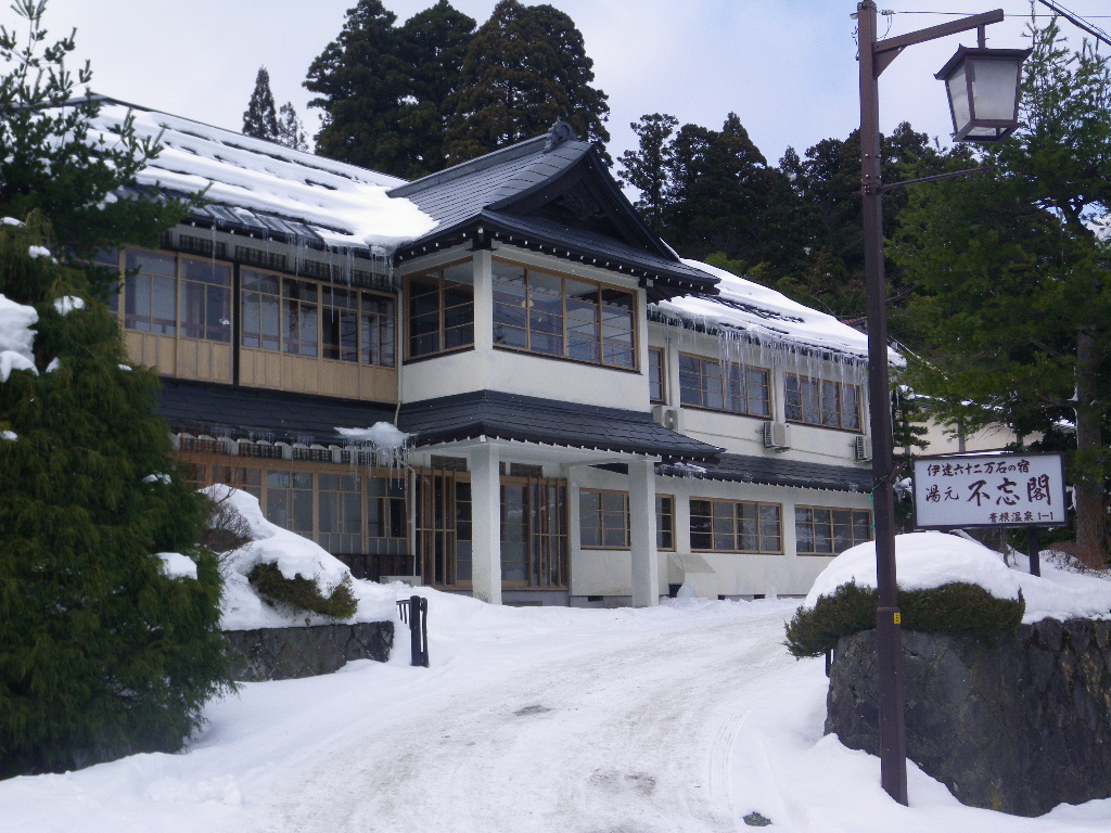 | 山間にある一軒やどの温泉、冬場はここに用のある人しか来ない。湯治場となっている棟と旅館の棟があり温泉も別だ。 |