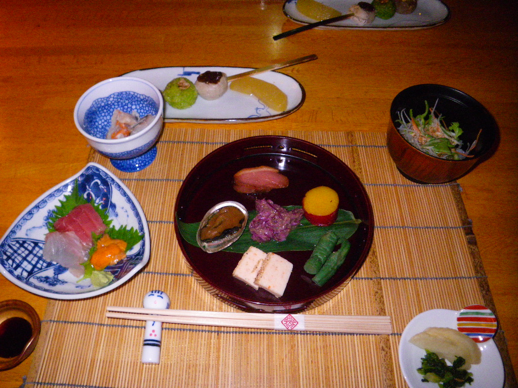 | 部屋の温泉も掛け流し。熱い湯が出てくるのだが、外が寒いのでちょろちょろと出しっぱなしにしていないとすぐに冷めてくる、そのためいつも掛け流し状態でとっても贅沢な気分。食事は、ボリュームは感じないが素朴でおいしい。 |