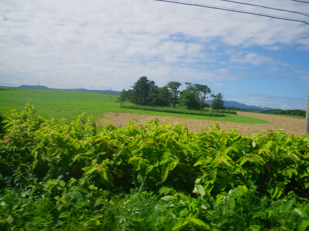| サロマ湖近くの上湧別五鹿山キャンプ場からクッチャロ湖畔のキャンプ場へ、出来ることなら避けたいと思っていたオホーツクの単調な景色を走り続ける。 |