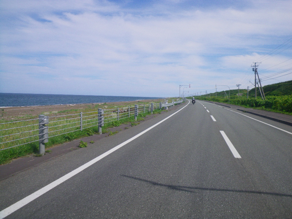 | 変化の無い景色を神威岬まで140kmばかり単調に走る。 蟹で有名な雄武では、道の駅で食材を仕入れようとするがここには何も売っていない、仕方なくかまぼこを数種類仕入れて北を目指す。 |