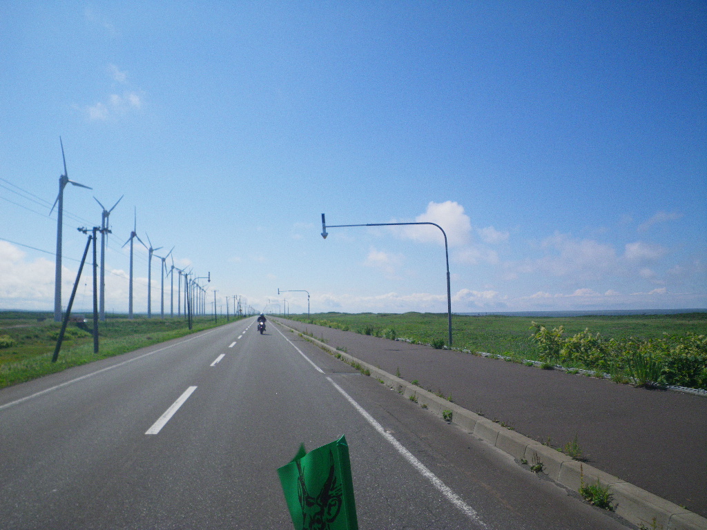 | 帰り道はエサヌカを通って。 エサヌカは北から南へ向かうと山が見えるので、南から北へ向かうほうが道の先の見え方が綺麗。走るならぜひそちらがお勧めだ。 ![]() このたび最後の晩餐のための大事な食材を積んで走る姿はツアラーではなく、魚屋のおっさんだ。 |