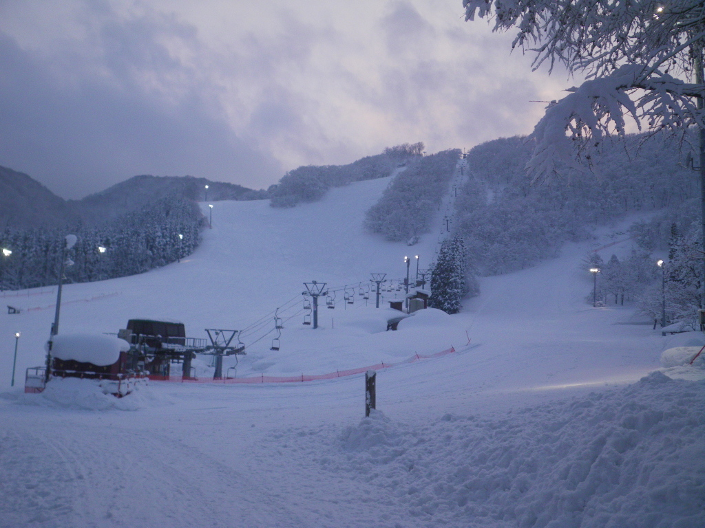 ![]() 夜のスキー場、残念ながらナイターなどはやっていない。 |