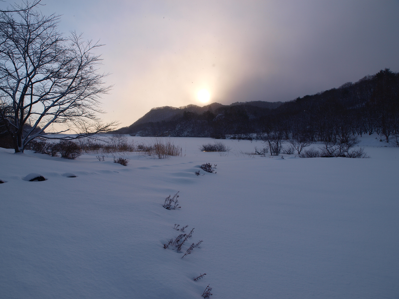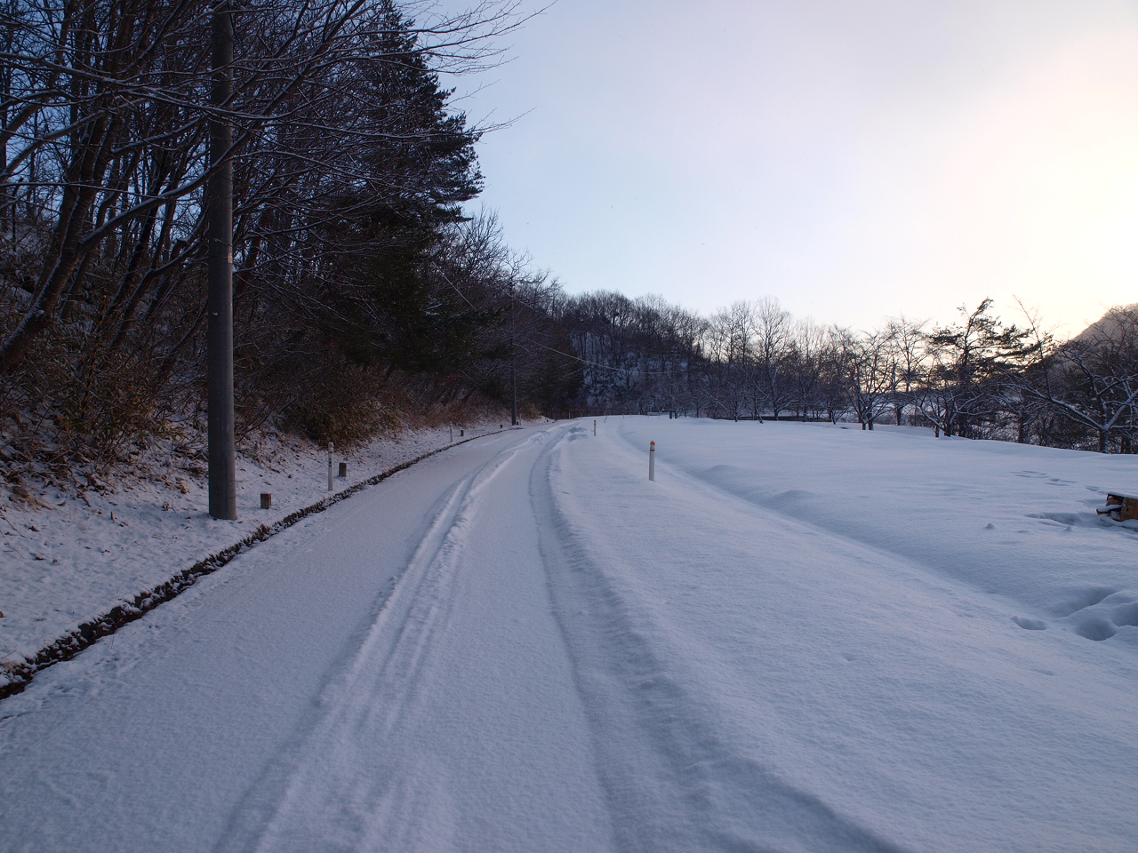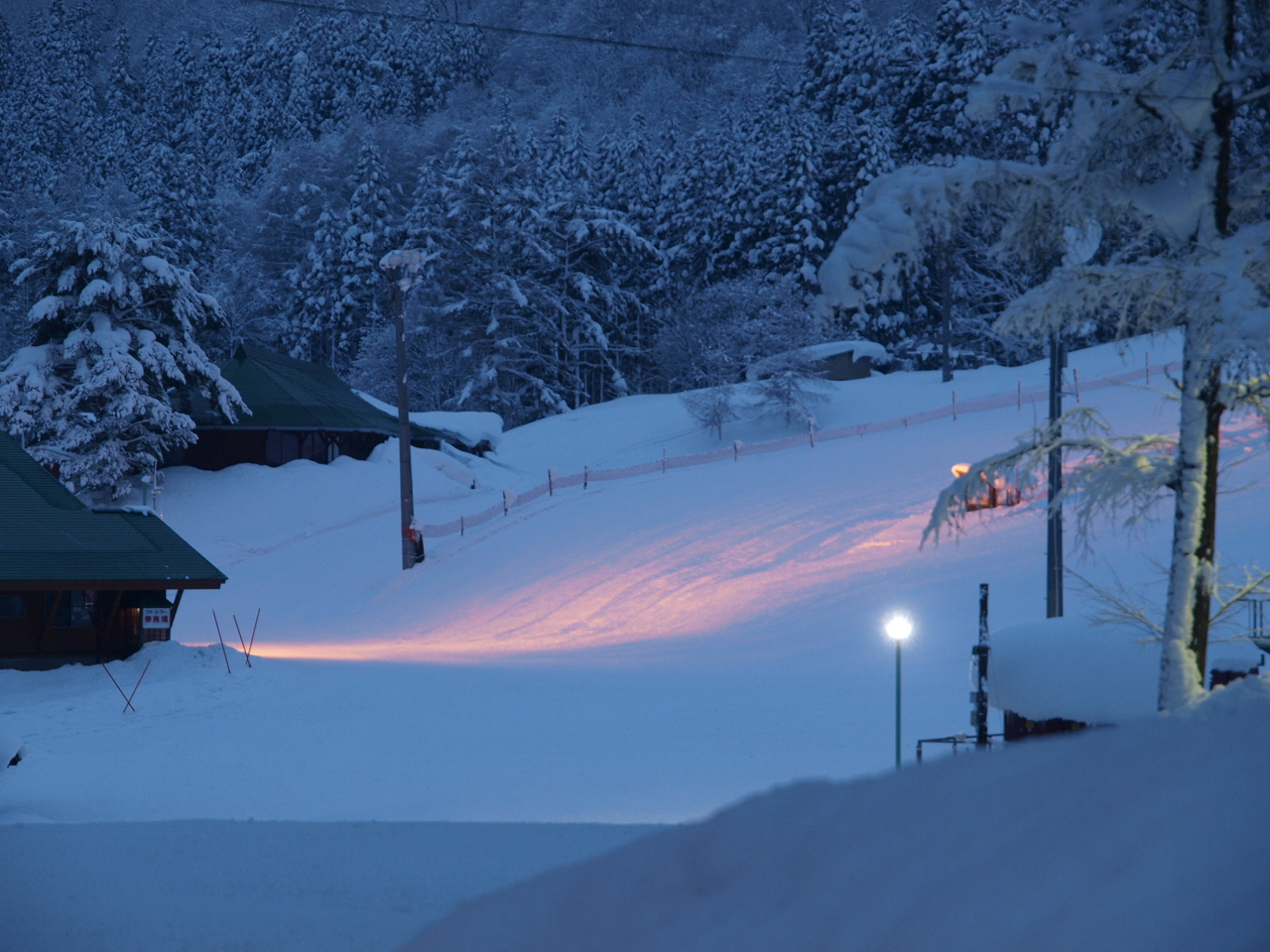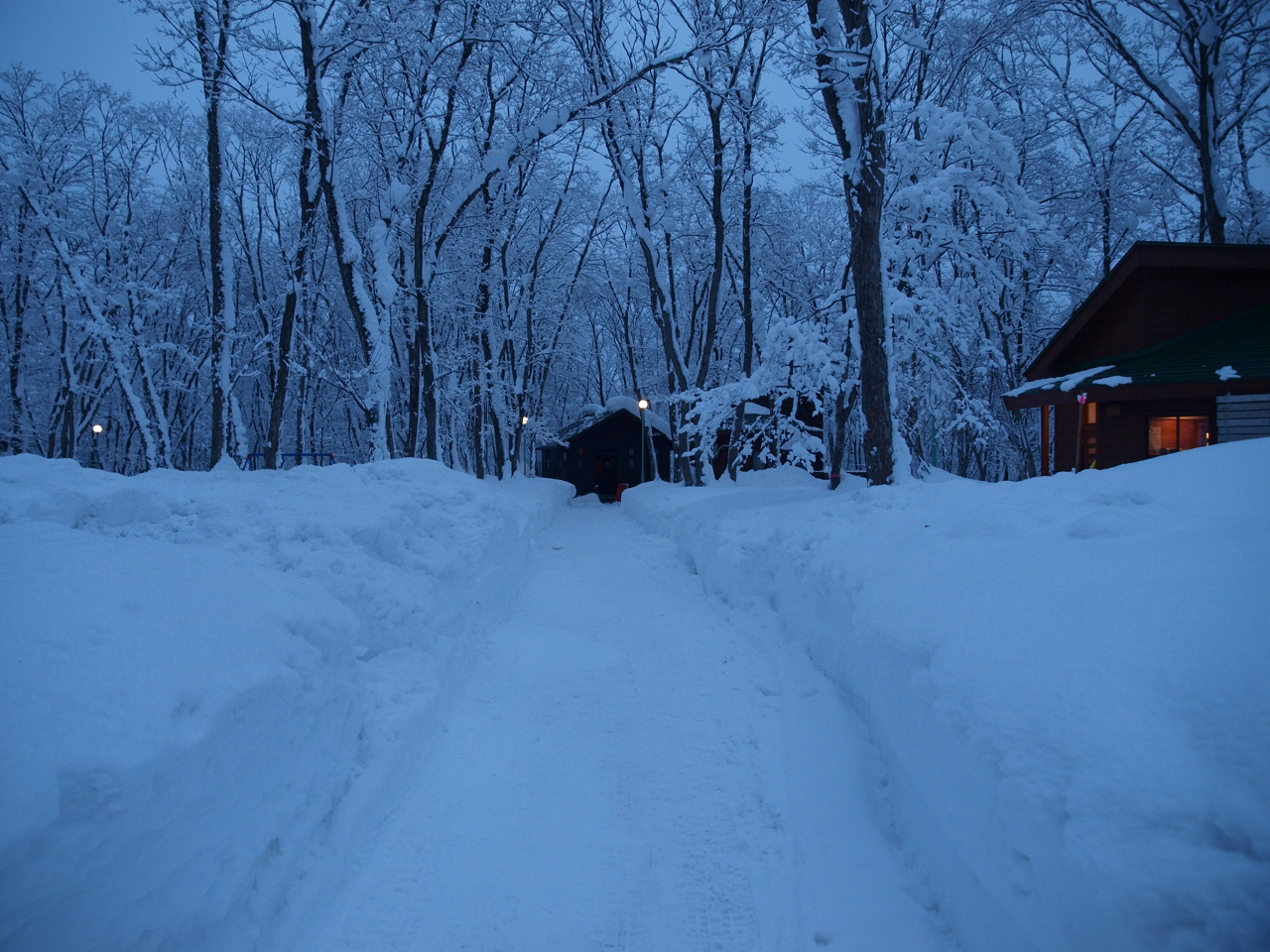 ![]() 夜の始まり、雪が音を吸い込むのかとても静か |
