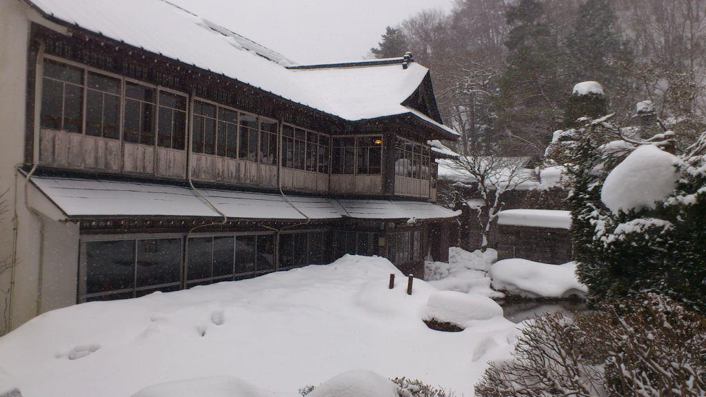 ![]() あっという間に青根温泉。部屋からは旧建屋と正面には御殿といわれる3階建ての木造も見え、別世界の雰囲気。 |