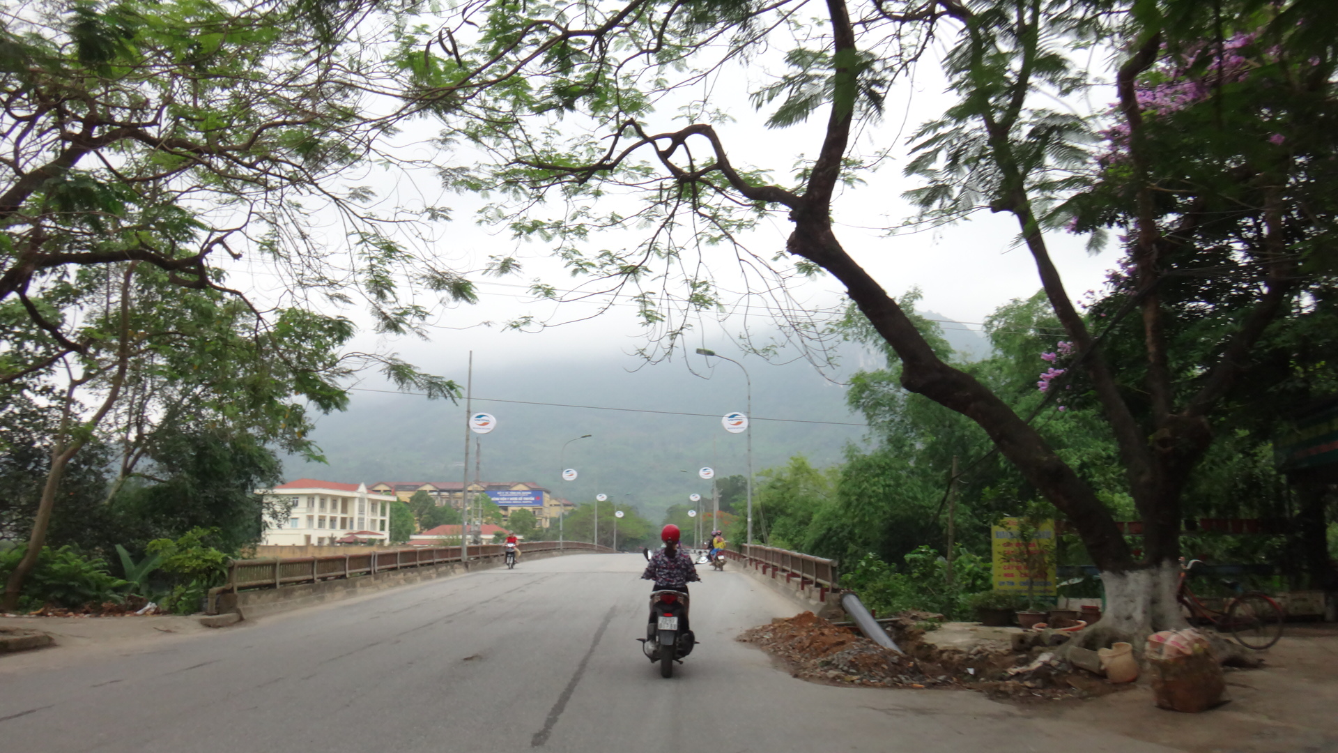 | マツタケの取れそうな美しい松林の峠を越えるとYen Minhの町が見えてきた。 |