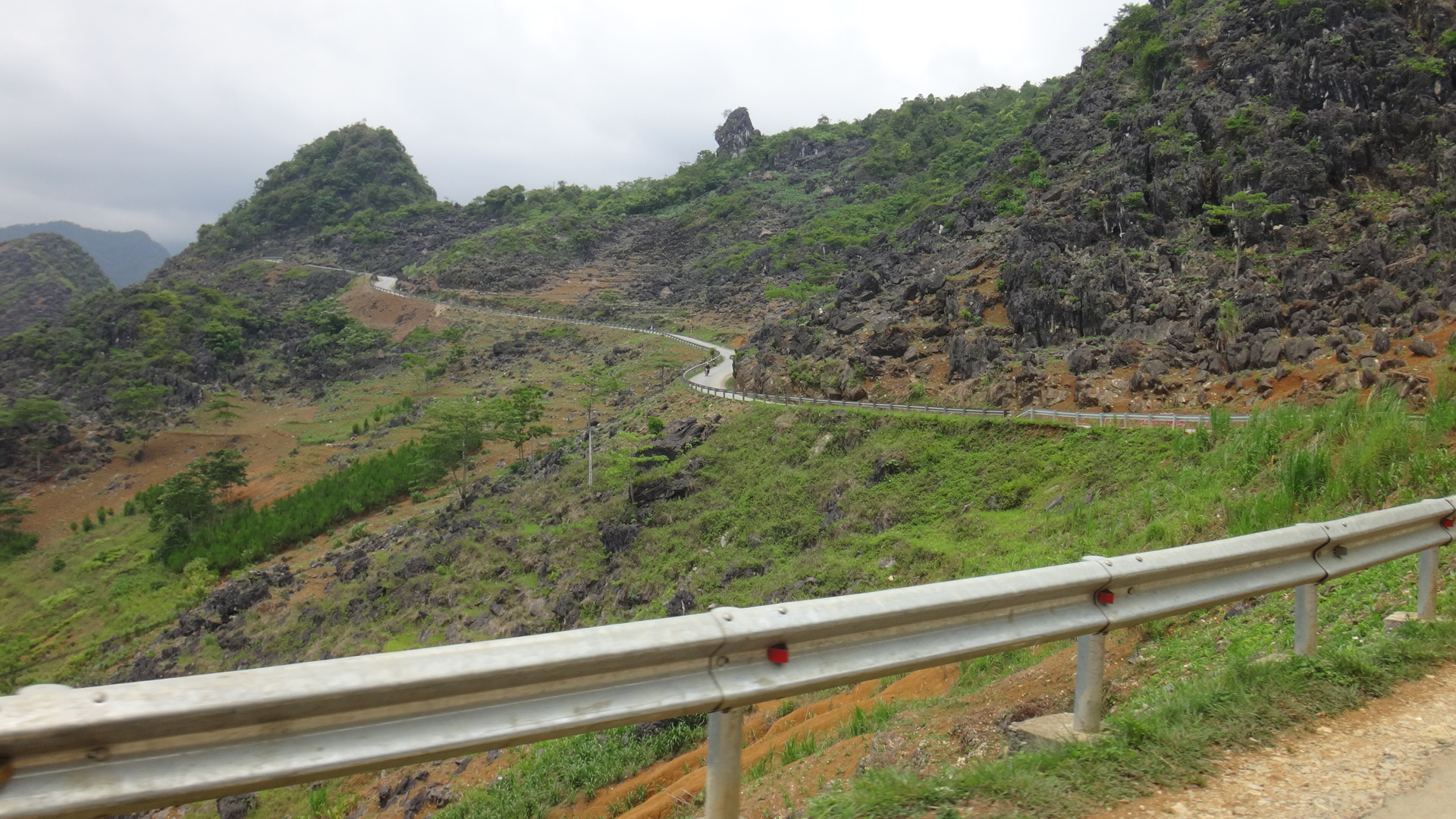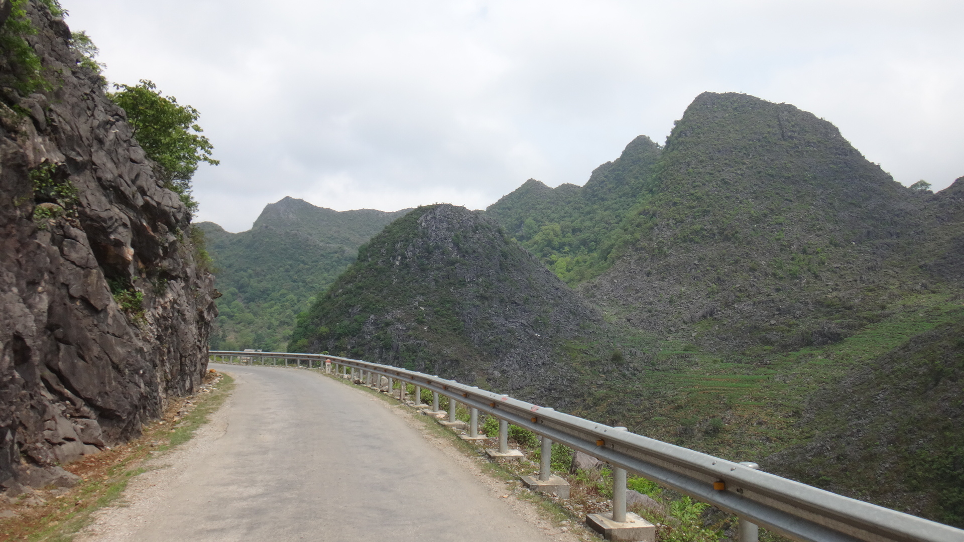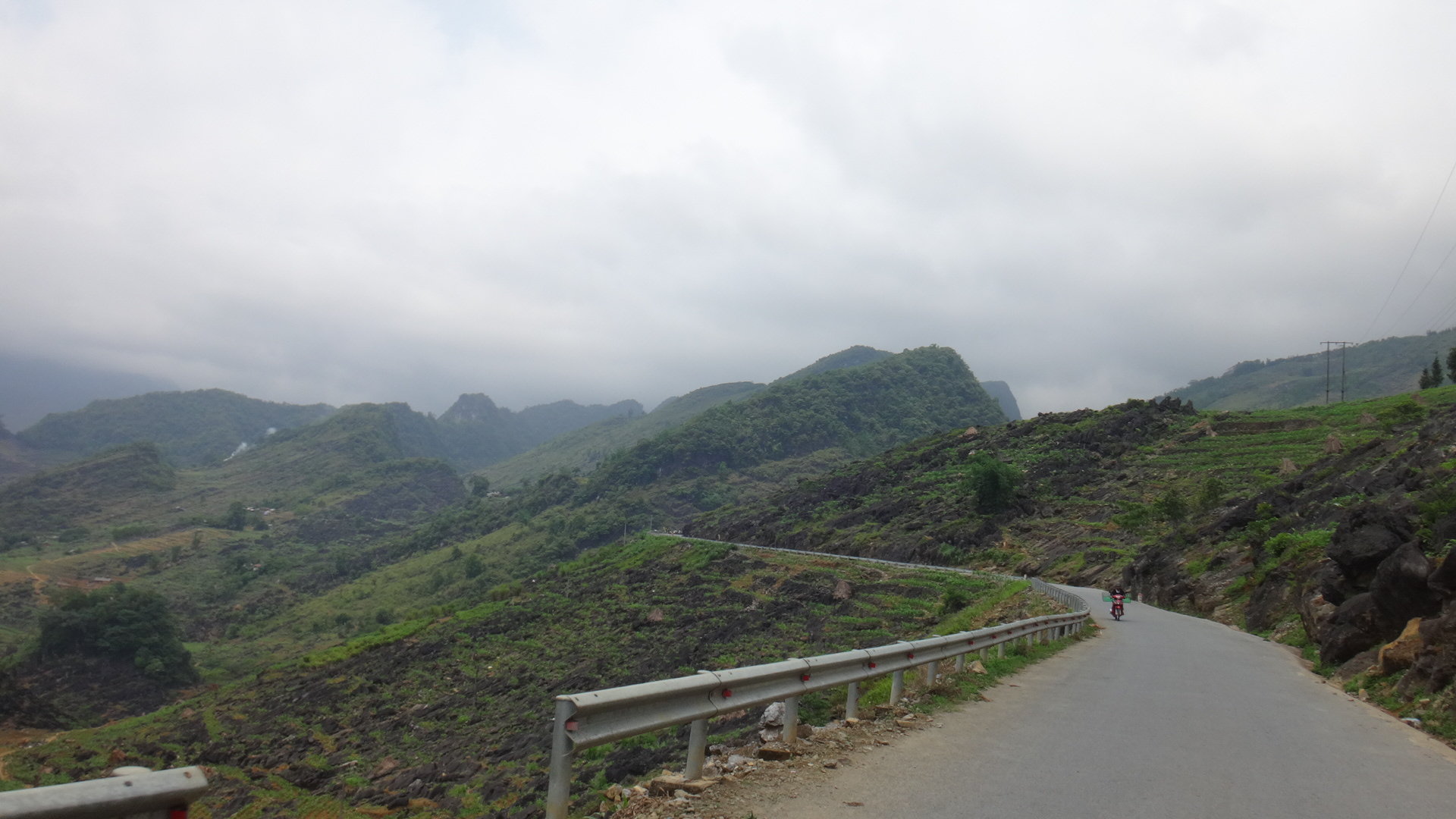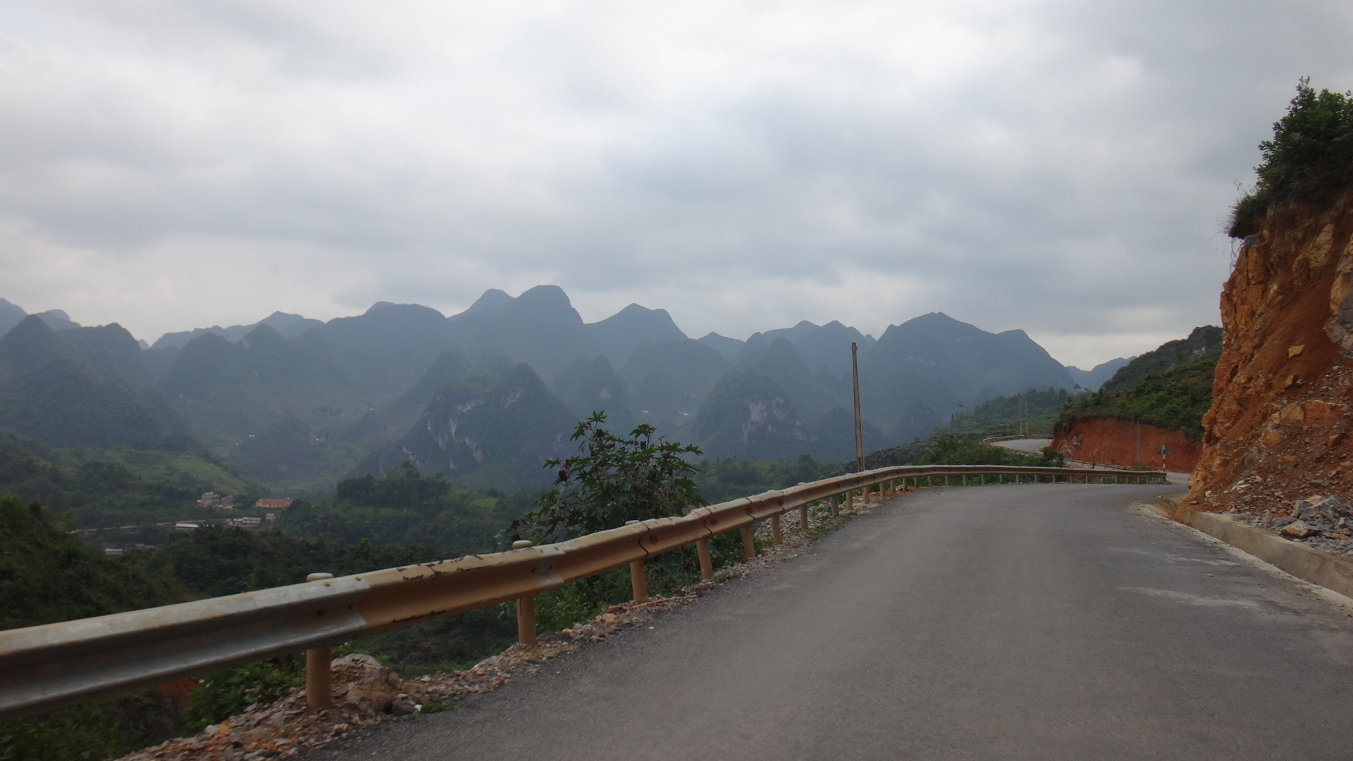 | 六日目 Dong Van この地名は一生忘れないだろう。ホテルでDong Vanから来たインド人旅行者に聴いたところ狭い部分はあるものの全面舗装路で道は悪くないらしい。昨日の道がひどかっらのでそうなの?と思いつつDong vanに向かう。今日も何か所か見るところがあるなと思って出発したが、これほどの絶景を連続して見るとは思いもよらず、今までのツーリングで一番衝撃を受けた183km。 |
