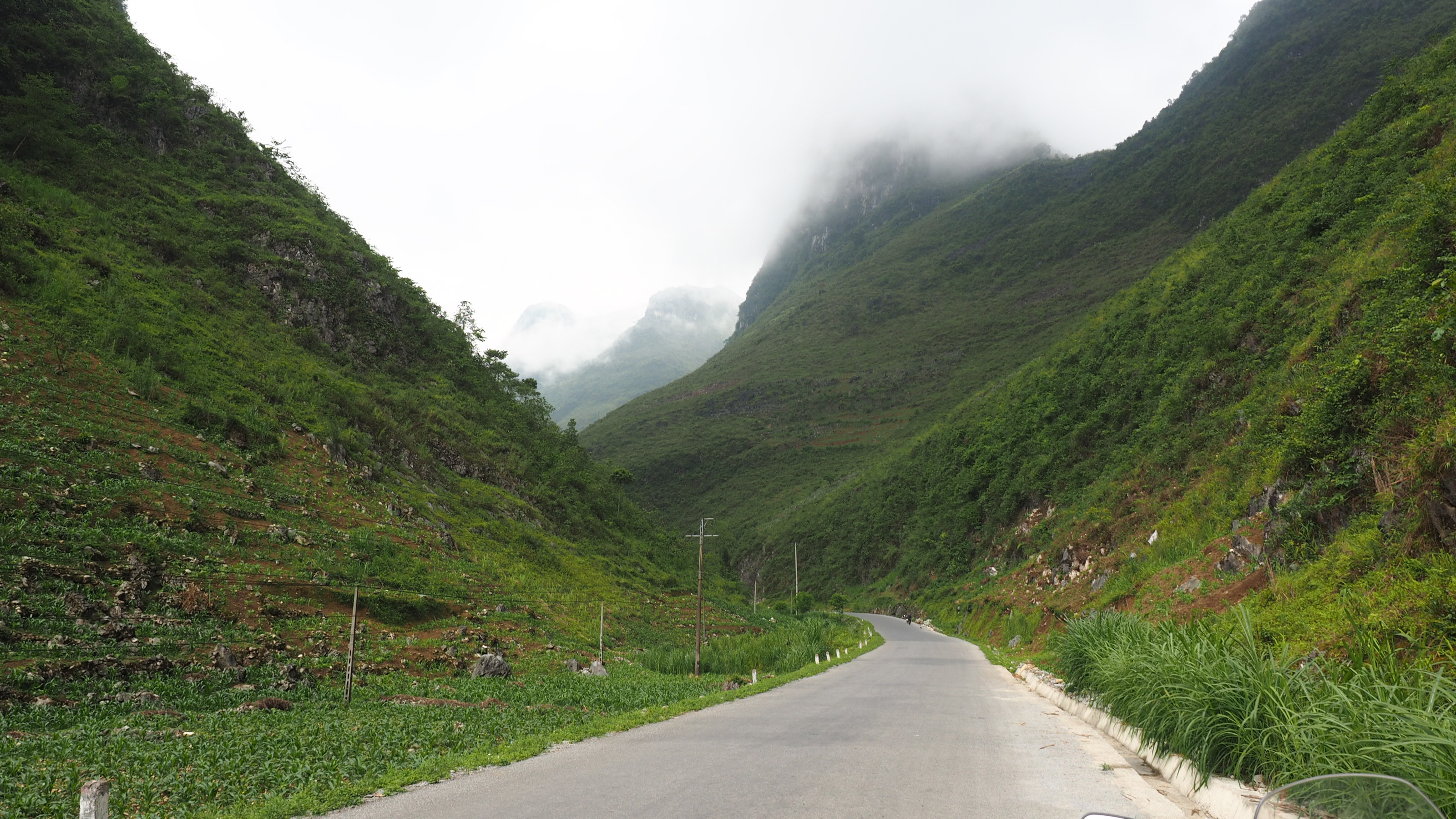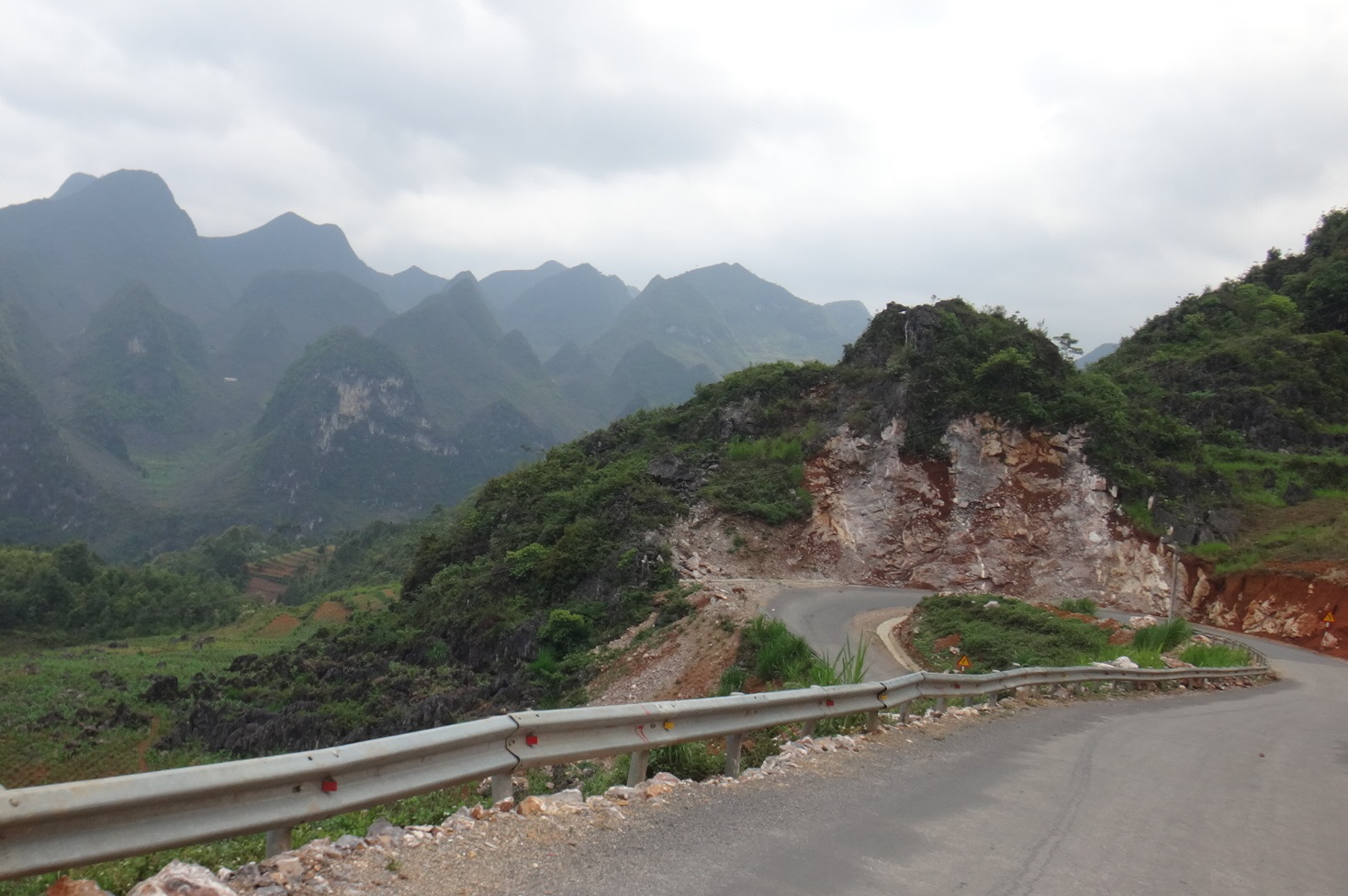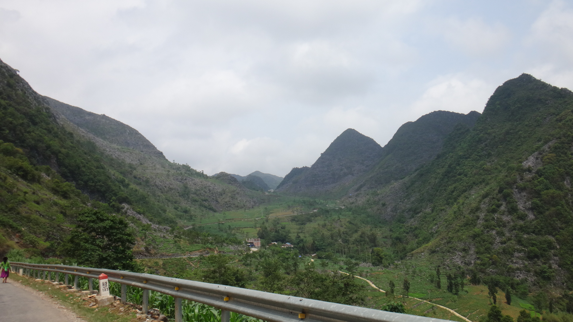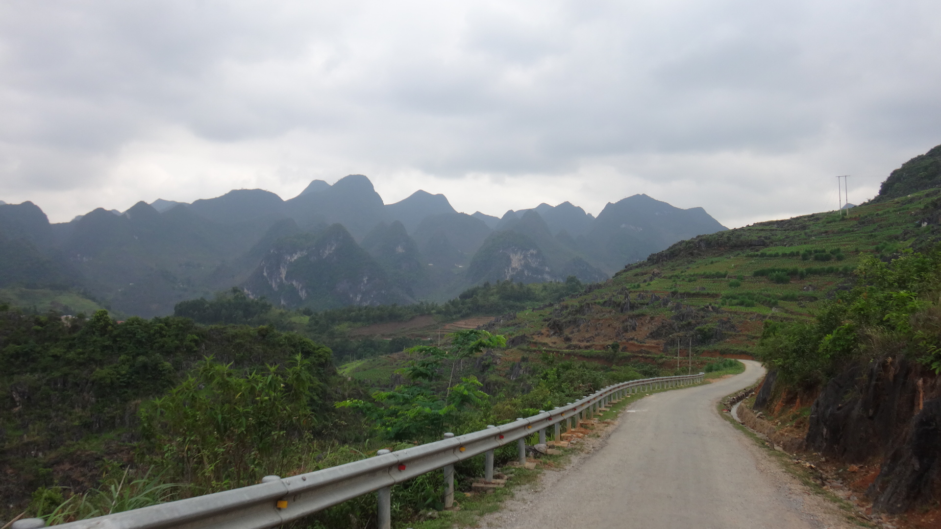 | 六日目 Dong Van この地名は一生忘れないだろう。ホテルでDong Vanから来たインド人旅行者に聴いたところ狭い部分はあるものの全面舗装路で道は悪くないらしい。昨日の道がひどかっらのでそうなの?と思いつつDong vanに向かう。今日も何か所か見るところがあるなと思って出発したが、これほどの絶景を連続して見るとは思いもよらず、今までのツーリングで一番衝撃を受けた183km。 |