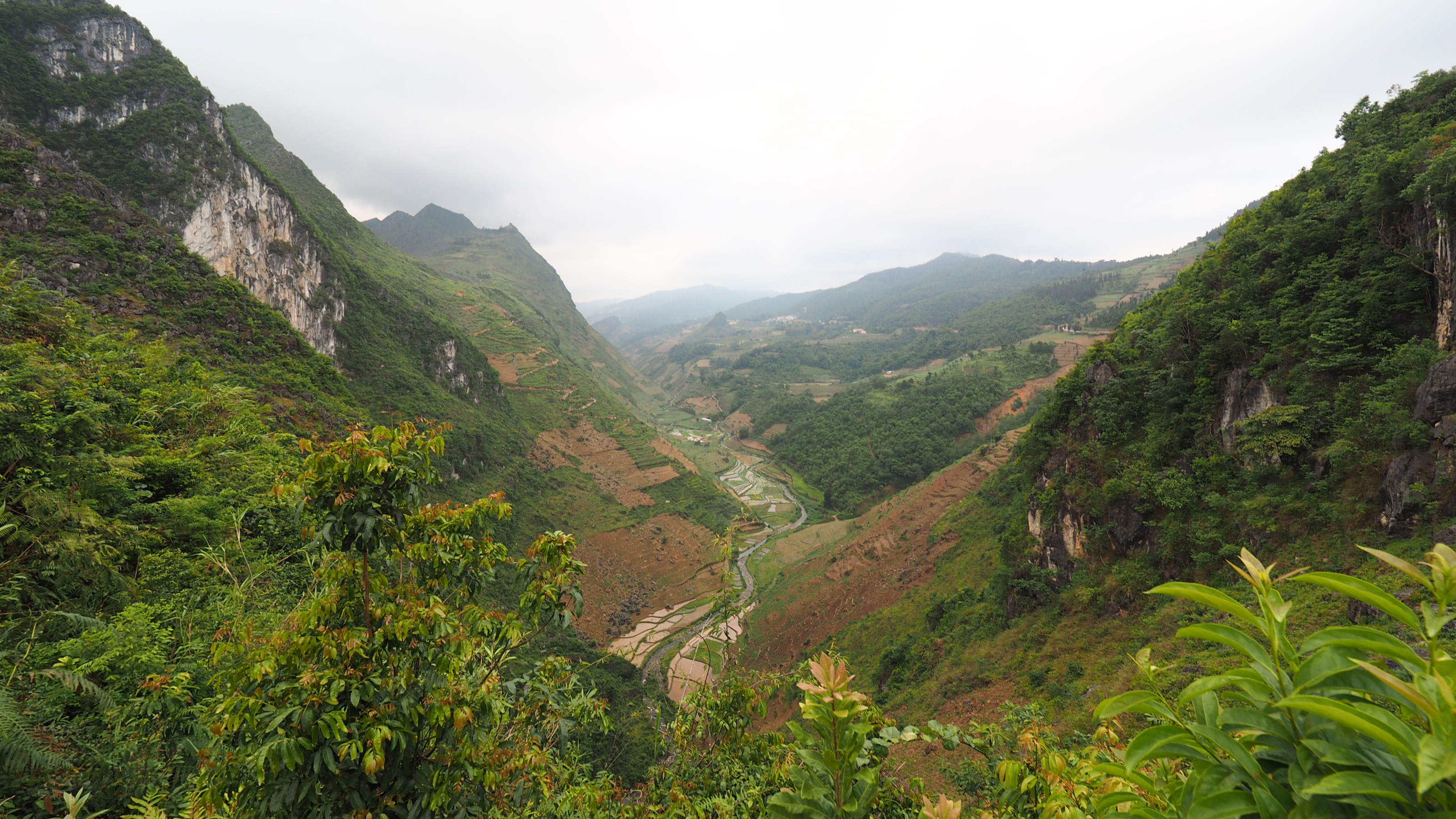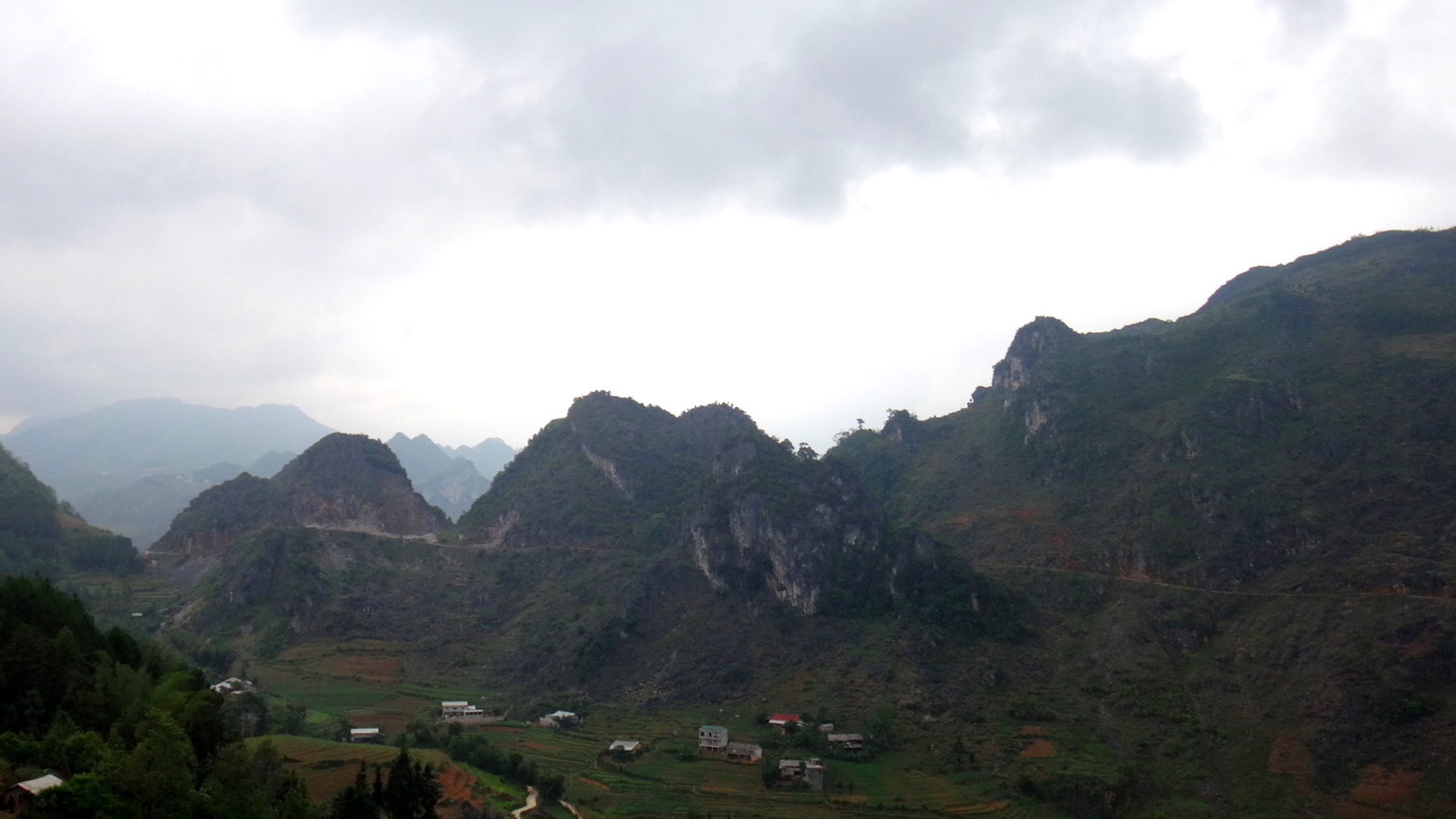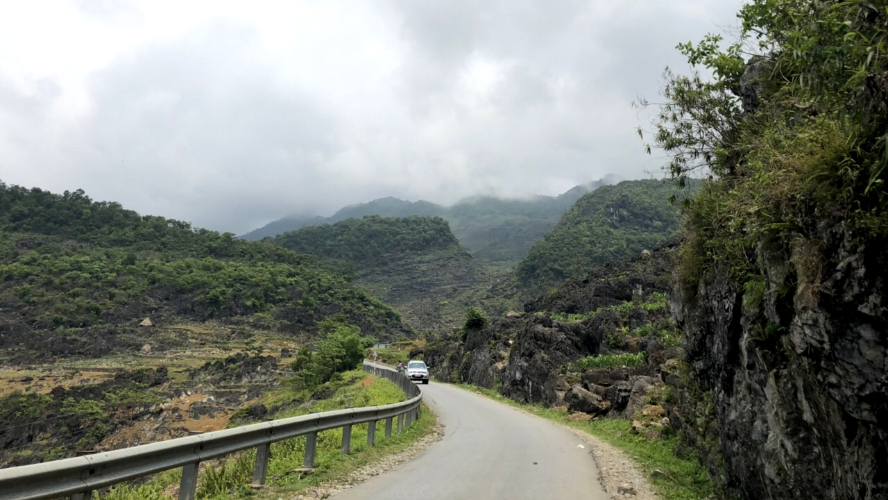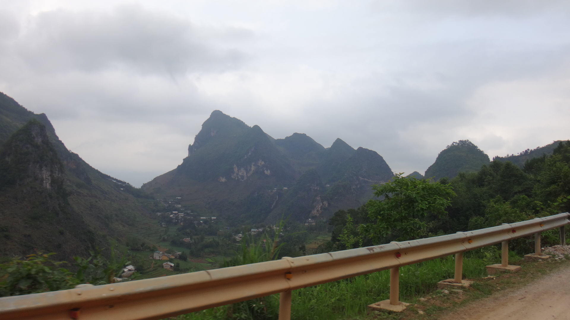 | 六日目 Dong Van この地名は一生忘れないだろう。ホテルでDong Vanから来たインド人旅行者に聴いたところ狭い部分はあるものの全面舗装路で道は悪くないらしい。昨日の道がひどかっらのでそうなの?と思いつつDong vanに向かう。今日も何か所か見るところがあるなと思って出発したが、これほどの絶景を連続して見るとは思いもよらず、今までのツーリングで一番衝撃を受けた183km。 |