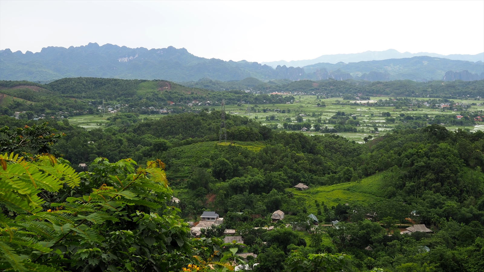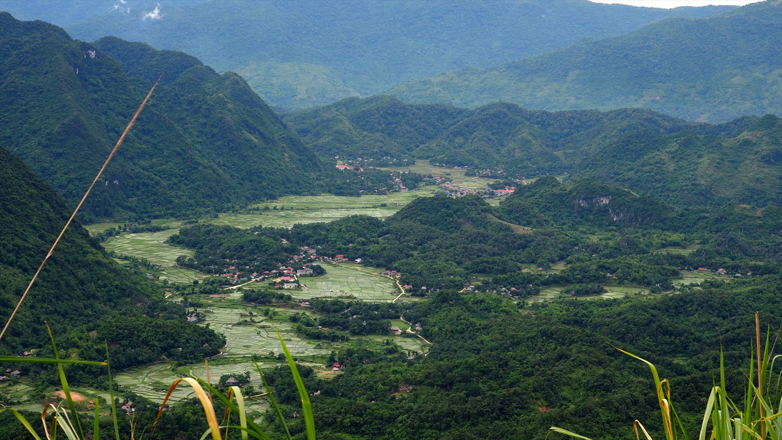| 視界だ開けたと思ったら、眼下に農村が見えた。 |