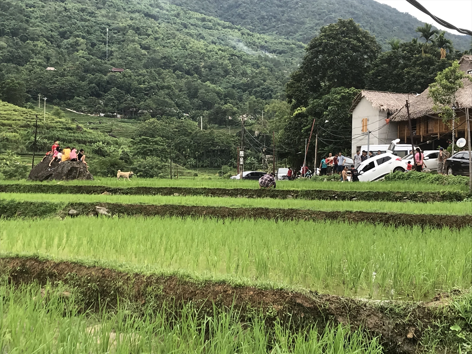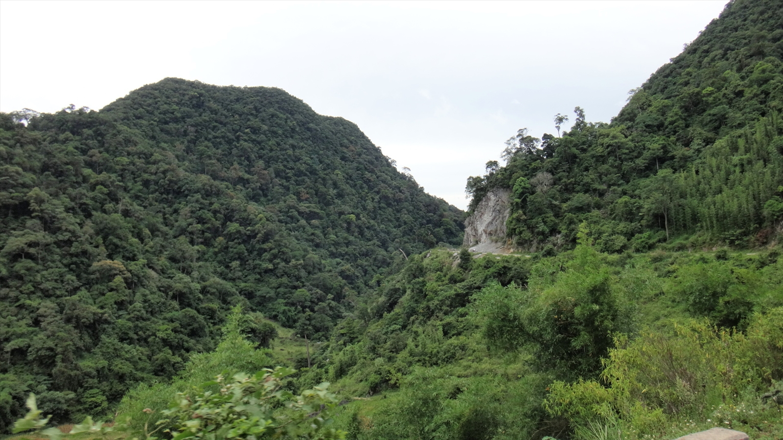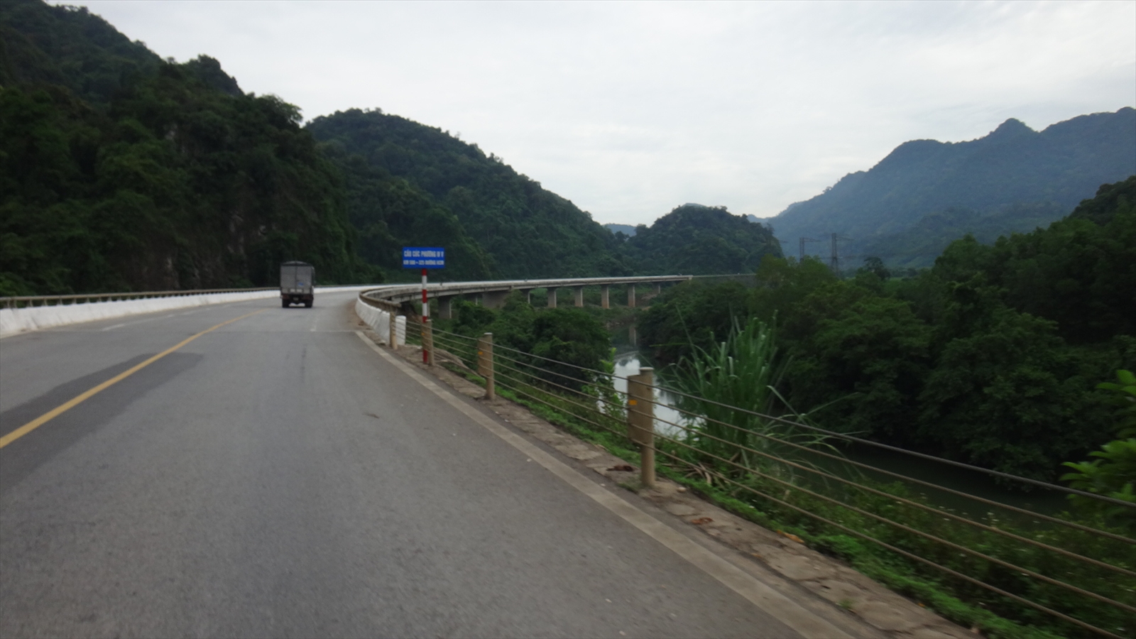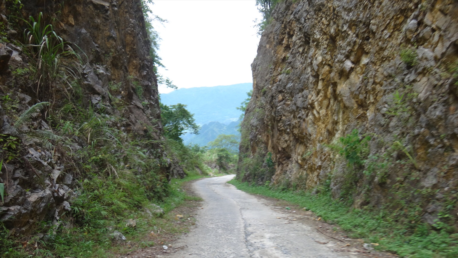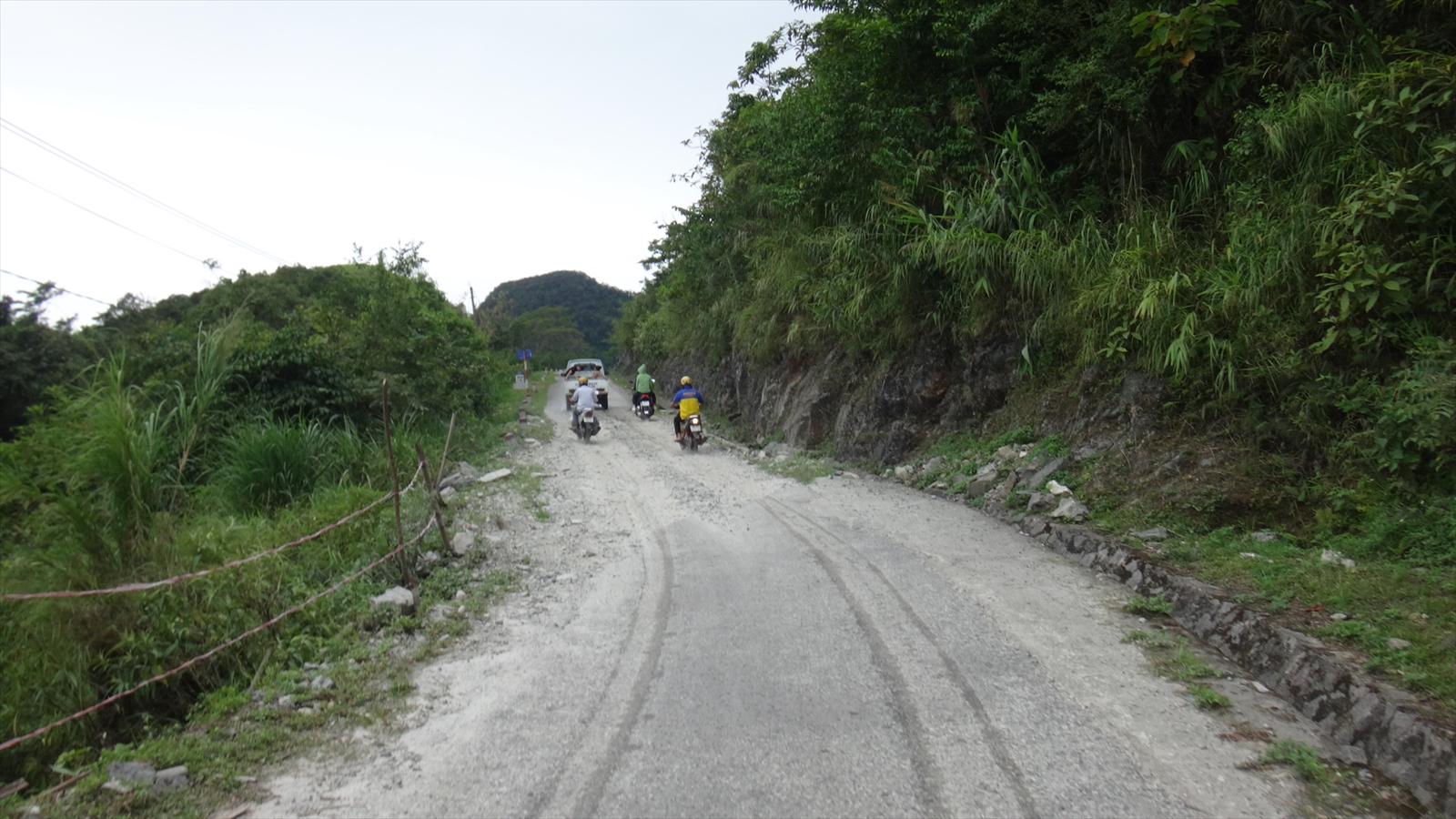 | すでにPu Luongに入っていた。絶壁を走るここからでもわかる急こう配の道 |