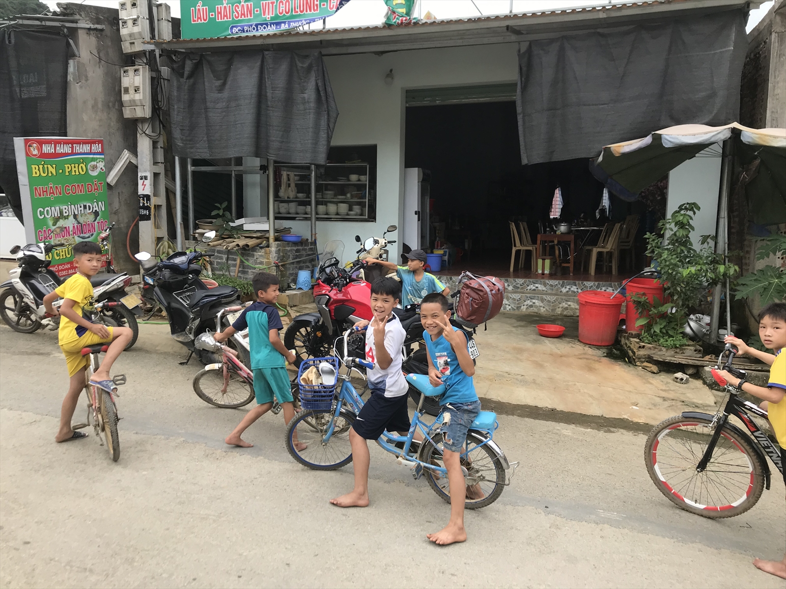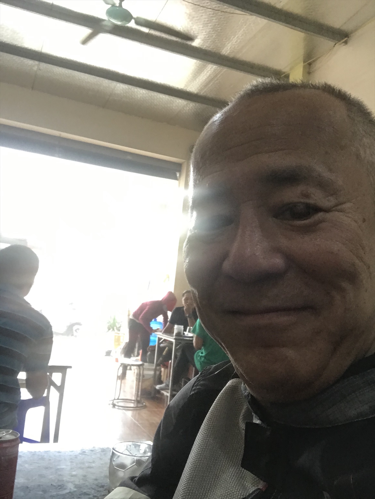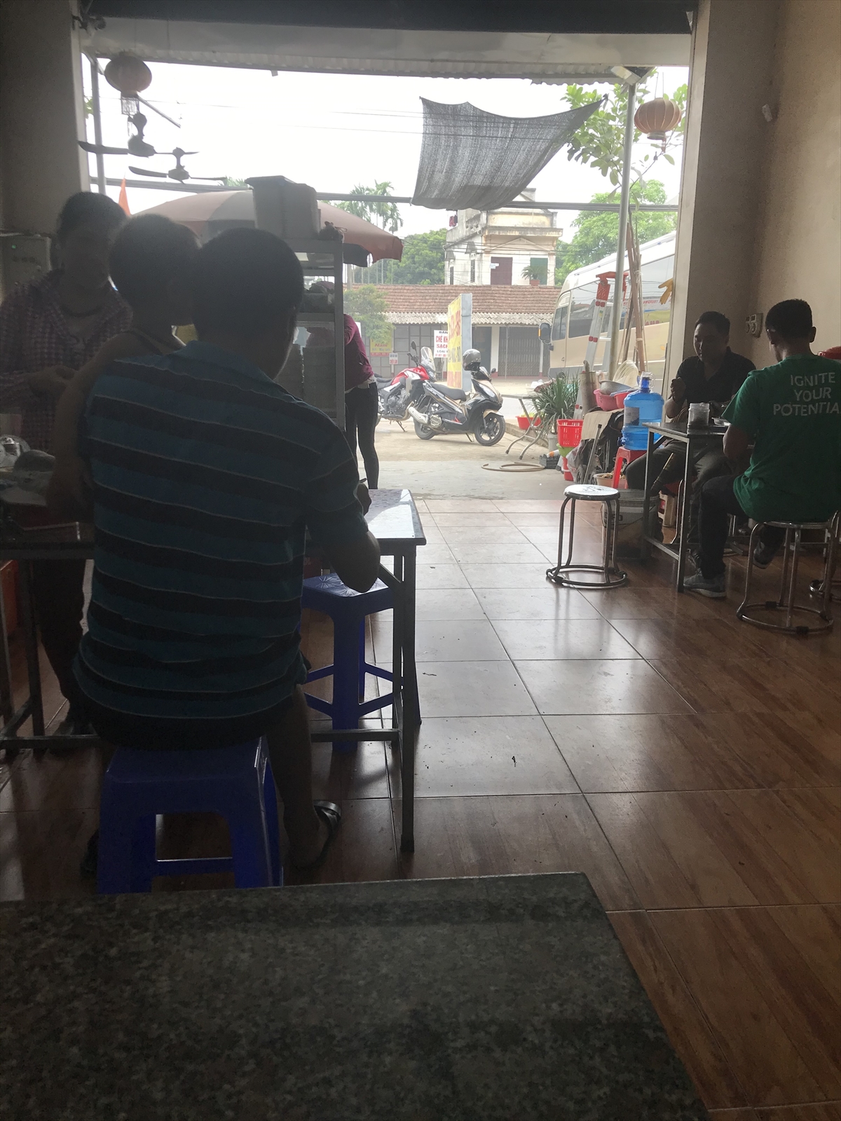| 食堂発見、何が何でも食べるぞ! PhoがないのでMyでよいかというのでMyにする。食堂の姐さんが、自分のバイクと僕のバイクを交換してくれというが、乗れるのか? |