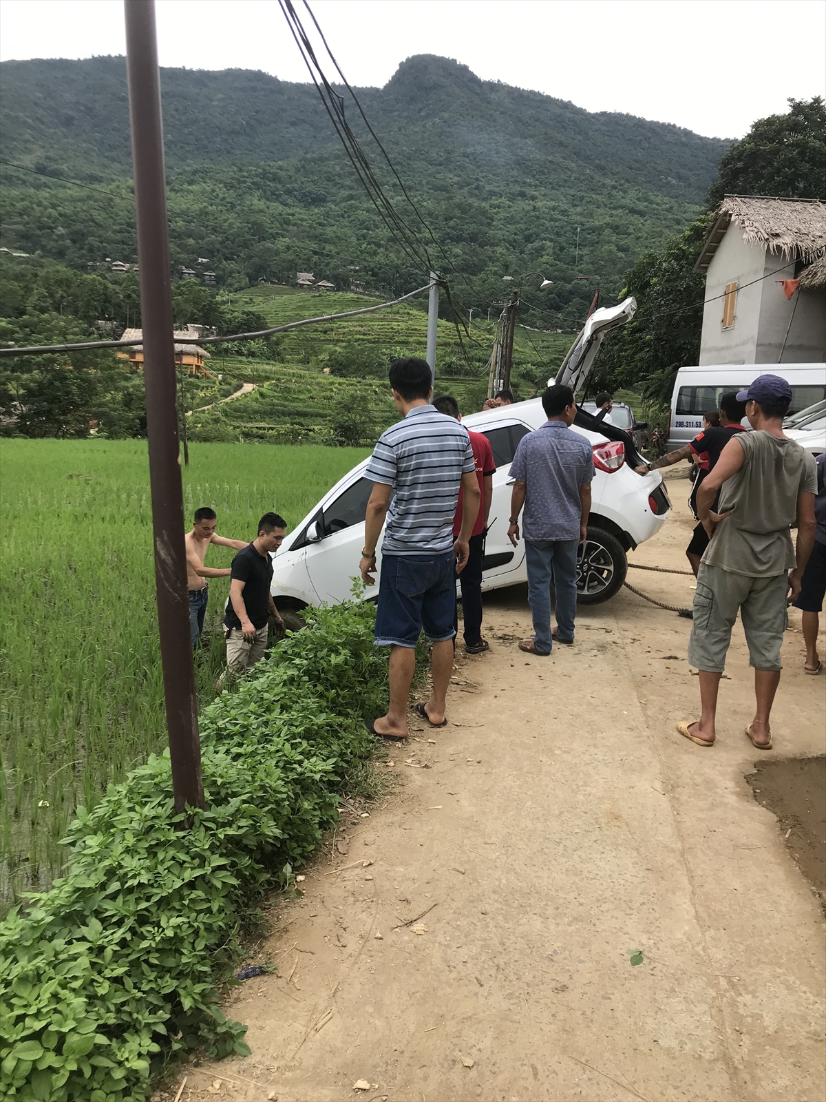 | 近所を散策、こんなところに車を止めて迷惑なと思っていると、えらいことになってました。なぜこんなことになるのでしょうか?理解できません。子供たちは岩の上に座って事の成り行きを見ていますが、人力では無理でしょうね。 |